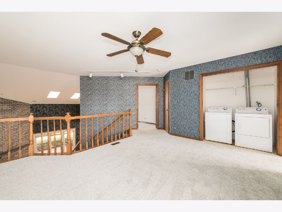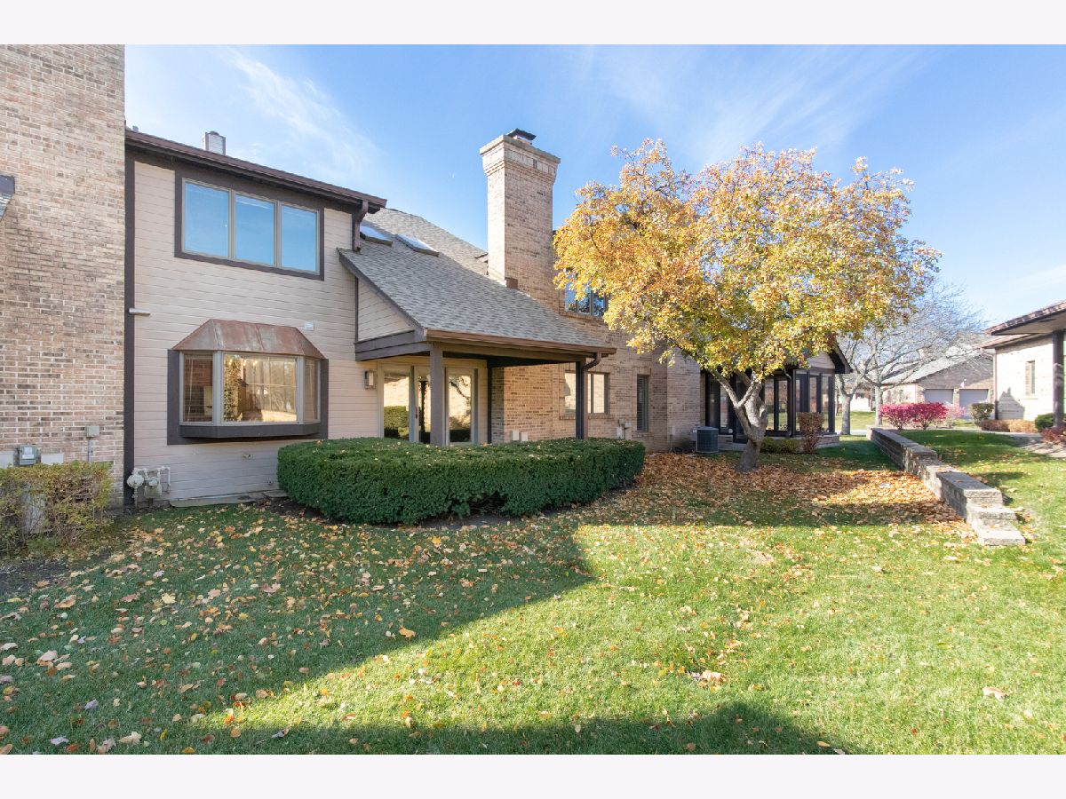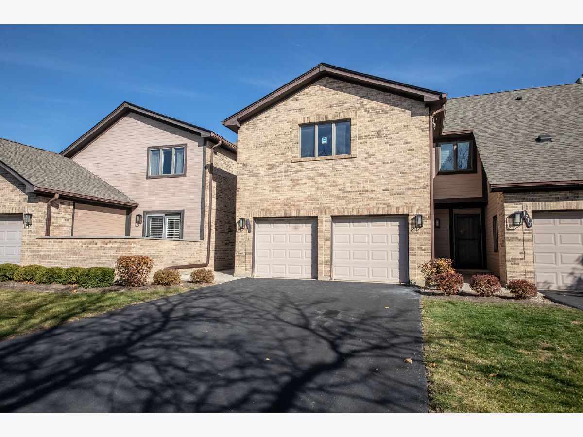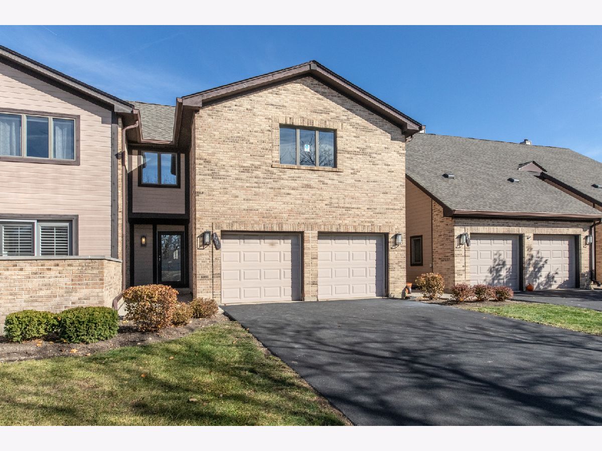 This brick townhome offers comfort, convenience, and an easy-care lifestyle. The main level features beautiful refinished hardwood floors and a spacious living room with vaulted ceilings that create an open, airy feel-perfect for relaxing or entertaining. The adjoining dining area provides plenty of space for gatherings, while the eat-in kitchen offers stainless steel appliances, ample cabinetry, quartz counters, and room for casual meals. A first-floor powder room and direct access from the attached two-car garage add everyday convenience. Step outside to the covered patio and enjoy morning coffee or evening conversation in your own private outdoor retreat. Upstairs, you'll find new carpet throughout the second floor, along with two generous bedrooms-each with its own full bathroom and walk-in closet-providing comfort and privacy for family or guests. A large open loft area serves as a flexible space for reading, watching TV, or a home office. The washer and dryer are conveniently located on this level as well. The full unfinished basement offers excellent storage and the opportunity to finish it to your liking. The home has been professionally cleaned, making it move-in ready. Roof was a tear off in 2024. No board approval - move right in. Located on a peaceful cul-de-sac, this home combines tranquility with accessibility-close to golf courses, shopping, dining, and with easy access to major expressways for a quick commute.