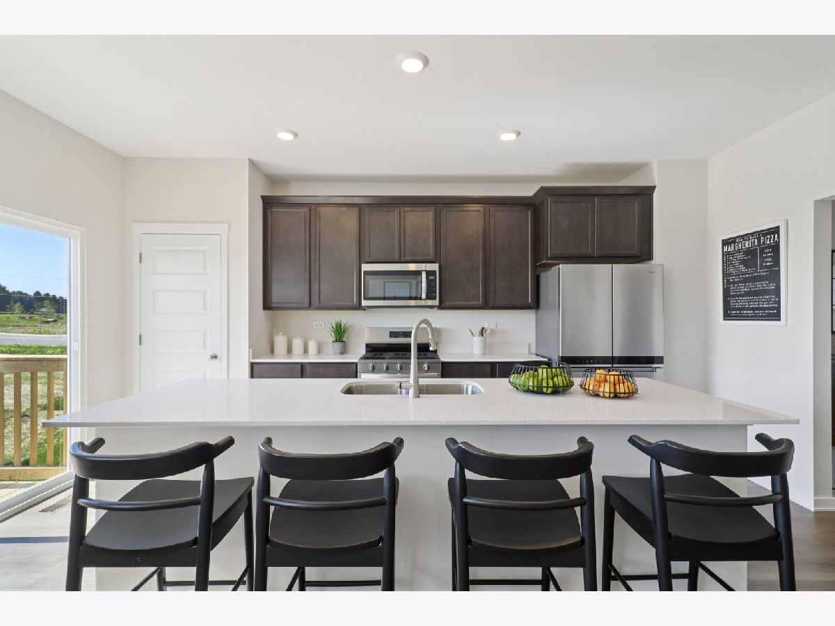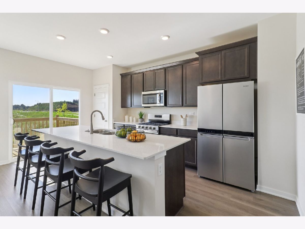 Discover yourself at 1715 Baler Avenue! A beautiful new end unit townhome in our Wheatland Crossing community in Aurora, Illinois. This home is MOVE-IN READY! This home includes a two-car garage, and a fully maintained home site. This Ashton plan offers 1,794 square feet of living space with 3 bedrooms, a loft, and 2.5 baths and is an end unit. As you enter the home, you will be greeted by the open concept design, including dining and living areas and an expansive kitchen overlooking it all. The kitchen features designer cabinetry, a spacious island with quartz countertops, a pantry, and stainless-steel appliances. Luxury vinyl floors are included in all of the first level and has 9' ceilings through-out. Upstairs you will find a nicely sized loft and a large primary bedroom with 2 closets and an en suite bath. There is also a laundry room, a second full bath, and two additional bedrooms. All Chicago homes include our America's Smart Home Technology featuring a smart video doorbell, smart Honeywall thermostat, smart door lock, Deako smart light switches and more. Photos are of similar home.