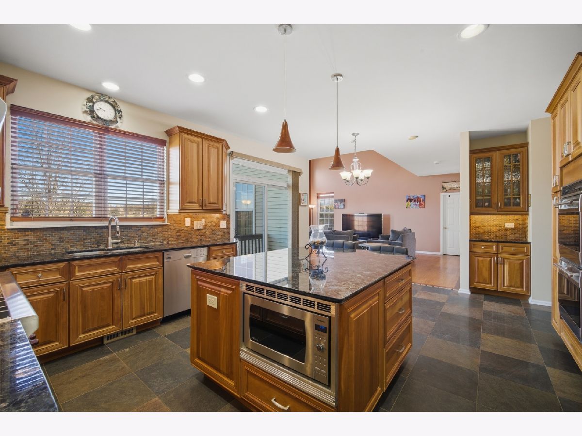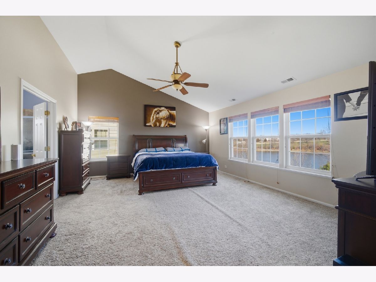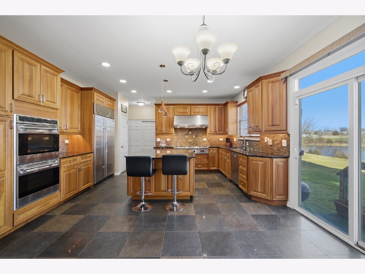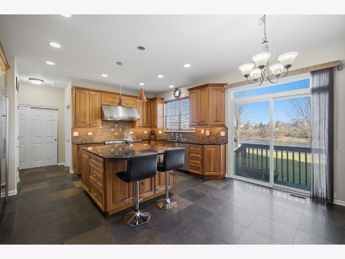 Spacious, refined, and ready for its next chapter! Built in 2006 and offering over 3,150 square feet above grade plus an expanded-depth 9-foot basement, this home delivers space, quality, and thoughtful updates throughout. Located just west of Villa Olivia Country Club with peaceful lake views from the backyard. Hardwood floors run throughout most of the home, complemented by beautiful quartz tile in the kitchen, foyer, and laundry room. The gourmet kitchen is truly the heart of the home, featuring 42" honey cherry cabinetry, granite countertops, an oversized center island, decorative hood, Wolf 42" double oven, Sub-Zero refrigerator and freezer, Miele dishwasher, and a generous eating area designed for gathering and entertaining. The dramatic two-story family room with gas fireplace anchors the main level, while the lofted overlook adds an airy feel and open flow to the floor plan. Upstairs you'll find four bedrooms, including a large primary suite with cathedral ceilings and dual walk-in closets. A first-floor office/den offers ideal work-from-home flexibility. The expanded 9-foot basement is fully insulated and offers exceptional potential for additional finished living space, including whole-house radon mitigation and rough plumbing for a future bathroom. Major updates include a new shingle roof (2021), Rheem water heater (2023), Evergrind garbage disposal (2021), replacement of two front windows (2021), whole-house paint, Kohler Elliston toilets (2021), and a new Chamberlain exterior garage keypad (2024). The home also features a Ring security system, Lennox furnace with HEPA filter, and Carrier A/C. A modern brick front with siding on three sides and an attached two-car garage completes the exterior. HOA dues are only $360 per year. Showings available with 24 hours' notice. Sellers prefer end of May/early June closing.