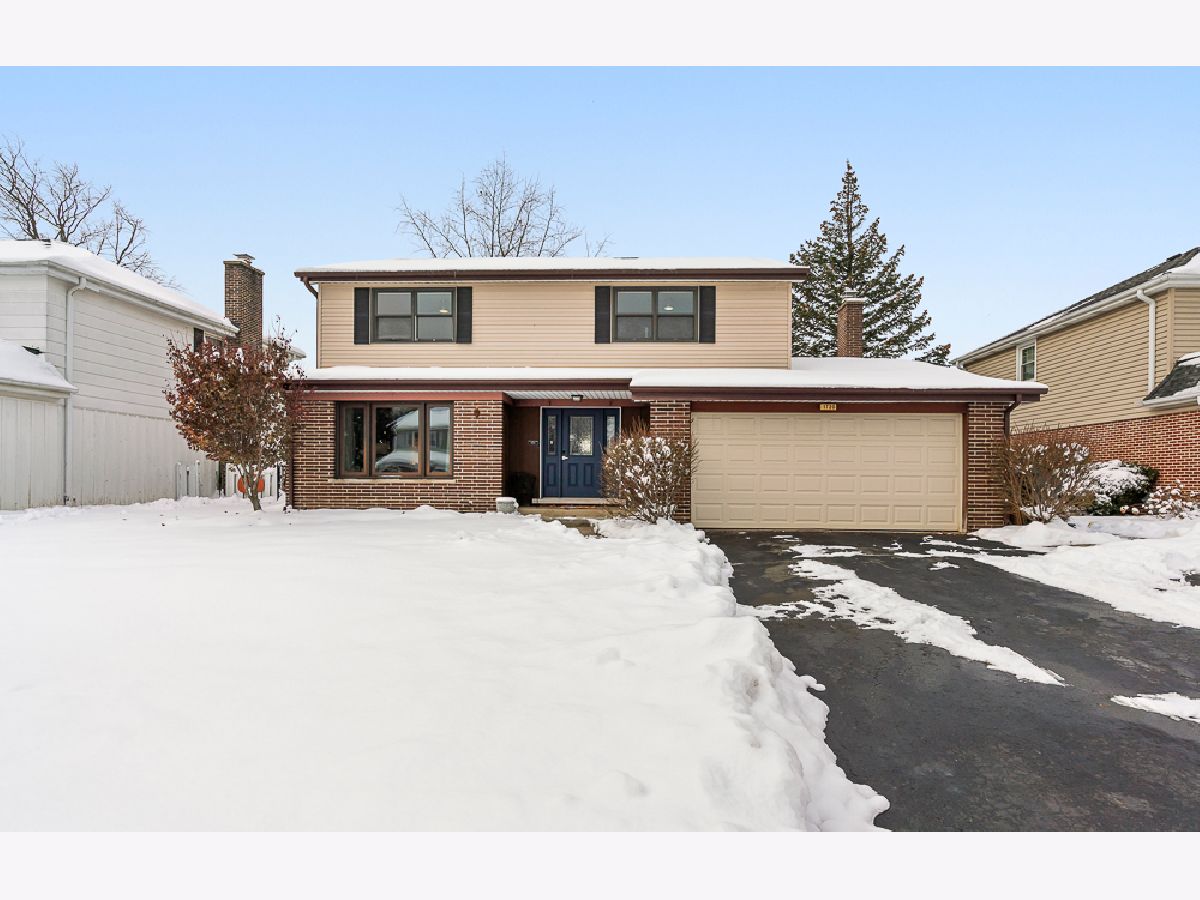 Welcome to 1720 Burning Bush Lane, a spacious and move-in ready home in a friendly Mount Prospect neighborhood that offers bright interiors, thoughtful updates, and room for every stage of life. The wide foyer opens to connected living spaces including a large living room with a picture window, an inviting dining room, and an updated kitchen featuring quartz counters, gray cabinetry, stainless appliances, and a center island. Sliding doors off the kitchen create easy access to the fenced backyard, while the adjoining family room offers a cozy place to unwind with its brick fireplace and flexible layout. Upstairs you will find generously sized bedrooms with great closet space along with a remodeled primary bathroom featuring a double vanity, marble countertops, designer lighting, and a walk-in shower with black fixtures and glass doors. The hall bath includes dual sinks and plenty of room for shared routines. A finished basement adds valuable space for a media room, play area, home gym, or game room. The wide backyard is fully fenced and includes a storage shed along with ample space for play, gardening, or entertaining. Complete with an attached two-car garage and a convenient location near parks, schools, shopping, and transportation, this home blends comfort, practicality, and everyday living in a sought-after Mount Prospect setting. Move quickly and this could be your new home for the holidays!