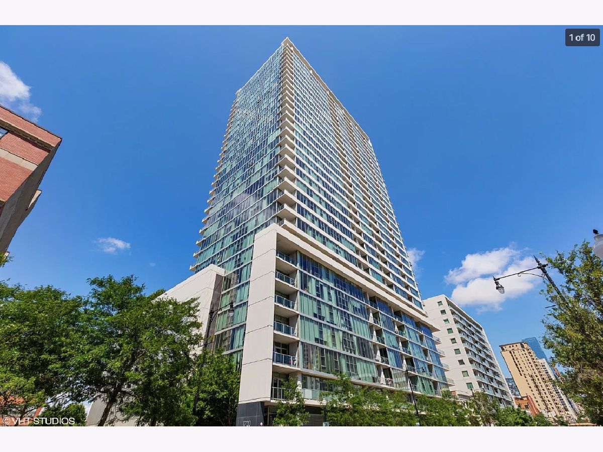 Beautiful contemporary concrete loft with stunning views of the city skyline, lake, and Navy Pier from floor to ceiling windows. Largest floor plan in the building, with 10 ft ceilings throughout. The spacious primary suite has large windows, a walk in closet complete with built in organizer, and primary bathroom with double vanity. Primary suite and living room are both equipped with commercial-grade darkening blinds. Seller has installed custom wood cabinetry and paneling, offering an aesthetically pleasing, sound proof entryway. Laundry closet has been artfully tiled for convenience. The galley kitchen features a cozy breakfast nook, solid wood cabinets, gleaming stainless steel appliances and granite countertops. Master bedroom has an en-suite bathroom featuring brilliant white cabinets, double vanity with a marble countertop and shower/bath combo. Original walk in closet was removed and replaced with compact shelving to create a massive master bedroom that fits a king bed with room to spare. In unit laundry and spacious balcony perfect for enjoying morning coffee or evening cocktails with the city as your backdrop. Pet and investor friendly building. Monthly HOA dues include 24-hour door staff, heat, air conditioning, hot water, cable TV, and fiber optic internet in this elevator building with on-site property manager, receiving room, and bike room. Great location minutes to Grant Park, Millennium Park, Soldier Field, Lakefront Trail, & Museum Campus. Near Mariano's, Trader Joe's, shopping, and amazing restaurants! Building includes 24 hr door staff, dog run, attached grocery store, & steps from Fred Anderson Dog Park. Michigan Ave bus stop right outside & Roosevelt CTA a few blocks away. Quick access to 90-94, I-55, Lake Shore Drive. If you're looking for comfort, style, and the best view in the city, don't miss this South Loop gem! Sold as-is.