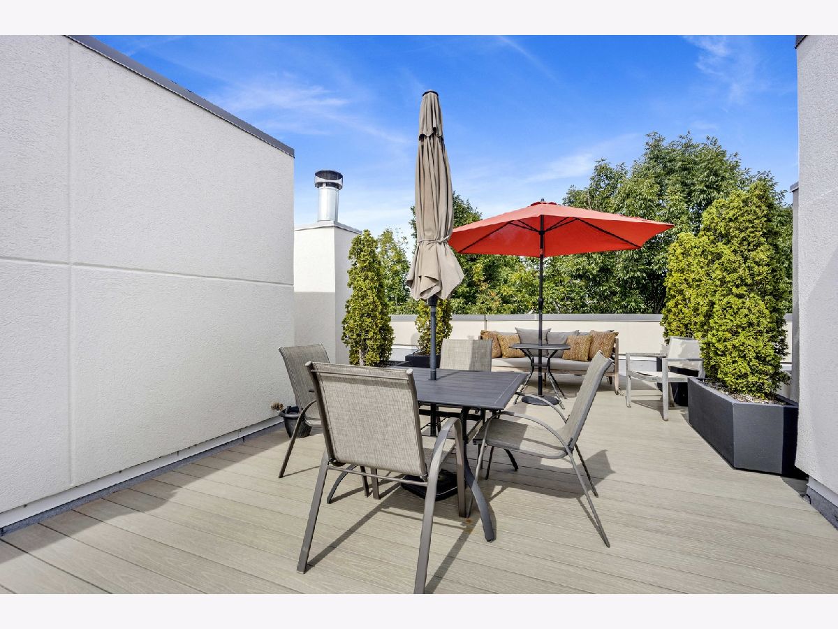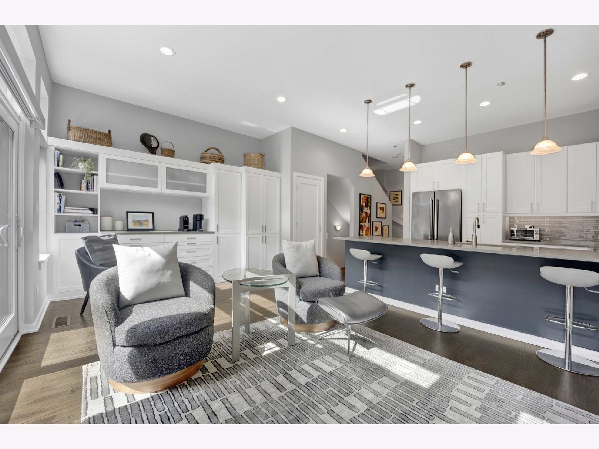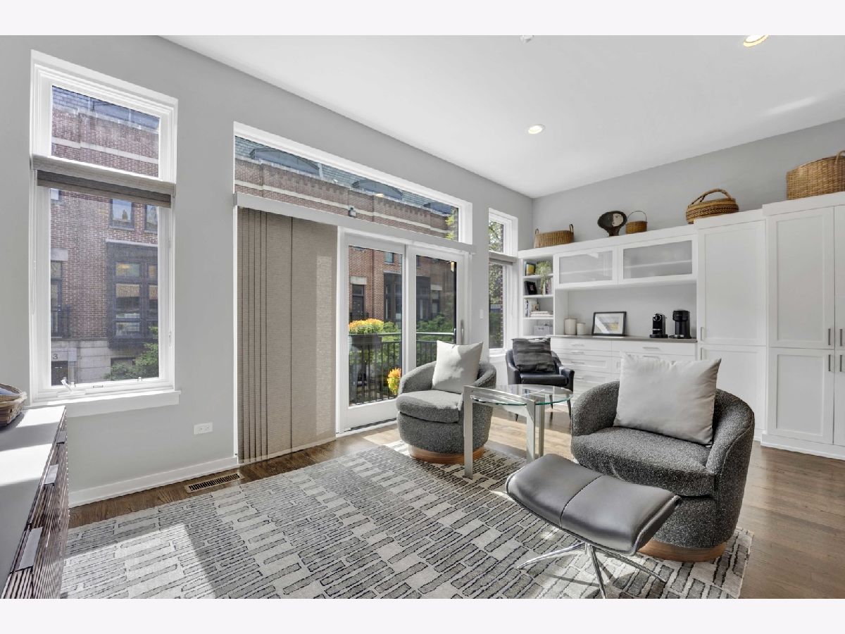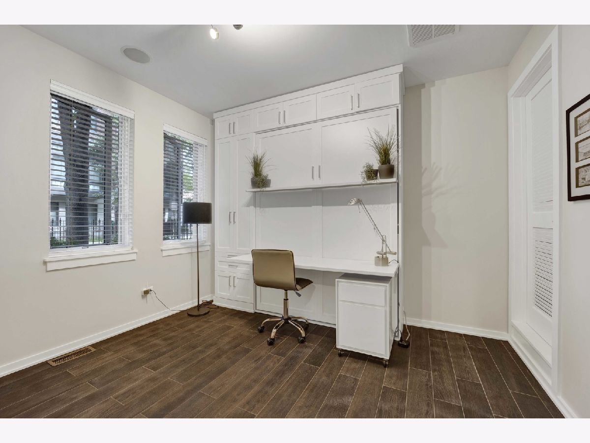 Move right into this impeccable gem at highly desirable Columbia Place in beautiful, tree-lined, Lakeview. All brick and perfectly maintained, this 4 bedroom, 2.1 bath townhome checks off all the boxes. The first floor features heated floors and a great bedroom/den with built in Murphy bed and loads of built-in storage and a smart half bath. Main floor boasts luxury living with pristine hardwood flooring, a sleek open kitchen/living area with deluxe stainless appliances, white cabinetry and flooded with natural light from three large sliding doors that open to a lovely balcony. The excellent layout includes perfect flow into a generous open dining room and living room space with great light and distinctive fireplace with custom built-ins. Upstairs find three bedrooms and two full baths. Primary suite includes huge walk-in closet and ensuite bath with double vanity and large custom tiled glass enclosed shower. In unit washer/dryer and stairway to a wonderful, private rooftop deck complete the floor. Other great features include attached 2 car garage, lovely landscaped front yard enclosed by a wrought iron fence and courtyard. Great location! Burley School District. Steps to parks, shopping and restaurants and all conveniences nearby, including Jewel, Whole Foods, Trader Joe's, Mariano's, Wrigley Field, and the Lake.