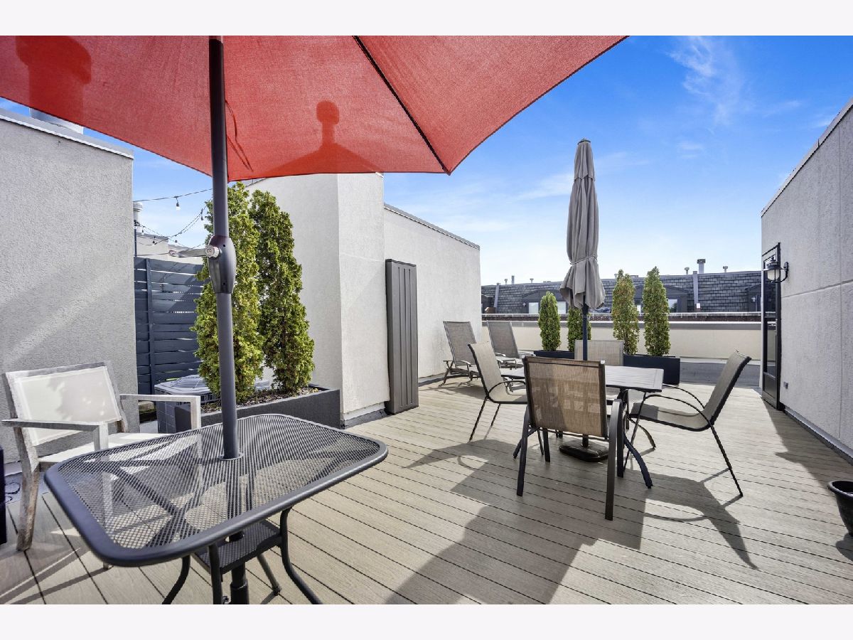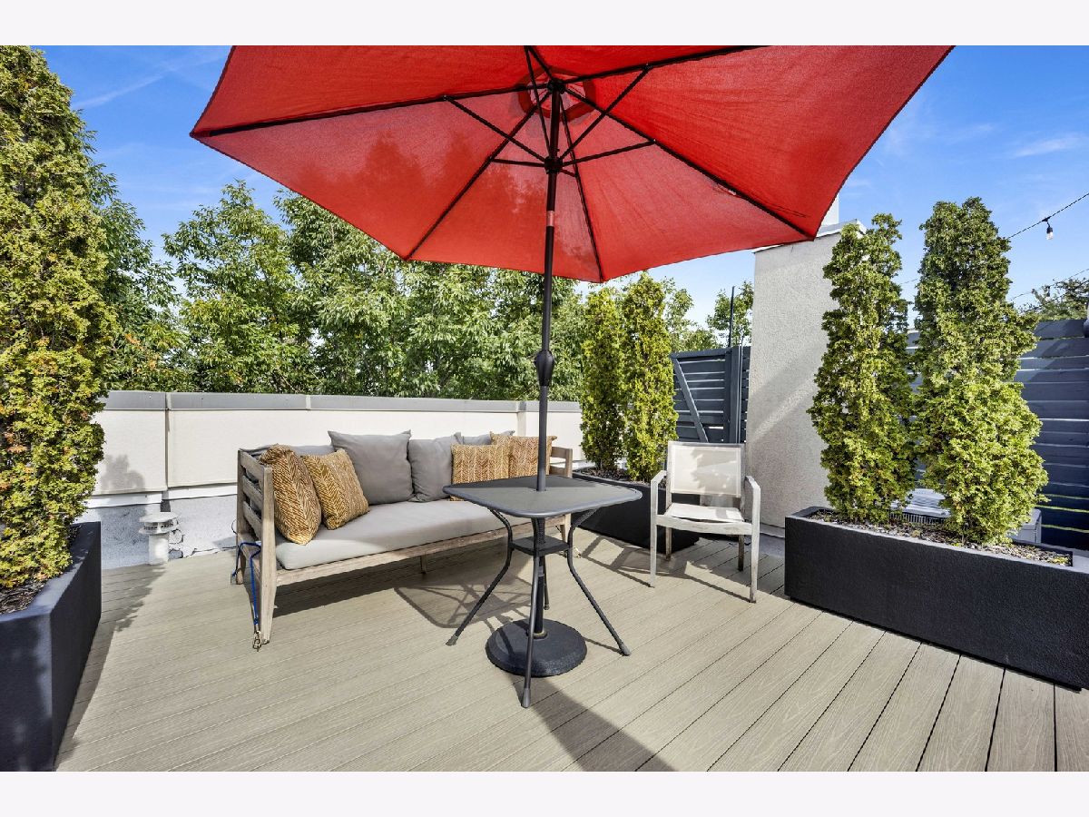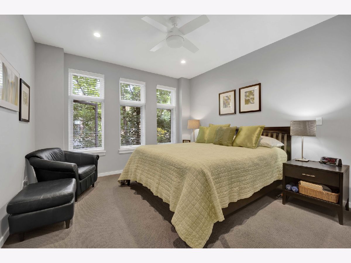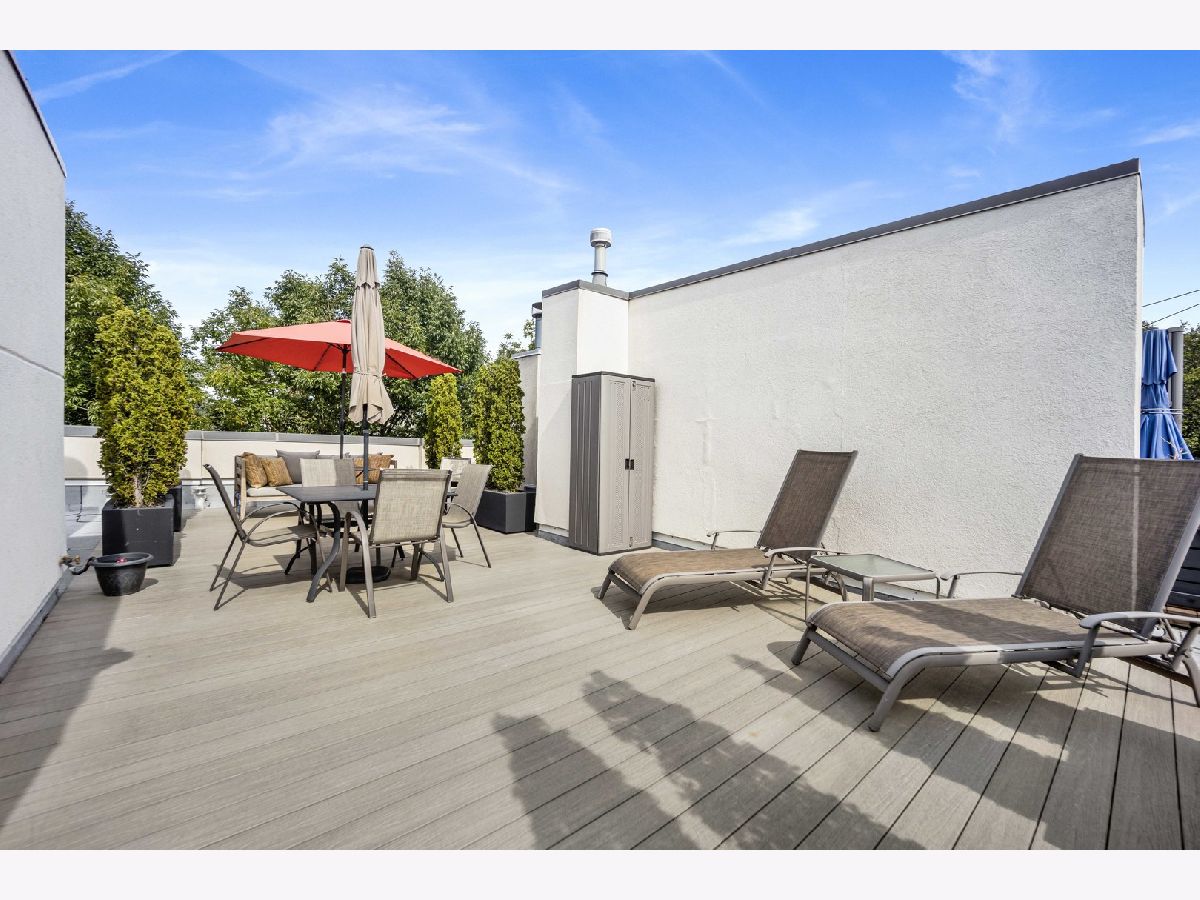 Move right into this impeccable gem at highly desirable Columbia Place in beautiful, tree-lined, Lakeview. All brick and perfectly maintained, this 4 bedroom, 2.1 bath townhome checks off all the boxes. The first floor features heated floors and a great bedroom/den with built in Murphy bed and loads of built-in storage and a smart half bath. Main floor boasts luxury living with pristine hardwood flooring, a sleek open kitchen/living area with deluxe stainless appliances, white cabinetry and flooded with natural light from three large sliding doors that open to a lovely balcony. The excellent layout includes perfect flow into a generous open dining room and living room space with great light and distinctive fireplace with custom built-ins. Upstairs find three bedrooms and two full baths. Primary suite includes huge walk-in closet and ensuite bath with double vanity and large custom tiled glass enclosed shower. In unit washer/dryer and stairway to a wonderful, private rooftop deck complete the floor. Other great features include attached 2 car garage, lovely landscaped front yard enclosed by a wrought iron fence and courtyard. Great location! Burley School District. Steps to parks, shopping and restaurants and all conveniences nearby, including Jewel, Whole Foods, Trader Joe's, Mariano's, Wrigley Field, and the Lake.