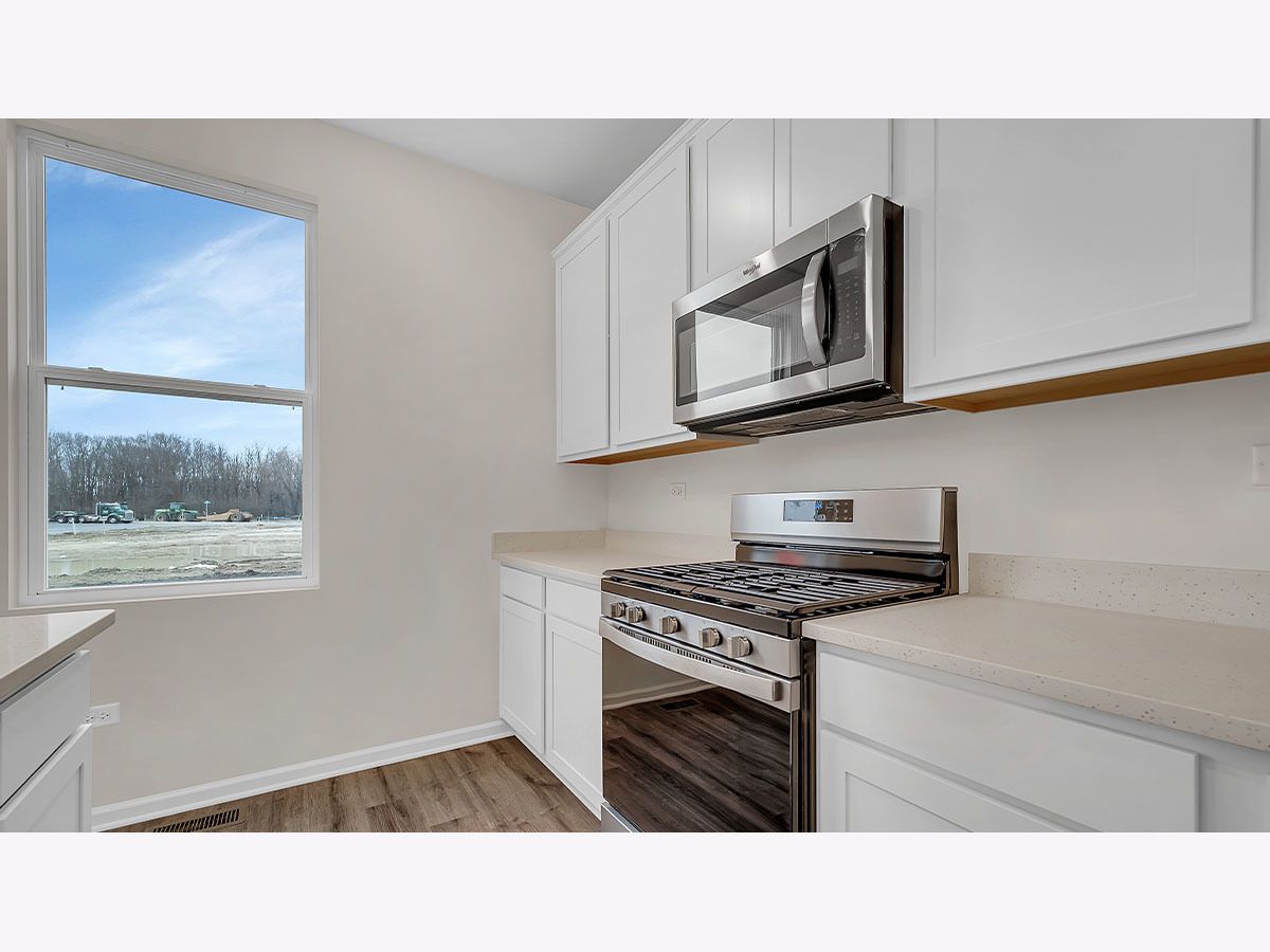 Discover yourself at 17201 Munster Ln. in Tinley Park, Illinois, a beautiful new home in our Oak Ridge community. This home will be ready for a summer move-in! This large, scenic homesite includes a front porch and fully sodded yard. This Bellamy plan offers 2,052 square feet of living space with a flex room, 4 bedrooms, 2.5 baths, 9-foot ceilings on first floor, and full basement. Entertaining will be easy in this open-concept kitchen and family room layout with a large island with an overhang for stools, 42-inch designer cabinetry with soft close drawers. Additionally, the kitchen features a walk-in pantry, modern stainless-steel appliances, quartz countertops, and easy-to-maintain luxury vinyl plank flooring. Enjoy your private getaway with your large primary bedroom and en suite bathroom with a raised height dual sink, quartz top vanity, and walk-in shower with clear glass shower doors. Convenient walk-in laundry room, 4 bedrooms with a full second bath and a linen closet complete the second floor. All Chicago homes include our America's Smart Home Technology. Photos are of similar home and model home. Actual home built may vary.