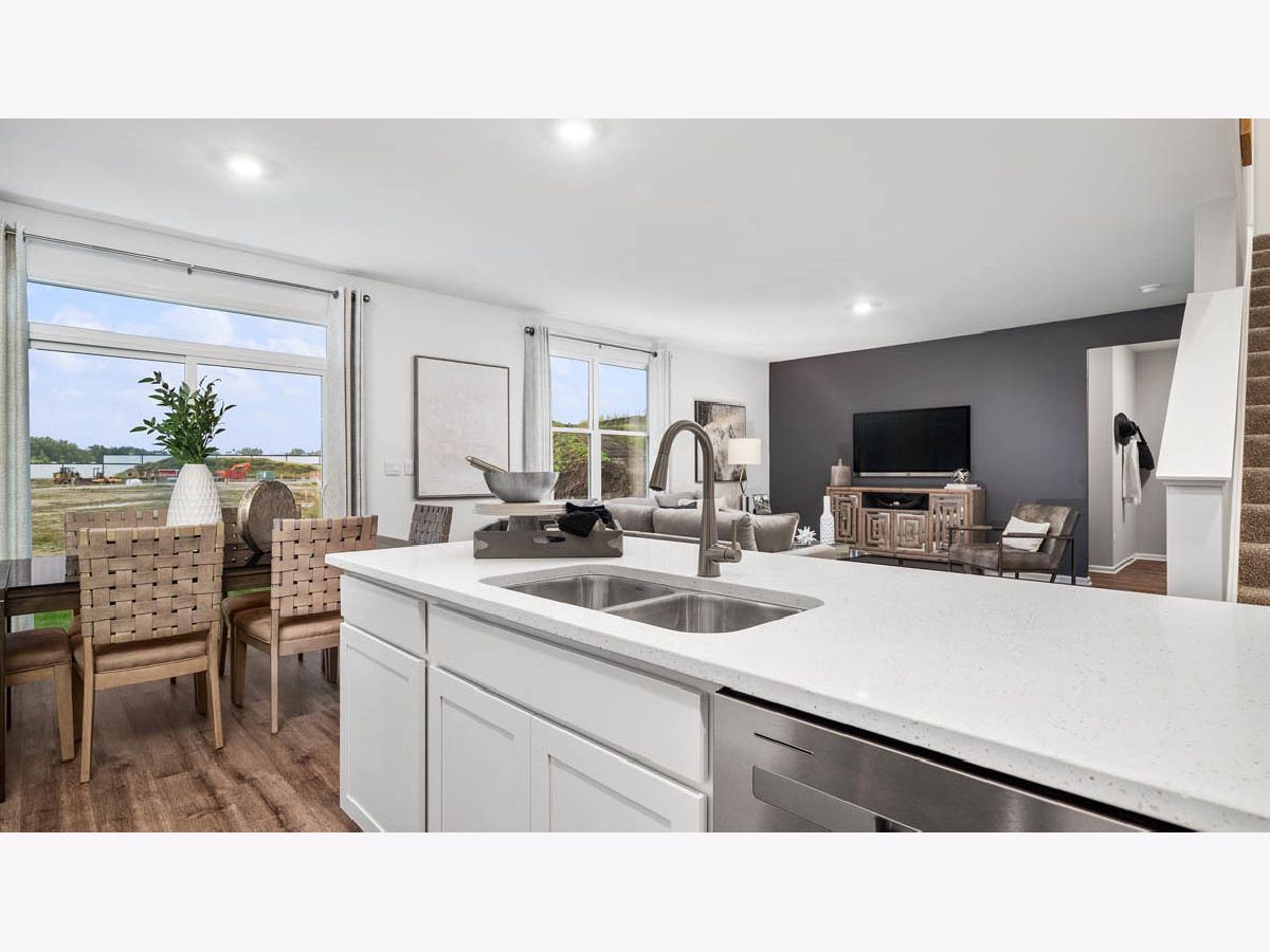Discover yourself at 17205 Munster Lane in Tinley Park, Illinois, a beautiful new home in our Oak Ridge community. This home will be ready for a spring move-in! This homesite is on a cul-de-sac and includes a fully sodded yard. This Henley plan offers 2,600 square feet of living space with a flex room, 4 bedrooms, 2.5 baths, 9-foot ceilings on first floor, and full basement. Entertaining will be easy in this open-concept kitchen and family room layout with a large island with an overhang for stools, 42-inch designer cabinetry with soft close drawers. Additionally, the kitchen features a walk-in pantry, modern stainless-steel appliances, quartz countertops, and easy-to-maintain luxury vinyl plank flooring. More flexible space is waiting upstairs in the 2nd-floor loft, offering unlimited potential to suit your needs. Enjoy your private getaway with your large primary bedroom and en suite bathroom with a raised height dual sink, quartz top vanity, and walk-in shower with clear glass shower doors. Convenient walk-in laundry room, 3 additional bedrooms with a full second bath and a linen closet complete the second floor. This charming, historic town evokes a family atmosphere with countless options for shopping, dining and entertainment. All Chicago homes include our America's Smart Home Technology. Photos are of similar home and model home. Actual home built may vary.