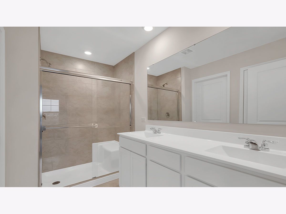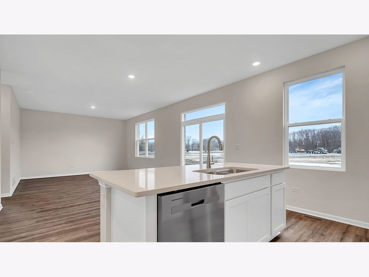 Discover yourself at 17209 Munster Ln. in Tinley Park, Illinois, a beautiful new home in our Oak Ridge community. This home will be ready for a spring move-in! This large, scenic homesite on cul-de-sac with a front porch and fully sodded yard. This Bellamy plan offers 2,052 square feet of living space with a flex room, 4 bedrooms, 2.5 baths, 9-foot ceilings on first floor, and full basement. Entertaining will be easy in this open-concept kitchen and family room layout with a large island with an overhang for stools, 42-inch designer cabinetry with soft close drawers. Additionally, the kitchen features a walk-in pantry, modern stainless-steel appliances, quartz countertops, and easy-to-maintain luxury vinyl plank flooring. Enjoy your private getaway with your large primary bedroom and en suite bathroom with a raised height dual sink, quartz top vanity, and walk-in shower with clear glass shower doors. Convenient walk-in laundry room, 4 bedrooms with a full second bath and a linen closet complete the second floor. All Chicago homes include our America's Smart Home Technology. Photos are of similar home and model home. Actual home built may vary.
