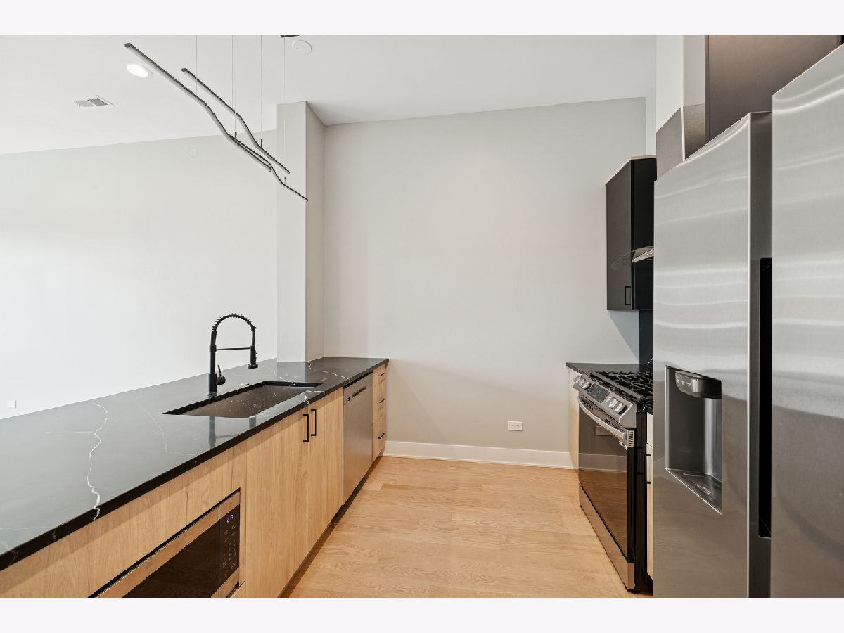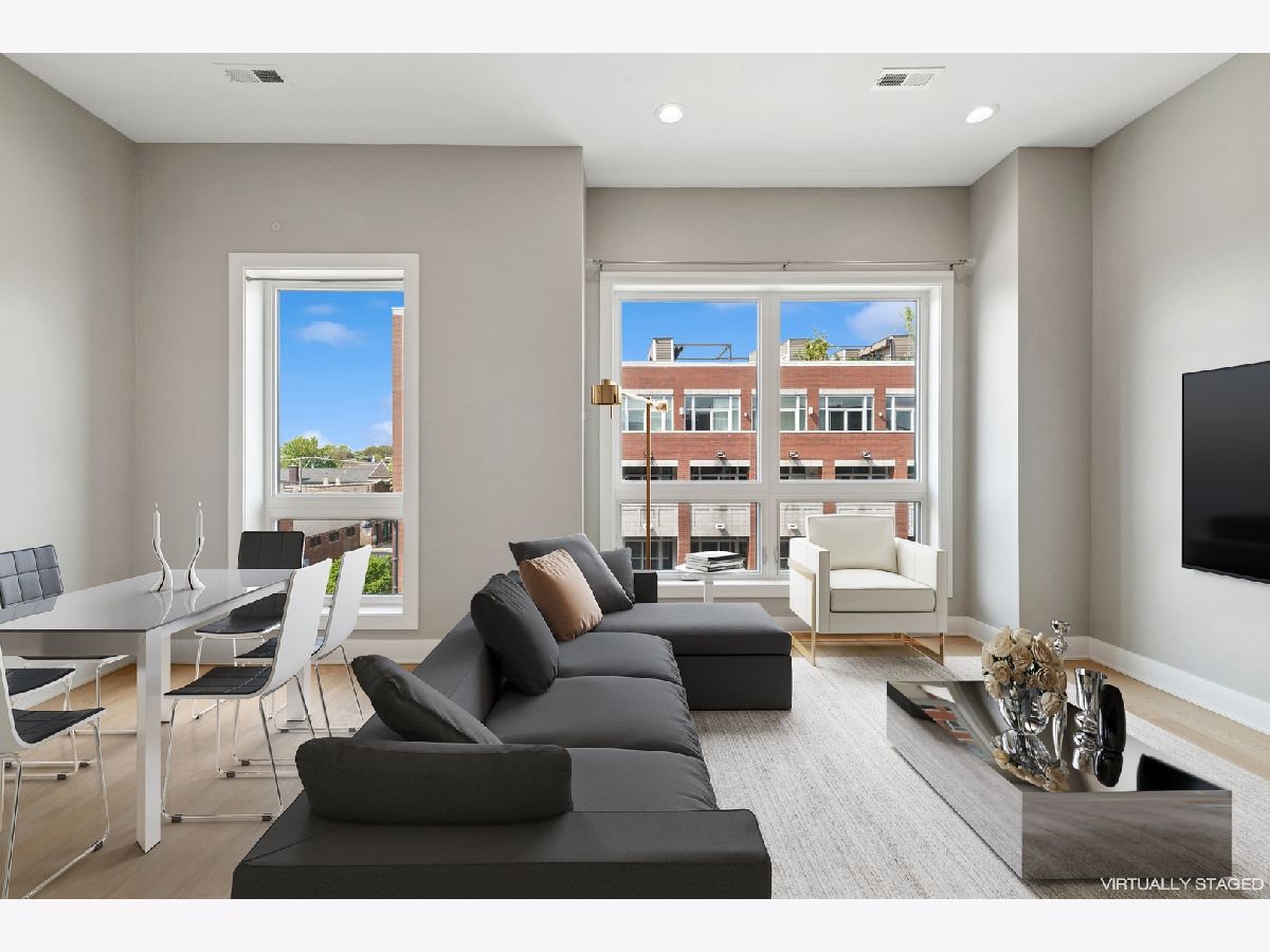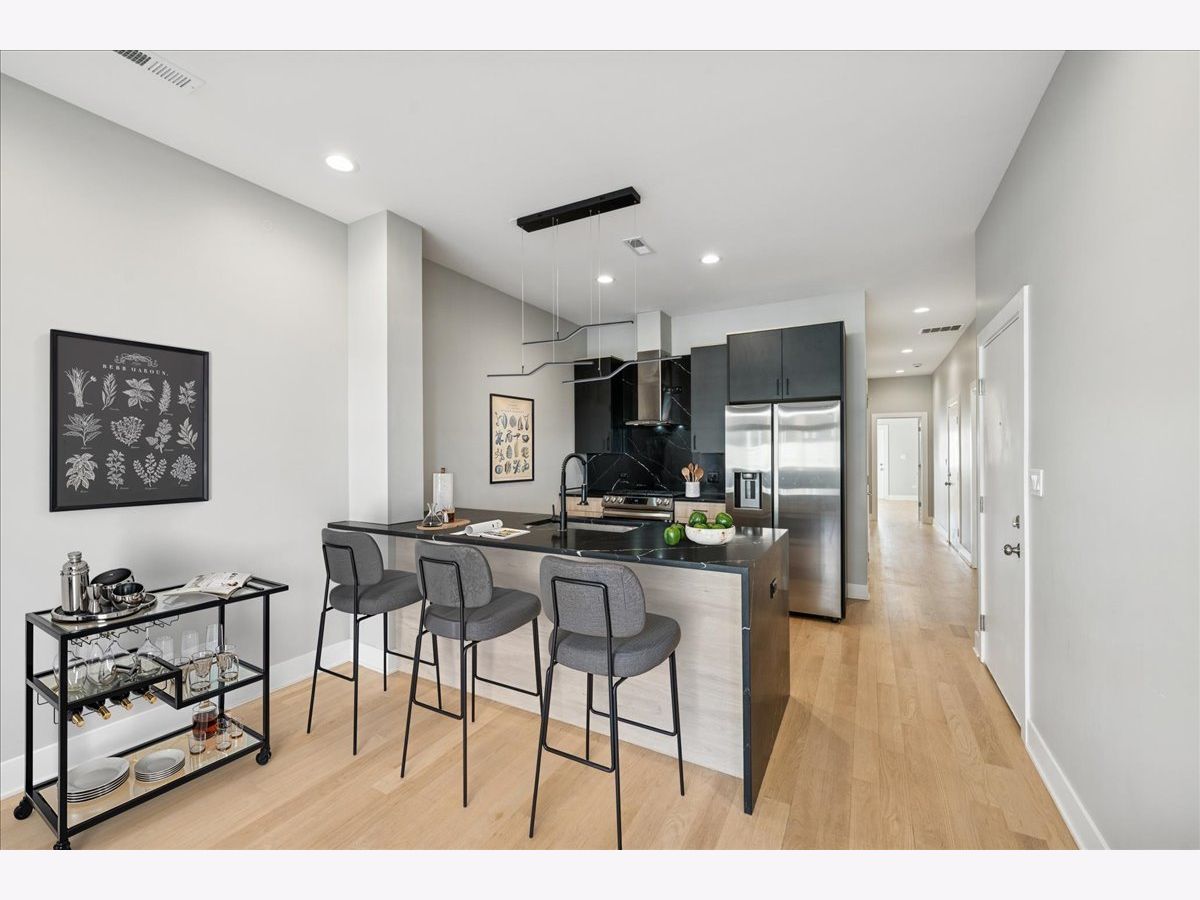 Introducing this luxurious modern 2 bed, 2 bath second floor residence in this newer construction building! This home boasts beautiful hardwood floors throughout, with a huge living/dining room combination perfect for entertaining, or could easily convert dining area into a separate office or nursery. The sleek, contemporary kitchen features a breakfast island, quartz countertops, and Samsung stainless steel appliance package. Primary bedroom featuring a huge spa-like bathroom, custom walk-in closet, and private patio, perfect for that morning coffee. Enjoy the convenience of an in-unit laundry room with full-size side by side washer and dryer. A convenient designated exterior parking space is included large enough for tandem parking, with tons of additional street parking available. Located just steps from the vibrant restaurants, shopping, and nightlife of Wicker Park and Bucktown, and with easy access to the CTA Damen Blue Line and the 90/94 expressway. Seller is offering a 1/1 Rate Buydown. Act now and start enjoying a rate in the 5's. Dave Radke of Origin Point is providing financing.