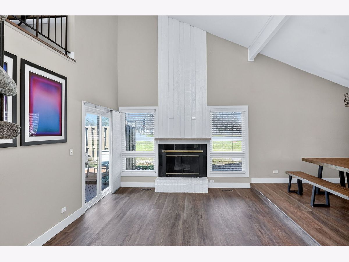 Beautifully remodeled end-unit courthome in Sawmill Creek offering style, comfort, and functionality throughout. This 3 bedroom plus loft, 2 bath home features a highly desirable first floor primary suite with a fully customized oversized walk-in closet, separate sink area with brand new vanity, new toilet, tiled shower, and tiled flooring. The home is filled with tons of natural light and features luxury vinyl flooring throughout, fresh paint, oversized white trim, updated interior doors, and new lighting. The remodeled kitchen includes granite countertops, custom tile backsplash, brand new cabinetry, can lighting, and stainless Samsung appliances, and opens to a spacious elevated dining area perfect for everyday living and entertaining. The dramatic living room showcases vaulted ceilings, a floor-to-ceiling gas fireplace, wood beam detail, and access to a private extra large deck off the back, ideal for relaxing or entertaining. Upstairs, the loft and additional bedroom offer flexible space for guests, work, or a second living area. Additional improvements include newer windows, HVAC, water heater, screen door, washer and dryer, brick and cedar siding, and roof updates. Conveniently located near shopping, dining, walking trails, and expressways, and served by top rated schools including Downers Grove South High School.
