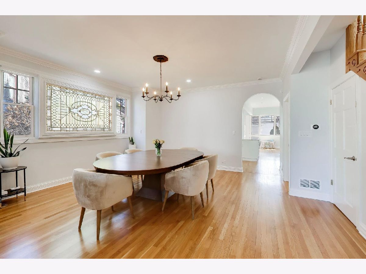Beautifully updated 3,500 sq ft residence situated on one of the most picturesque, tree-lined blocks in the Lakeview/Roscoe Village area. Located on Henderson Street, complete with a landscaped parkway and butterfly garden, this home offers a rare blend of timeless architectural charm and refined modern convenience, all enhanced by an abundance of natural light throughout. The main level presents a gracious foyer, expansive living and dining spaces, and a striking stained-glass window that adds warmth and character. The show stopping chef's kitchen fully renovated (2022) serves as the centerpiece of the home, featuring an impressive 5' x 10' quartz island, premium Bosch appliances with double ovens and induction cooktop, custom cabinetry, updated hardwood flooring, designer lighting, and a Zephyr wine refrigerator. A dedicated dining area provides both functionality and flow for everyday living and entertaining. The upper level offers two generously sized bedrooms, each with en-suite baths. The primary suite includes a walk-in closet, private deck, and a spa-inspired bath with heated marble floors, steam shower, and a Victoria + Albert soaking tub. A third bedroom with its own bath offers flexible use for guests, home office, or additional living space. The finished lower level expands the home's livability with a large recreation room, hybrid plank flooring, built-in cabinetry with quartz countertops, laundry room, and powder room. Extensive recent improvements include a tankless water heater (2023), HVAC systems (2022 & 2024), updated AC lines, sump and ejector pumps with backup, rebuilt decks, cedar privacy fence with sliding gate, and refreshed landscaping. Hardwood floors have been refinished throughout, complemented by custom closet systems and window treatments. Secured gated parking . Ideally located near neighborhood parks, the boutiques and restaurants of Roscoe Village and the Southport Corridor, and convenient access to the Paulina Brown Line.