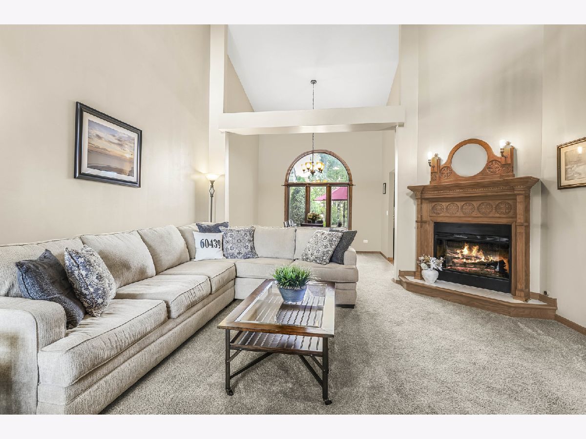 Move right in and enjoy this gorgeous, updated 2-story townhome in desirable Harpers Grove subdivision, situated on a premium lot with picturesque views of open green space. This incredible home offers a highly functional floor plan with a warm, neutral palette featuring approximately 2,100 sq. ft. of well-appointed living space. 3 spacious bedrooms, 2 and a half bathrooms, and a large unfinished basement-perfect for storage or for additional living space. The soaring ceilings and natural light amplify the sense of space, while the unique architectural details set a welcoming tone from the moment you step inside. The dramatic 2 story living room boasts a multi-sided gas fireplace framed with intricate, detailed woodwork including a built-in mirror and wall sconces which add warmth and character. This architectural gem is the focal point of the room. Spacious dining room opens to the living room, creating the ideal space for easy entertaining. The beautiful kitchen is appointed with newer dark wood cabinetry, granite countertops, all stainless-steel appliances and 2 pantries.The inviting family room seamlessly opens to the kitchen and includes the multi-sided gas fireplace that can be enjoyed from both spaces. Access the outdoor oasis through the sliding door located in the eating area adjacent to the kitchen. Luxurious primary bedroom suite is highlighted with dramatic vaulted ceilings and a sizeable walk-in closet. Spa-inspired private bath boasts heated floors, a whirlpool tub and separate shower with newer, sleek tile work, charming leaded-glass window accents and a gorgeous, custom Amish oak vanity with granite, double bowl sinks and a make-up area. Great sized 2nd bedroom with neutral carpeting and the 3rd bedroom includes gleaming hardwood floors and a walk-in closet. Refreshed hall bathroom has an updated, modern white vanity. Convenient 2nd floor laundry room with a washer, dryer and utility sink. Relax outdoors on the concrete patio with serene views of open green space for ultimate privacy. (Concrete patio and walkway 2019). Mechanicals: air conditioner, furnace, and hot water heater (2016). 2 car attached garage. Located near vibrant downtown Lemont, parks, shopping, dining, and top-rated schools-including Blue Ribbon award-winning Lemont High School.