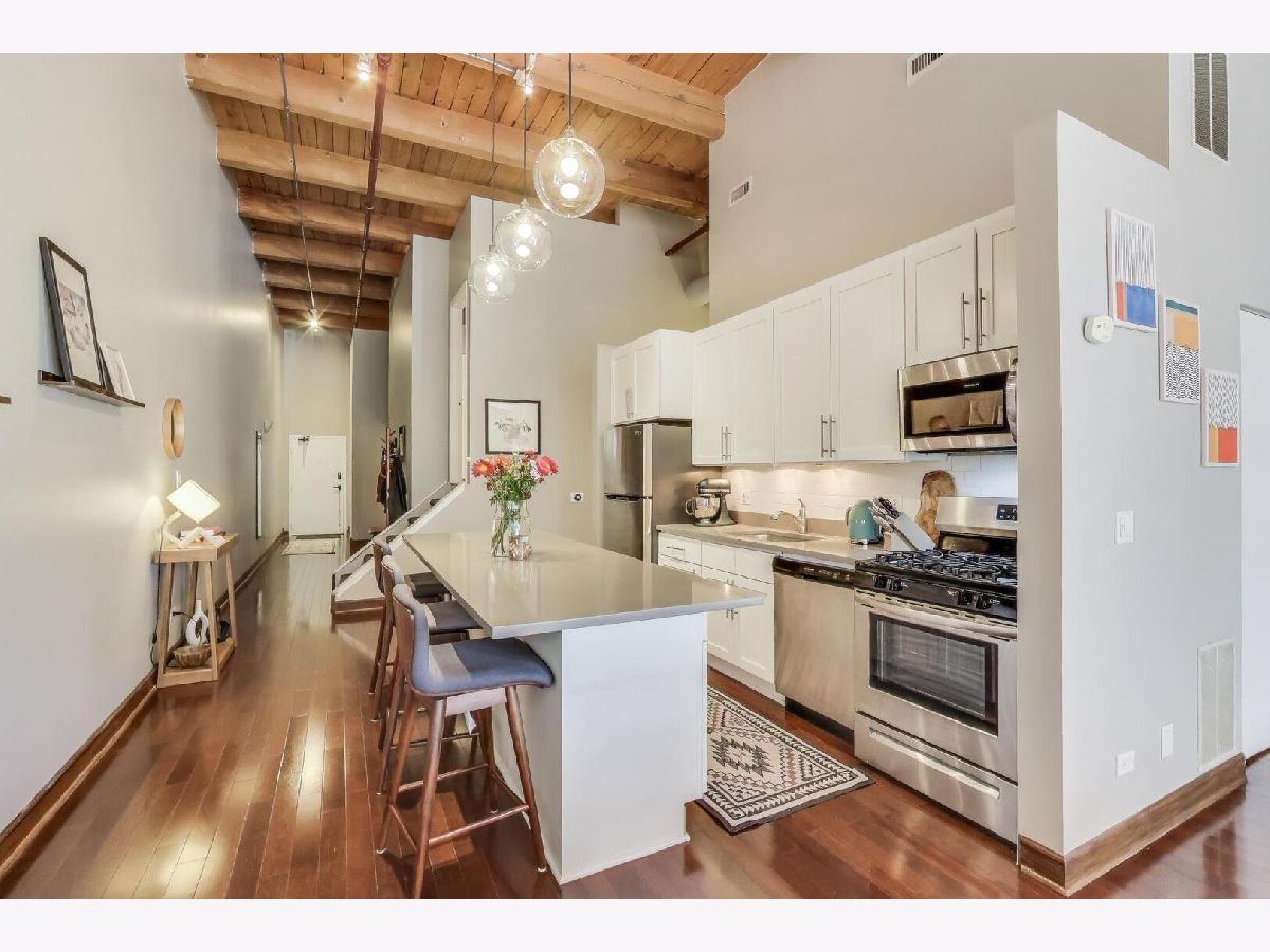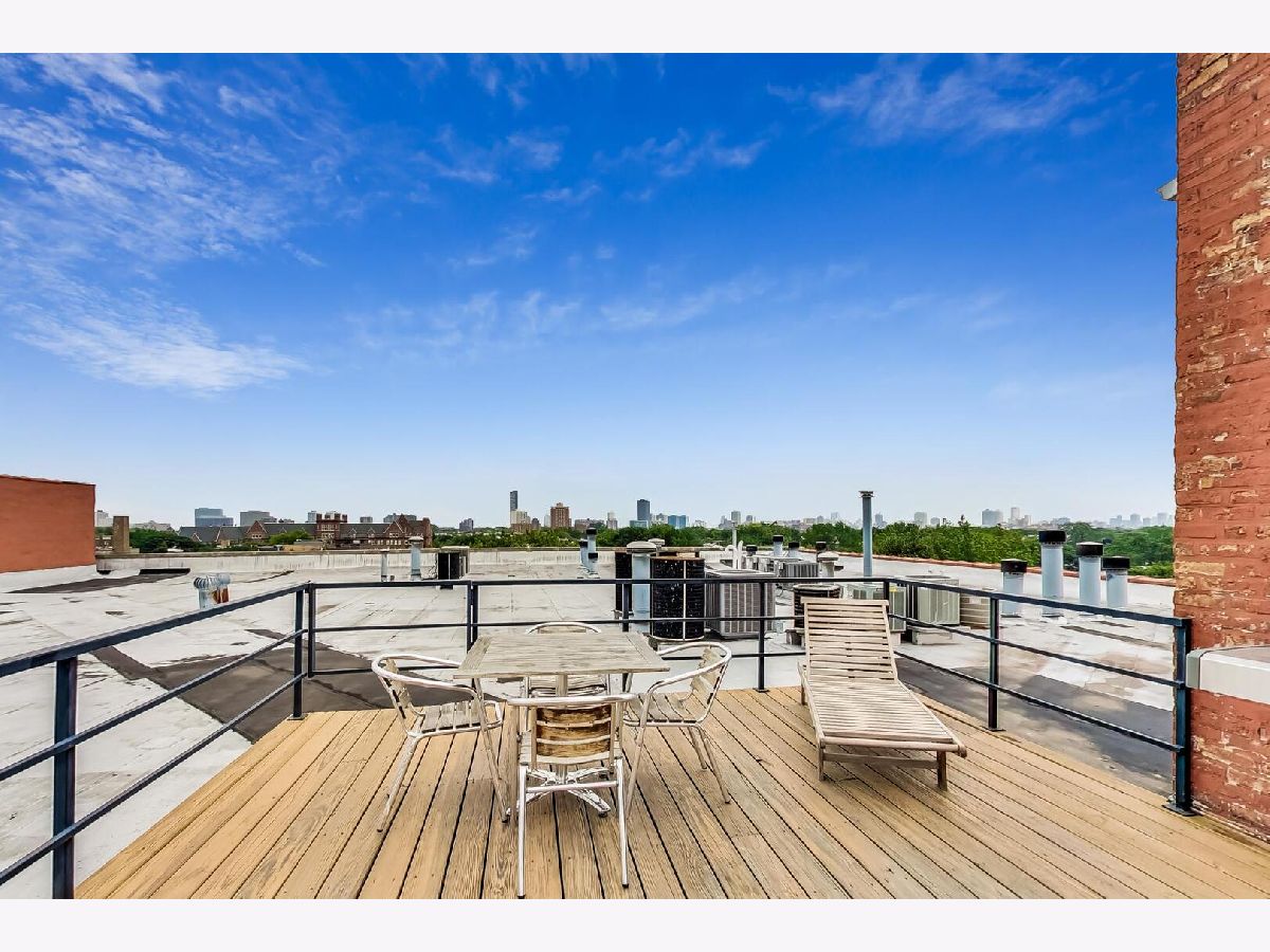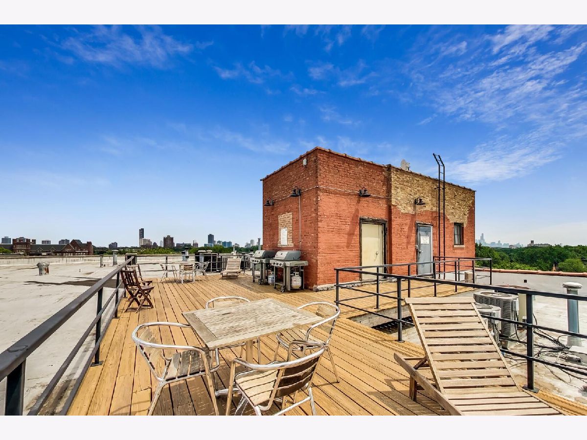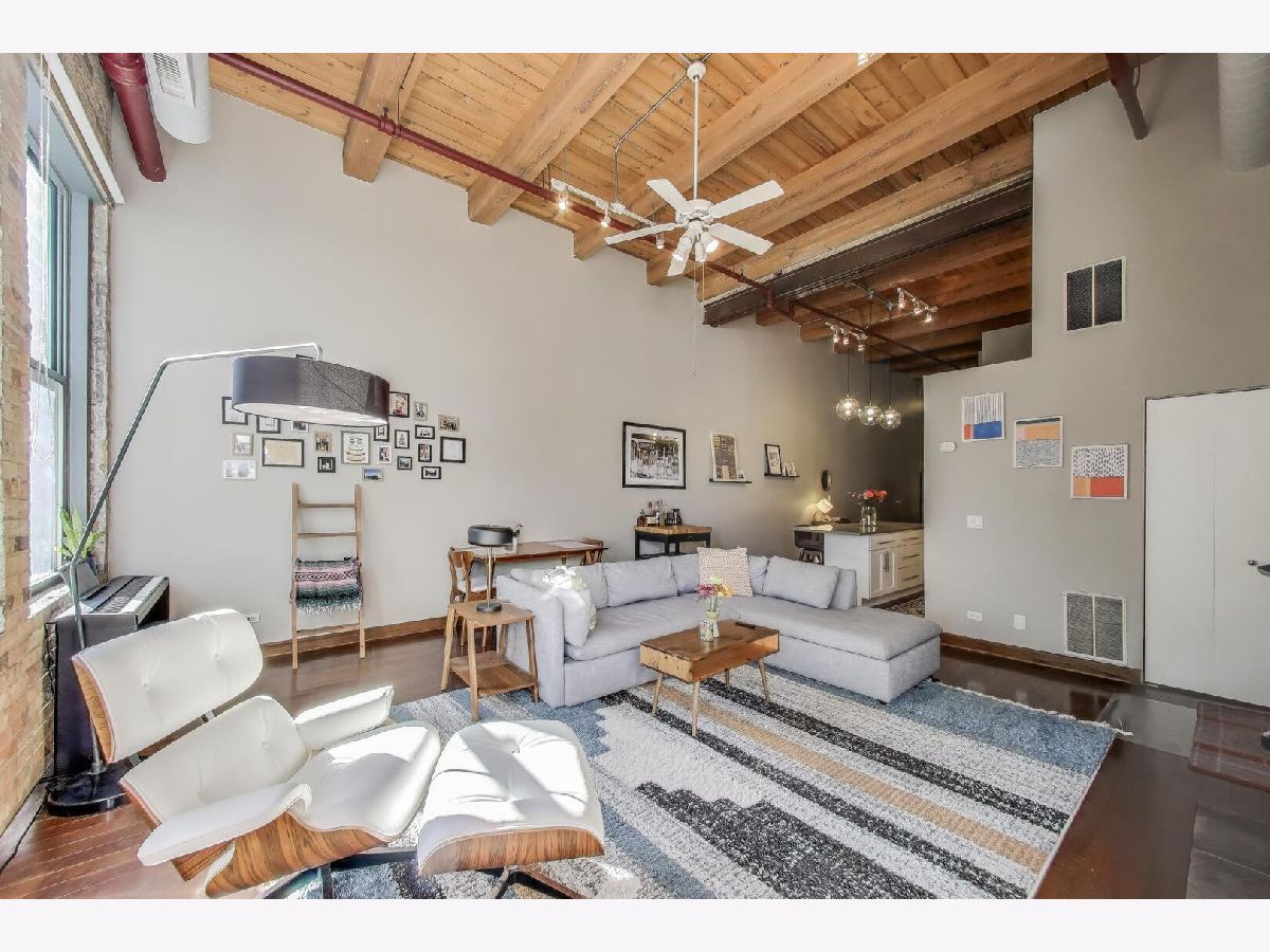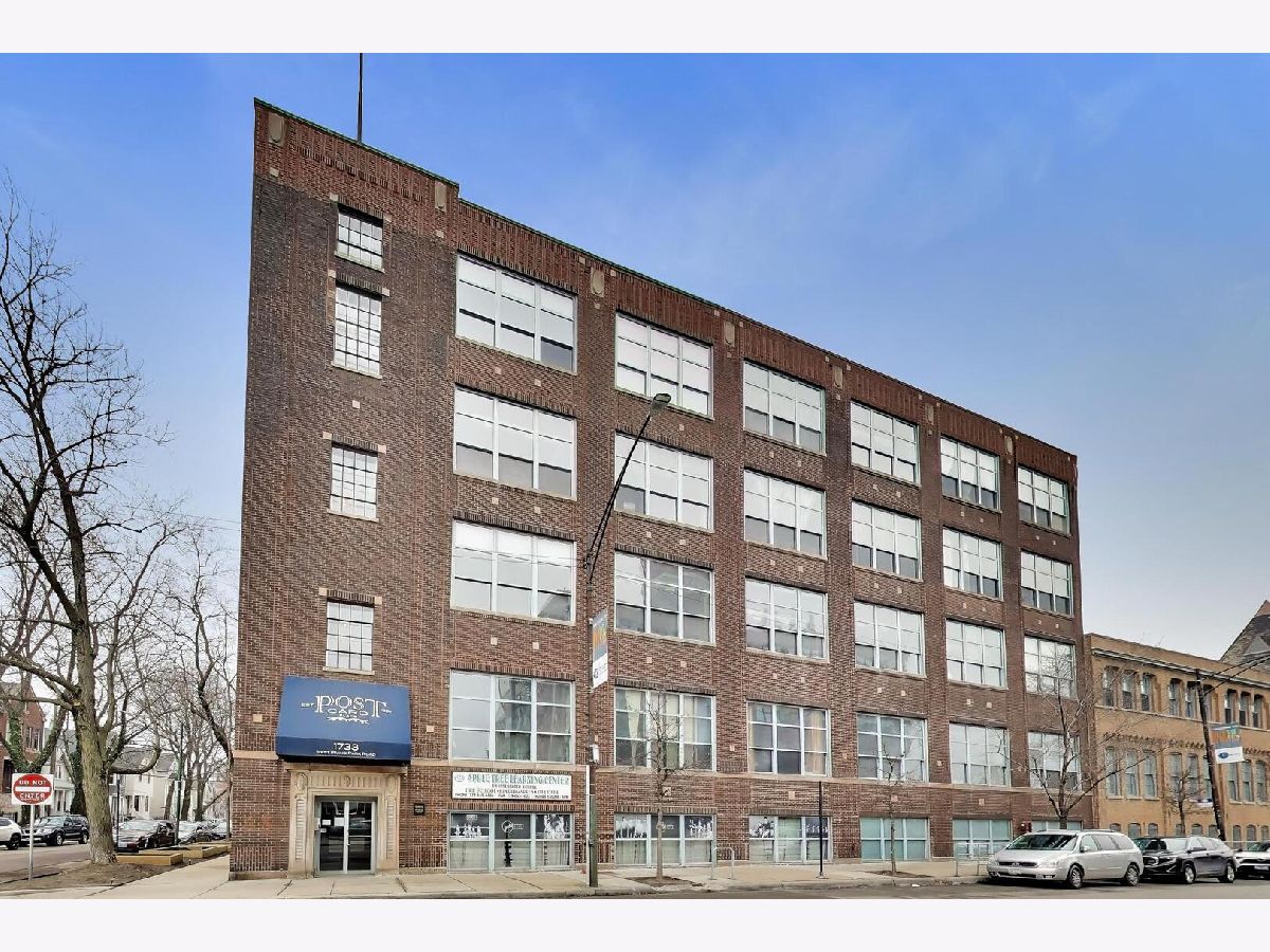 Discover authentic Chicago loft living at the iconic Post Card Factory Lofts in the heart of Lakeview. This move-in ready 2-bedroom, 1-bath residence blends timeless industrial character with thoughtful updates - all in a surprisingly quiet setting. Unlike what you might expect from the address, this unit does not face Irving Park Road, offering a more peaceful and private atmosphere while still being steps from everything Lakeview has to offer. Inside, you'll find soaring 14-foot timber ceilings, exposed brick walls, oversized south-facing windows, and rich hardwood floors that create a warm, light-filled space. The expansive open living and dining area is anchored by a gas fireplace, making it ideal for both everyday comfort and entertaining. The modern kitchen features stainless steel appliances, quartz countertops, and an impressive eight-foot island with seating - perfect for cooking, gathering, or casual dining. The primary bedroom offers generous closet space, while the lofted second bedroom provides flexibility for guests, a home office, or creative space, with additional storage below. New window treatments (blinds) have been added throughout, enhancing both privacy and style. Brand new, extra-large bathroom vanity, sink, quartz counter top, and in-unit GE washer dryer, conveniently built in behind the vanity, giving the next owner immediate value and functionality. Building amenities include resident and freight elevators, bike storage, a nearby second-floor laundry room, trash chute, and a shared rooftop deck with panoramic city views. One assigned parking space in the attached heated garage is included, plus ample street parking for guests. Located just steps from the Brown Line, and minutes from Lake Michigan, Belmont Harbor, Wrigley Field, restaurants, coffee shops, and neighborhood favorites - this home offers the best of Lakeview living with character you simply can't replicate. A true loft with history, charm, and comfort.