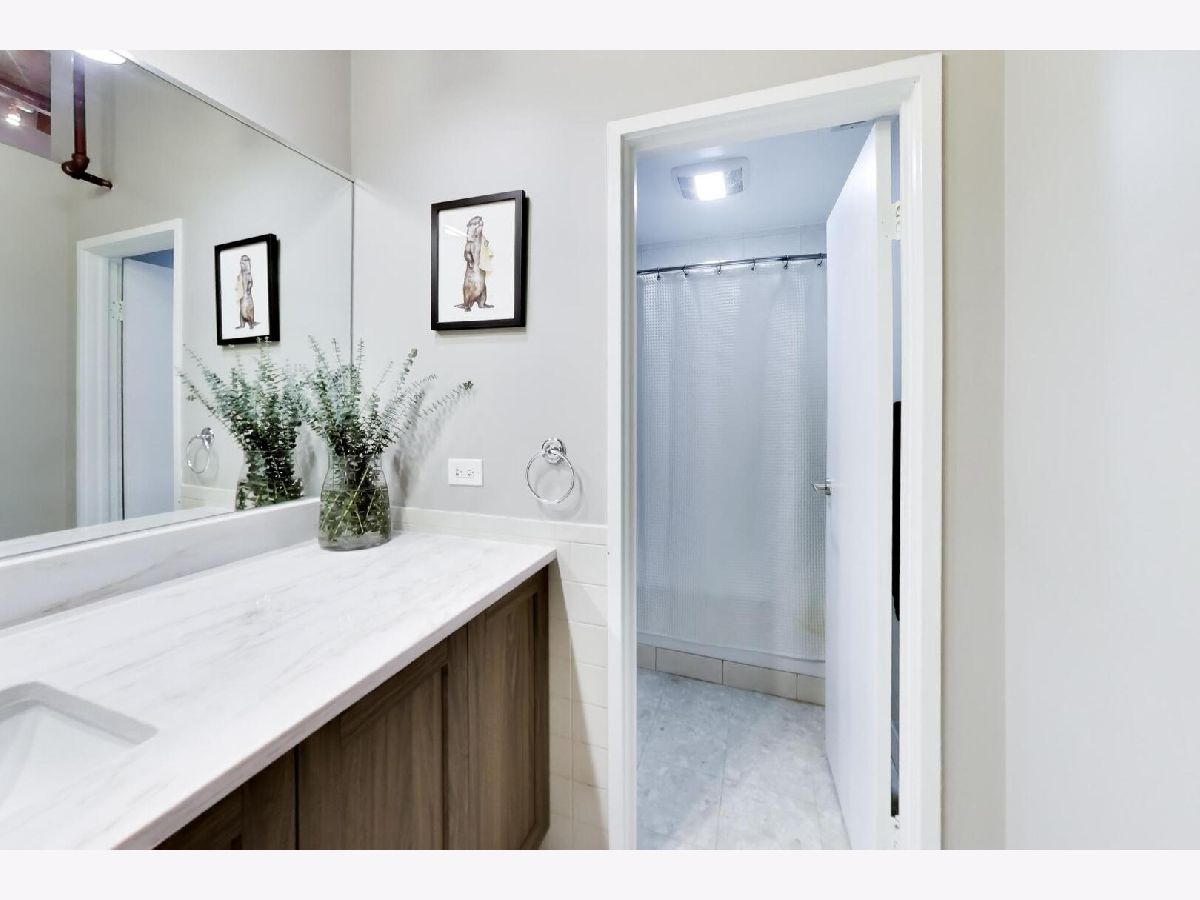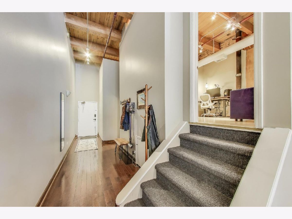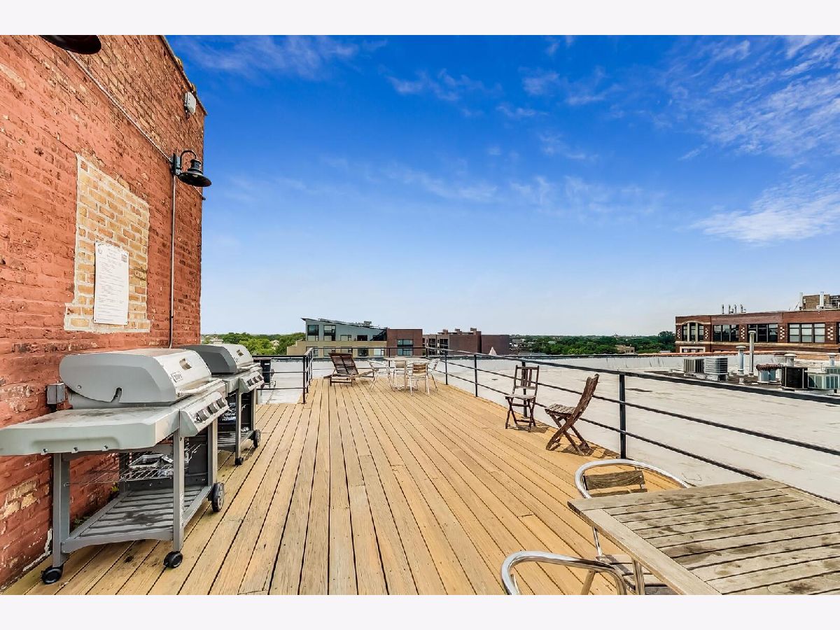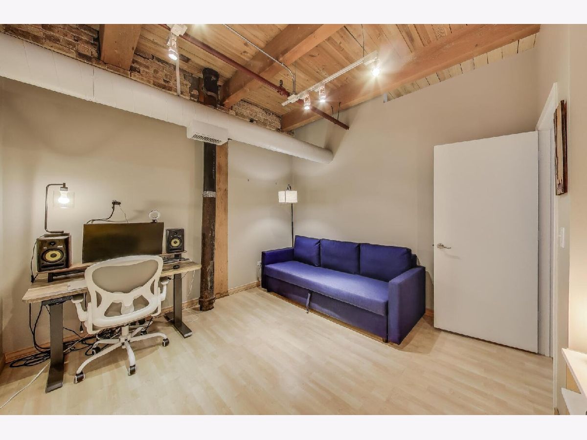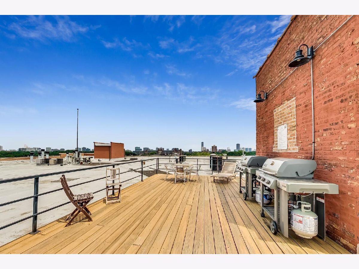 Discover authentic Chicago loft living at the iconic Post Card Factory Lofts in the heart of Lakeview. This move-in ready 2-bedroom, 1-bath residence blends timeless industrial character with thoughtful updates - all in a surprisingly quiet setting. Unlike what you might expect from the address, this unit does not face Irving Park Road, offering a more peaceful and private atmosphere while still being steps from everything Lakeview has to offer. Inside, you'll find soaring 14-foot timber ceilings, exposed brick walls, oversized south-facing windows, and rich hardwood floors that create a warm, light-filled space. The expansive open living and dining area is anchored by a gas fireplace, making it ideal for both everyday comfort and entertaining. The modern kitchen features stainless steel appliances, quartz countertops, and an impressive eight-foot island with seating - perfect for cooking, gathering, or casual dining. The primary bedroom offers generous closet space, while the lofted second bedroom provides flexibility for guests, a home office, or creative space, with additional storage below. New window treatments (blinds) have been added throughout, enhancing both privacy and style. Brand new, extra-large bathroom vanity, sink, quartz counter top, and in-unit GE washer dryer, conveniently built in behind the vanity, giving the next owner immediate value and functionality. Building amenities include resident and freight elevators, bike storage, a nearby second-floor laundry room, trash chute, and a shared rooftop deck with panoramic city views. One assigned parking space in the attached heated garage is included, plus ample street parking for guests. Located just steps from the Brown Line, and minutes from Lake Michigan, Belmont Harbor, Wrigley Field, restaurants, coffee shops, and neighborhood favorites - this home offers the best of Lakeview living with character you simply can't replicate. A true loft with history, charm, and comfort.