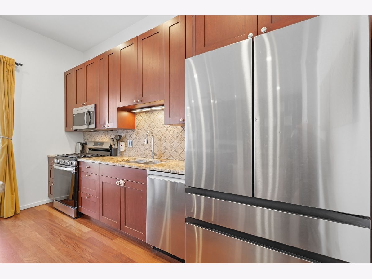 Great location on the boarder of Bucktown and Wicker Park close to the beautiful 606 trail with a wonderful space inside as well! Home features great layout, all brick building, outdoor space off of kitchen and primary bedroom. Hardwood floors throughout , freshly painted and high ceilings. Well maintained and ready to move in. Tons of upgrades have been done by current owner including New laundry (2022), new hot water heater (2022), and all new kitchen appliances (2023) and a beautifully designed, primary walk in closet! Garage parking included! Close to the Western Blue line train, restaurants, shopping, the popular restaurant Wolf and CO. and all that Bucktown/ Wicker Park has to offer.