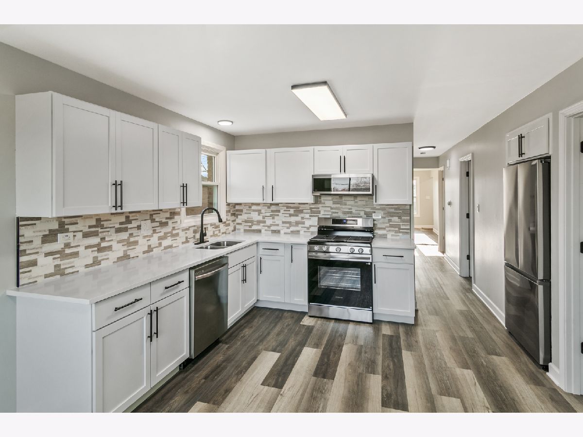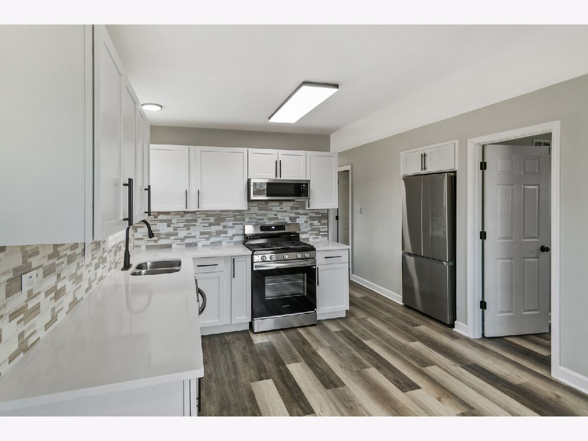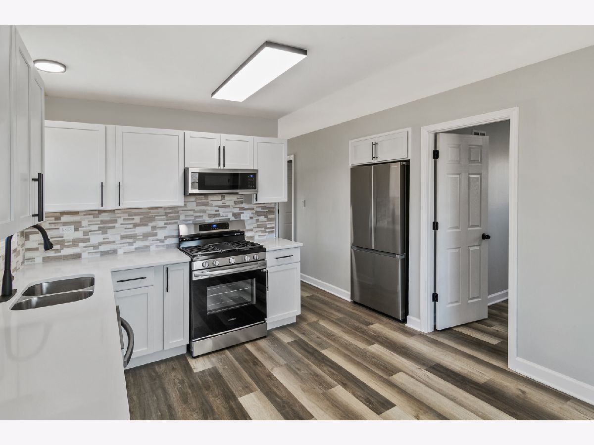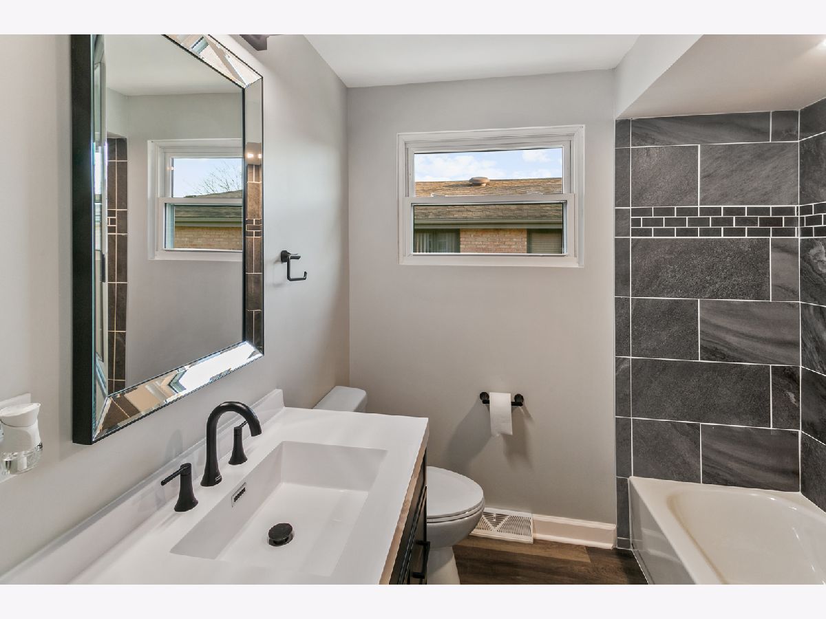 This beautifully updated and move-in ready brick bungalow in Tinley Park offers five bedrooms and two full baths, perfectly blending classic charm with modern upgrades throughout. The main level features four spacious bedrooms, while the fully finished basement provides a fifth bedroom, a versatile den or rec room, and a large family room for additional living space. The stunning updated kitchen boasts white shaker-style cabinets, quartz countertops, a custom backsplash, and new stainless steel appliances. Recent improvements include all new interior paint in a fresh modern color scheme, luxury vinyl plank flooring on both levels, a brand-new full bathroom with a stand-alone shower, new windows in the basement, new storm doors, new interior doors, and a new electrical panel. Outside, enjoy a privacy-fenced yard and a 2.5-car garage with an attached covered patio, ideal for outdoor gatherings. Additional updates include new siding, a new garage door and opener, a new roof on the garage, a newer roof (2015) on the main house, and a new water heater (2024). Turn-key and thoughtfully refreshed, this home is ready for its next chapter-Please view the 3-D tour and schedule your showing today!