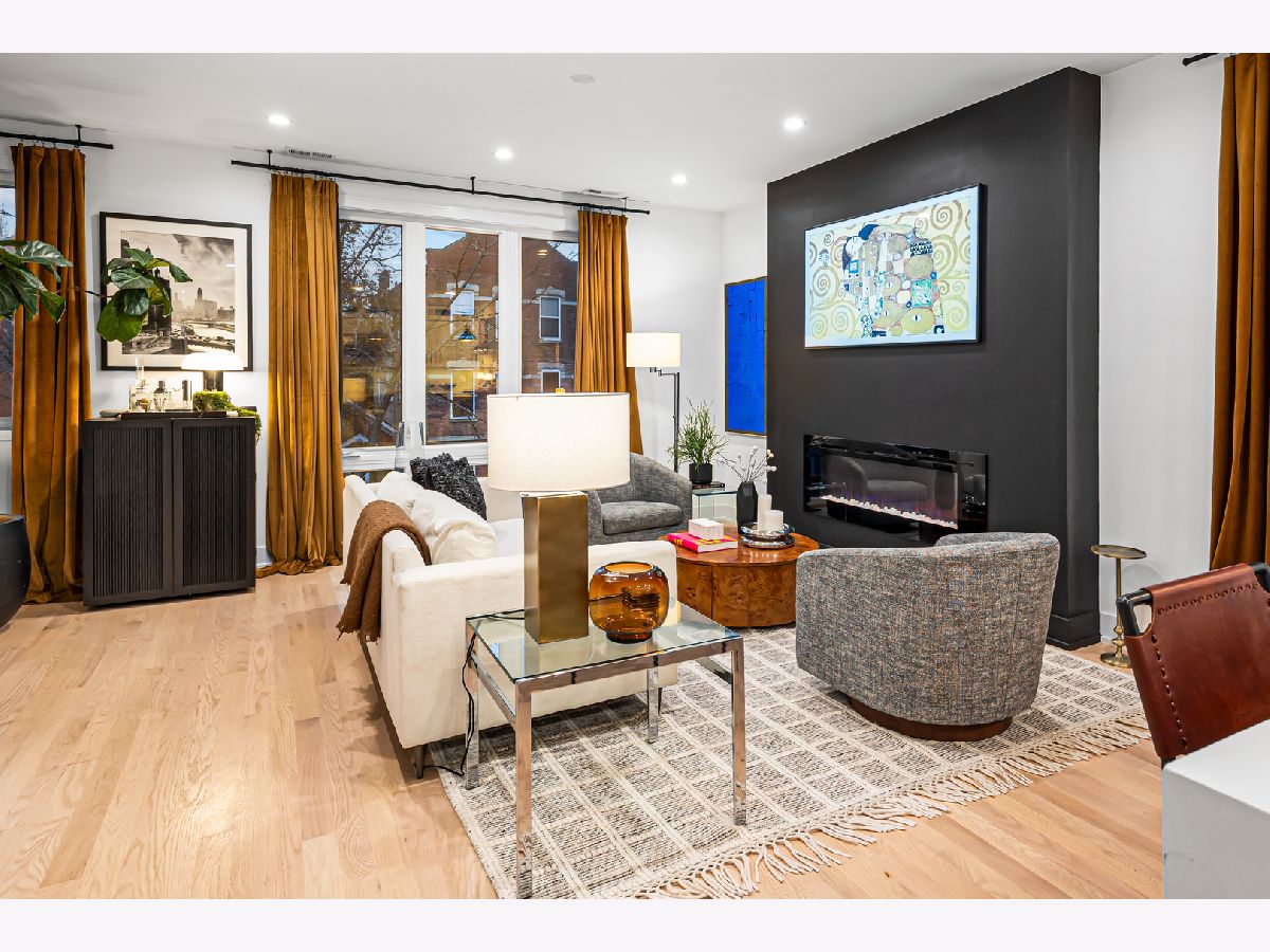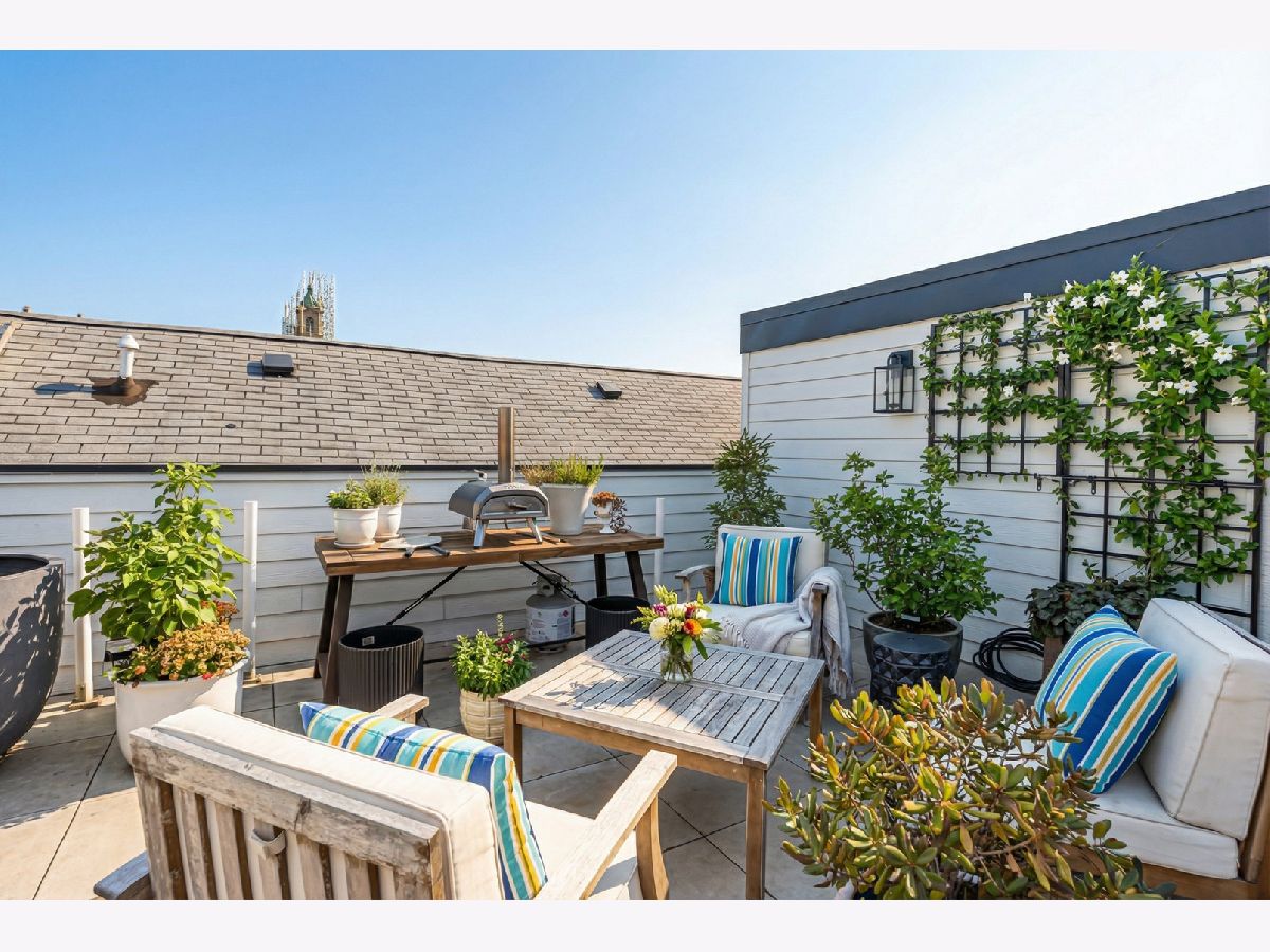 Penthouse living in the heart of Pilsen-where thoughtful designer updates meet private rooftop skyline views. Welcome to 1738 W 17th Street #3, a beautifully updated 3 bedroom, 2 bathroom penthouse designed for modern city living. The main living space is open, airy, and filled with natural light, creating an inviting atmosphere that feels both refined and comfortable. The living room is anchored by a decorative fireplace and elevated by curated designer details including custom lighting, shelving, and sophisticated style. Scandinavian oak hardwood floors run throughout, adding warmth and cohesion to the home's contemporary aesthetic. The kitchen has been upgraded with ceiling-height upper cabinetry, beautiful backsplash, waterfall-edge countertop, built-in wine cooler, and even a dry bar. Every finish was thoughtfully selected to blend functionality with high design and entertainment in mind. Upstairs, a sun-drenched bonus room offers incredible flexibility-ideal for a home office or even your Peloton. A glass door opens directly to the private rooftop deck, allowing light to pour in while creating seamless indoor-outdoor flow. The 1,000 SqFt private rooftop is a true showpiece, finished with porcelain tile flooring and equipped with both a gas line and water connection-ready for a custom outdoor kitchen, fire feature, or lush oasis. Enjoy sweeping skyline views while hosting friends or unwinding above the city. The primary suite delivers a spa-inspired retreat with a statement waterfall showerhead and multiple sprays, while designer ceiling fans throughout the home add comfort and style. Complete with covered parking, this penthouse offers turnkey finishes, exceptional outdoor space, and elevated living in one of Chicago's most vibrant neighborhoods. Commuting is effortless. The Pink Line's 18th Street station and multiple bus routes are just a short walk away, placing the Loop within minutes. Metra access nearby provides an easy regional option, and the Illinois Medical District is just a quick ride away-ideal for healthcare and university professionals. Designer living, skyline views, and seamless city connectivity-all from one exceptional Pilsen address.