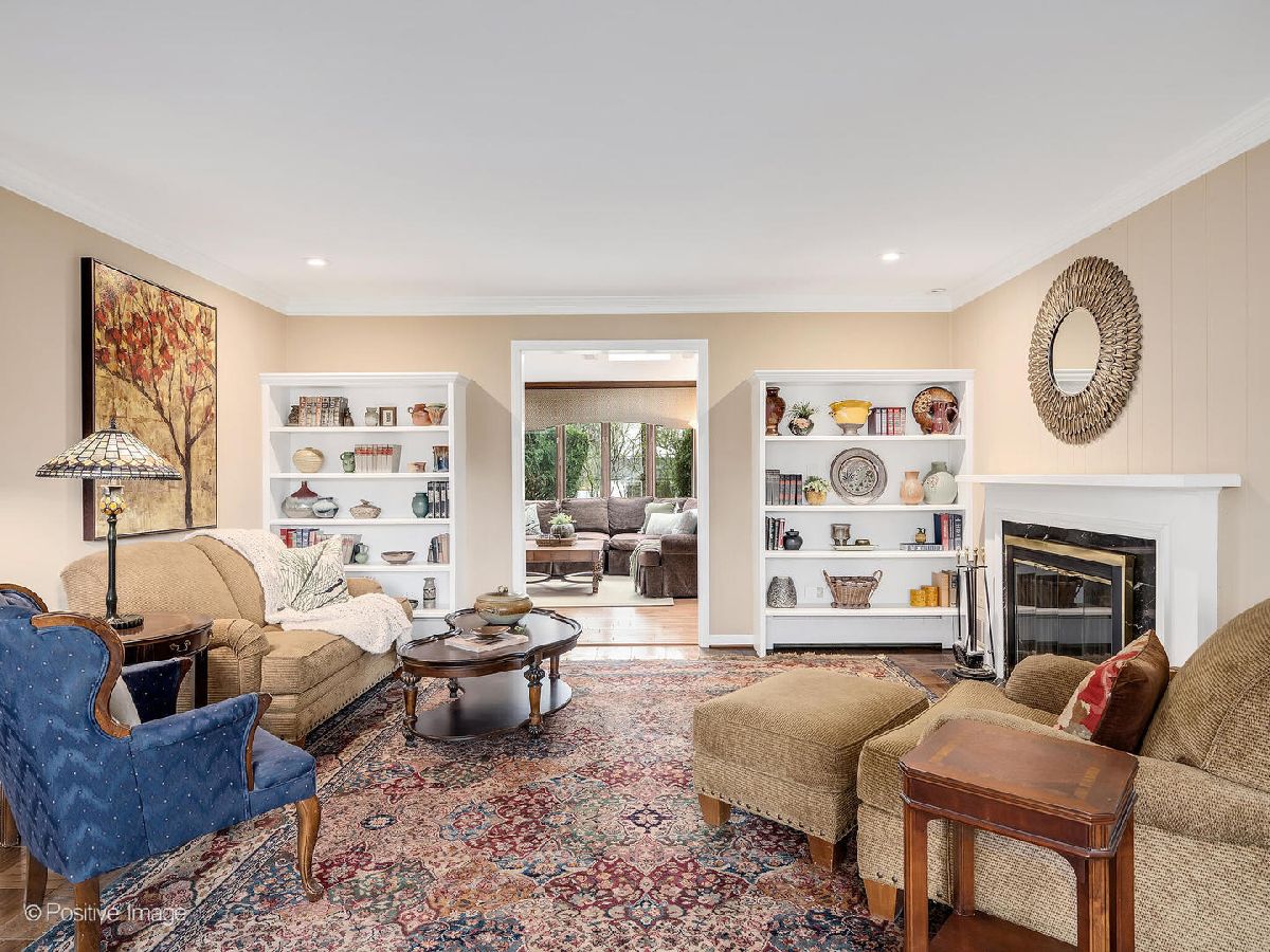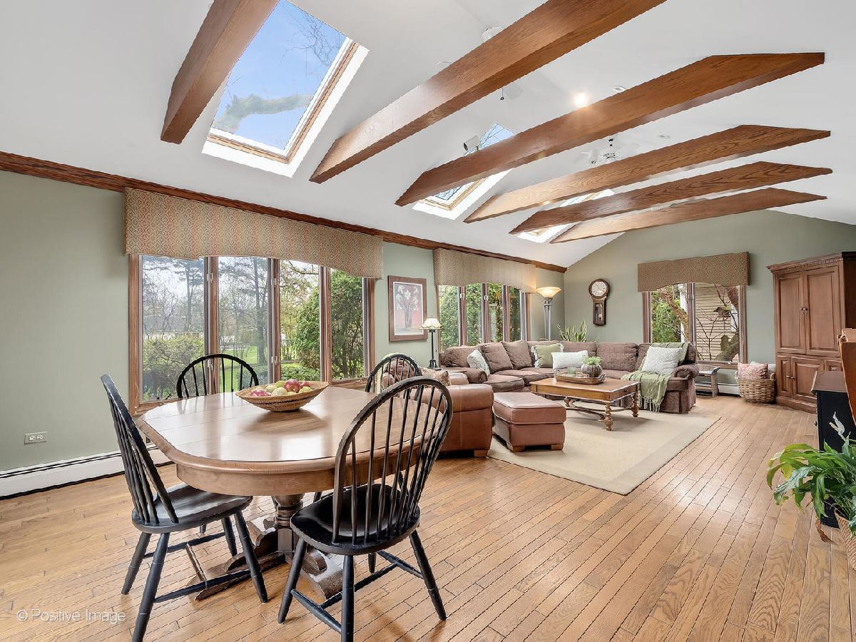 Sprawling Ranch on an expansive lot in La Grange Highlands! Set on an impressive 131' x 152' lot, this beautifully maintained four-bedroom ranch offers exceptional space, comfort, and versatility for everyday living and entertaining. A gracious foyer welcomes you into the formal living room, where a cozy wood-burning fireplace and custom built-in bookshelves create a warm, inviting atmosphere. The adjacent family room is seamlessly connected, while the open dining area-featuring elegant parquet oak flooring-provides the perfect setting for gatherings both large and small. The updated eat-in kitchen combines style and function, showcasing custom Brakur maple cabinetry, granite countertops, stainless steel appliances, and a raised breakfast bar ideal for casual dining. At the heart of the home, the expansive rear family room impresses with a vaulted ceiling, exposed beams, three skylights, and a wall of windows overlooking the beautifully landscaped backyard. This versatile space easily accommodates multiple seating and dining areas and includes a convenient built-in dry bar-perfect for entertaining. The main level features four generously sized bedrooms and two full bathrooms. A front bedroom, currently used as a home office, offers a charming built-in window bench and extensive shelving. The rear bedroom and adjacent bath present an excellent opportunity to create a private primary suite. The partially finished basement adds valuable living space with a large recreation room and egress window, along with a spacious laundry and storage area-offering great potential for future customization. Step outside to your private backyard retreat, complete with a fully fenced yard, shed, mature landscaping, and a large deck with built-in seating-ideal for outdoor entertaining. Additional highlights include a paver brick front walk, asphalt driveway and attached two-car garage. Conveniently located near higly-rated Higlands and Lyons Township School Districts, shopping, dining and major highways - this wonderful home combines space, charm and endless potential.