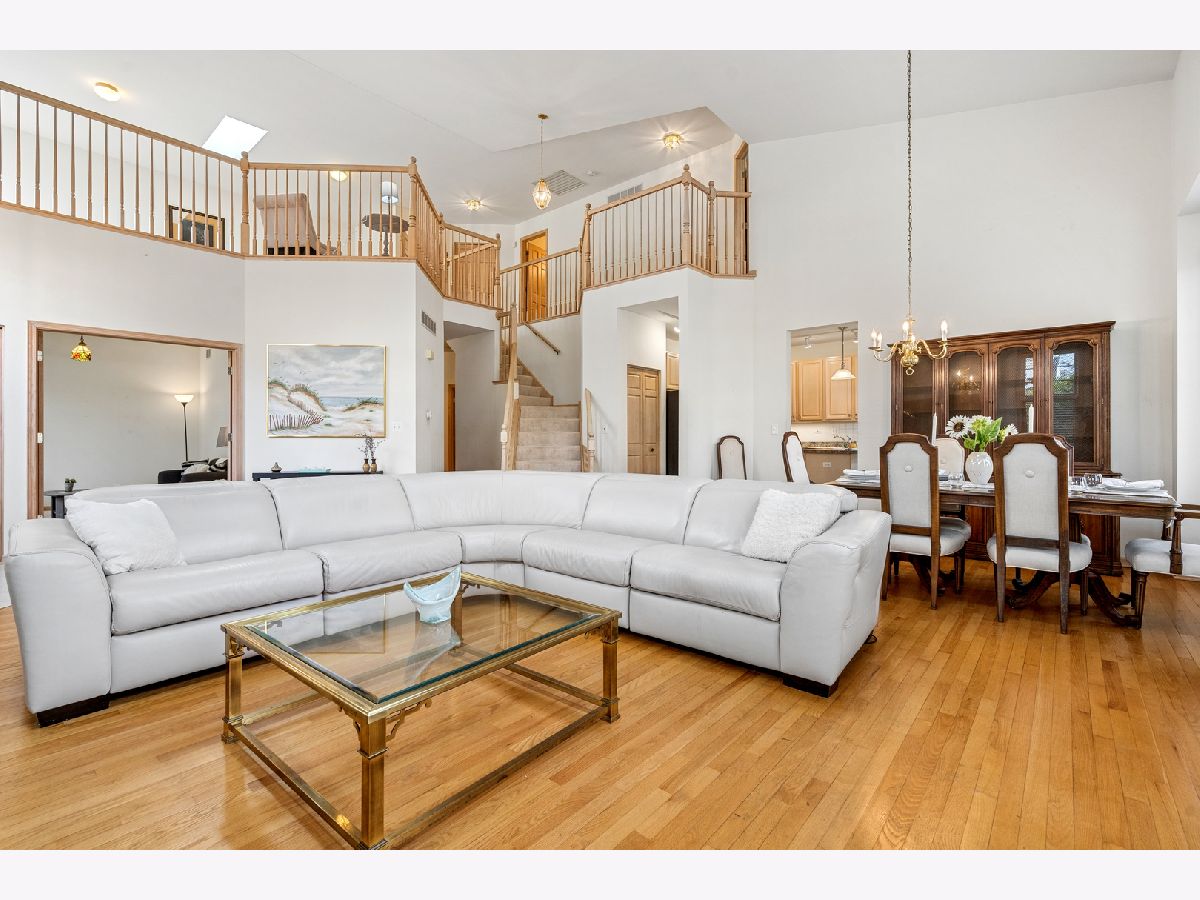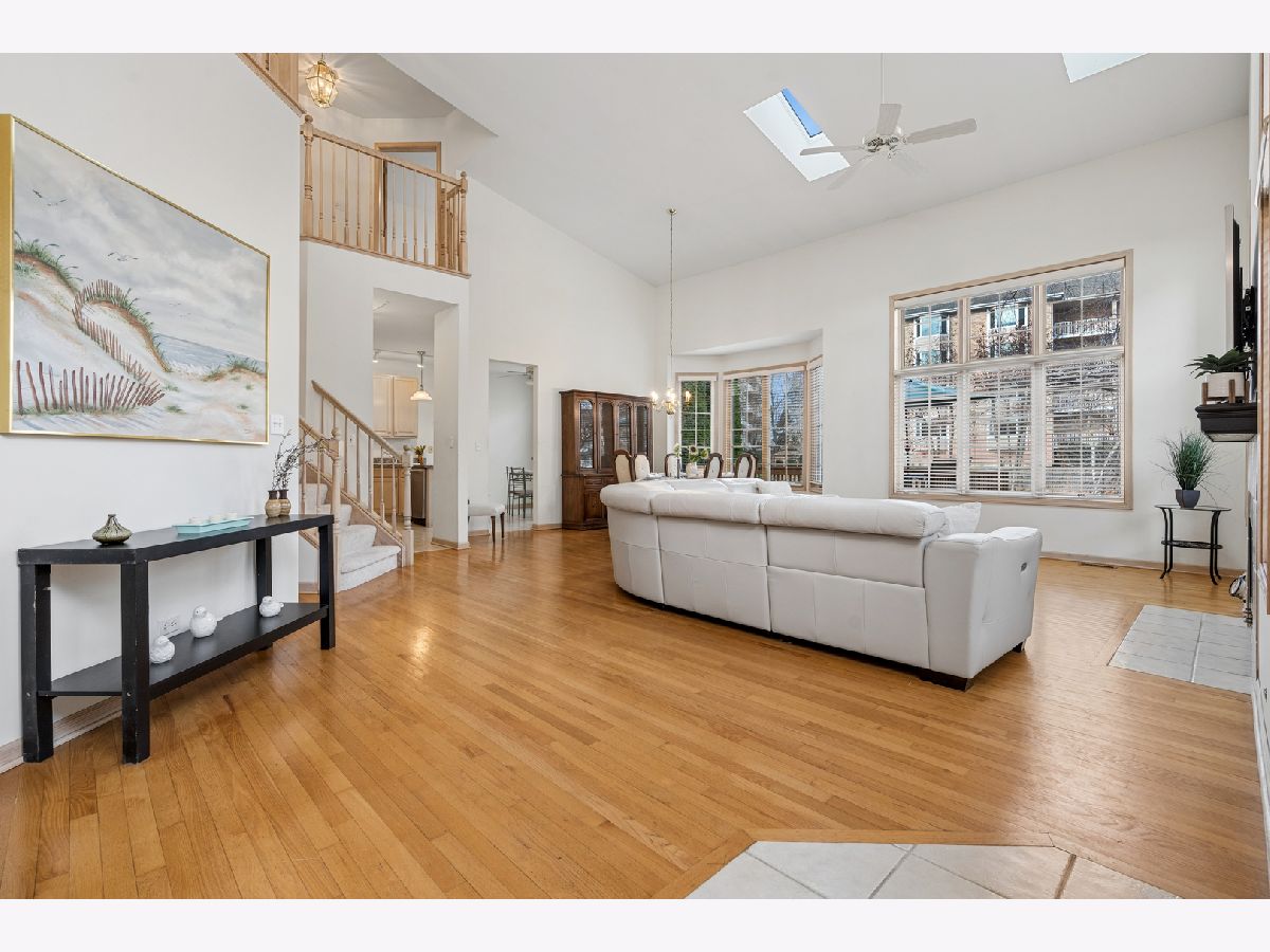 This 3 bedroom / 2 1/2 bath townhome features the living space you're looking for in Park Ridge Pointe. Step into the spacious living room / dining room featuring vaulted ceilings, skylights, hardwood floors, and an updated fireplace (2022). Head into the kitchen to find plenty of counter space, under cabinet lighting, a closet pantry, table space, and sliders out to your customized expanded deck (2015) overlooking to pond. Afternoon and late evening gatherings outside will bring you the relaxation and comfort you are looking for in your outdoor space. And don't forget to wave at your local swan residents, Maude and Fred. Back inside, you have a main floor primary bedroom, two walk-in-closets, a large en-suite with dual sinks, a sperate shower and soaking tub, as well as a main floor laundry, a 1/2 bath, access to your garage and (off of the living room) a den / office. Head upstairs to the loft over-looking to living room and imagine what this space can be for you. Upstairs includes two other larger bedrooms with walk-in-closets, and a full bath. The basement is massive in size, is plumbed for a full bath and waiting for your finishes. It also has an ejector pump, humidifier, hot water heater, 200 amp electric, and a sump pump with battery back-up. TV in Living room stays with the house. Appliances are newer in the last 6 - 8 years, and a garage door transmitter (2020). And when you aren't parked in your attached two-car garage, you are just minutes from the Dee Road Metra station, I-294, I-90, O'Hare Airport, and uptown Park Ridge - home to countless dining, shopping, and entertainment options-this property delivers the ultimate in convenience. A rare find combining size, style, and unbeatable amenities-don't miss this incredible opportunity!