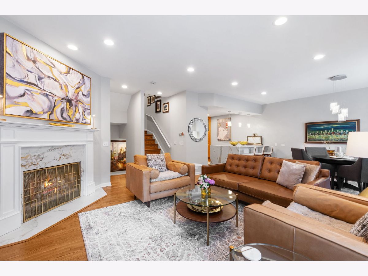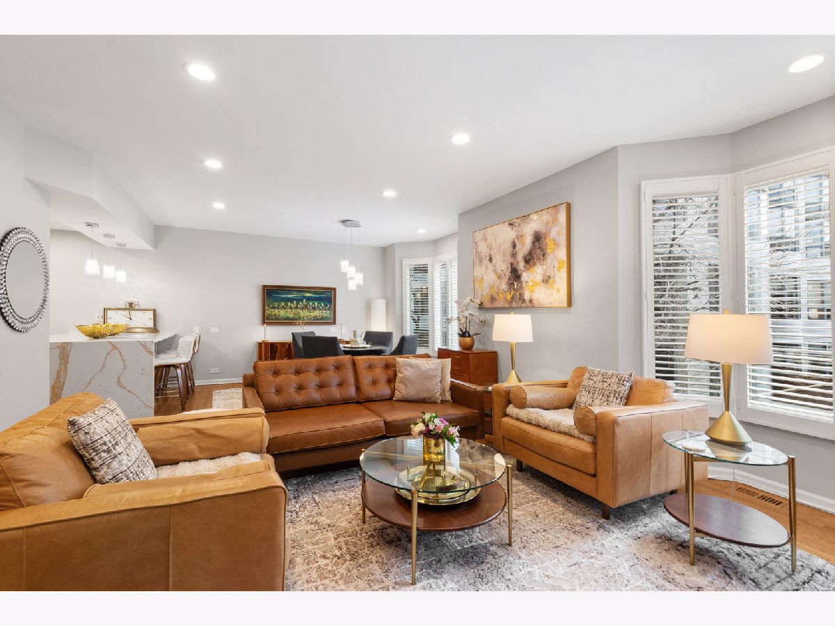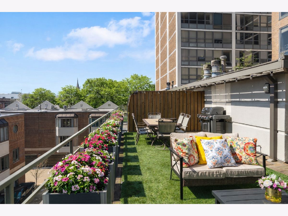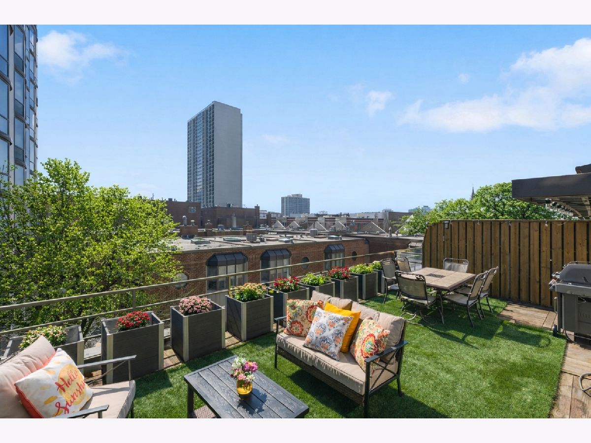 Stunning, sun-drenched townhome in a premier East Lincoln Park / Old Town location, offering an exceptional renovation (see Upgrades & Specifications under additional information for a list of all updates) and a spectacular private roof terrace with skyline views. Thoughtfully redesigned with high-end finishes throughout, this sophisticated home showcases sleek hardwood flooring and a beautifully appointed chef's kitchen featuring a counter-depth Sub-Zero refrigerator, 36" Wolf dual fuel range, professional hood, workstation sink, sleek quartz countertops, marble backsplash, and custom soft-close cabinetry with abundant storage. An expansive peninsula with an integrated microwave drawer provides generous seating and seamless functionality. The top level offers a second kitchen that opens directly to the showstopping roof terrace, complete with synthetic turf, lush seasonal planters, and gas, water, and electric, creating the ultimate indoor-outdoor entertaining experience. The spacious, light-filled primary suite features a south-facing bay window, easily accommodates a king-sized bed with additional seating, and includes a large walk-in closet and a spa-inspired bath with dual vanity, walk-in shower with bench, and excellent storage. A well-proportioned second bedroom also enjoys southern exposure and a custom-outfitted closet. The main level offers a gracious entry, guest bedroom, full bath, and a large laundry room with side-by-side washer/dryer and ample storage, along with direct access to the attached heated garage with a storage closet. Set within an impeccably maintained gated community with a pool and sundeck, and located just steps from Lincoln Park and the lakefront, and directly across from the Lincoln Park Green City Farmers Market, this home is also moments from Old Town's vibrant dining, shopping, and cafe scene. A truly turnkey residence in an unbeatable A+ location. The monthly HOA breakdown - Total - $1,295.67 includes $680.32 for operating assessment, $513.08 for reserve contribution, and $101.87 for TV/internet. Currently $488,066.05 in the reserve account. The HOA maintains aa 30 year reserve study, employs 2 full-time engineers, and there has never been a special assessment in the life of the association.