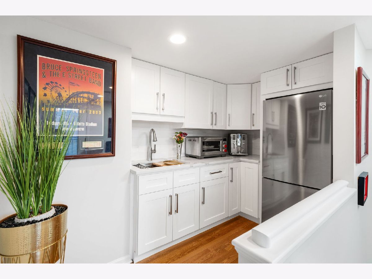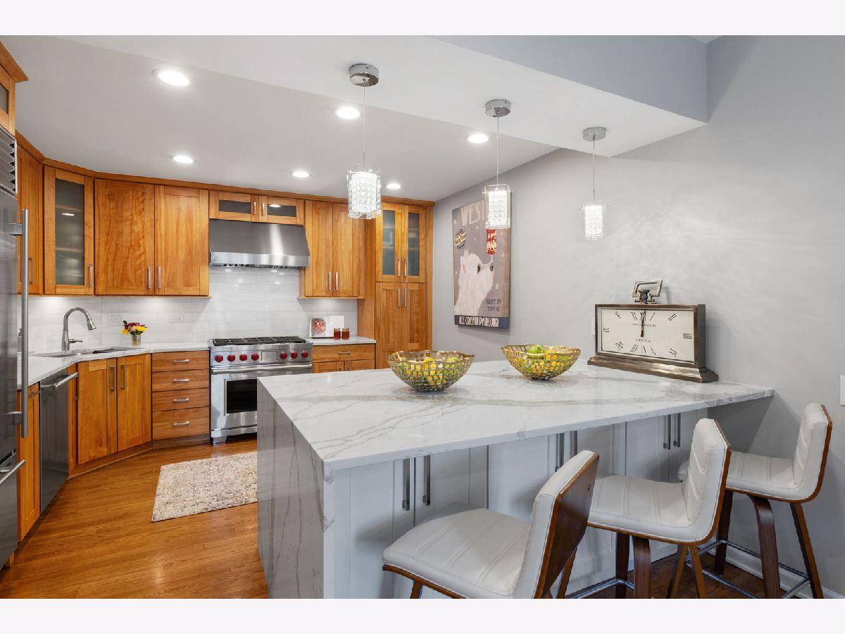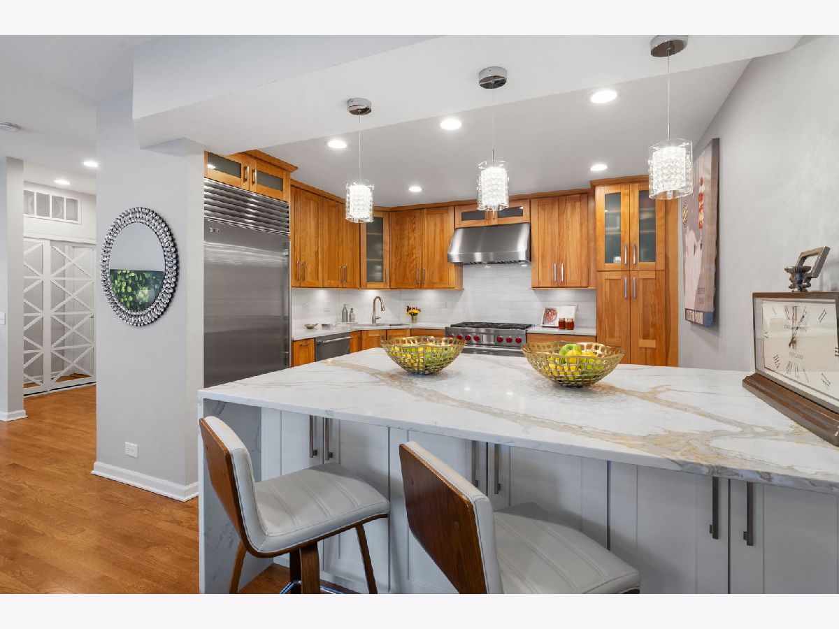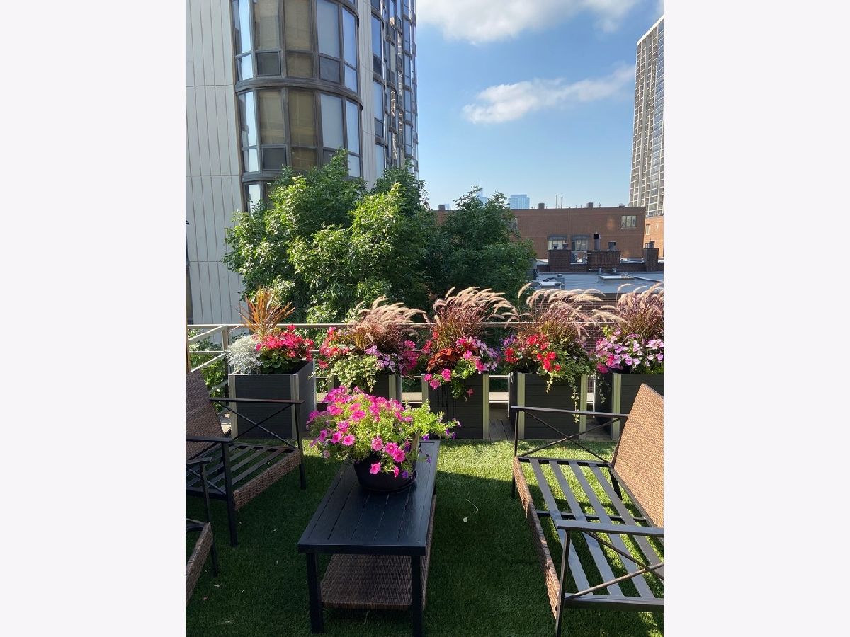 Stunning, sun-drenched townhome in a premier East Lincoln Park / Old Town location, offering an exceptional renovation (see Upgrades & Specifications under additional information for a list of all updates) and a spectacular private roof terrace with skyline views. Thoughtfully redesigned with high-end finishes throughout, this sophisticated home showcases sleek hardwood flooring and a beautifully appointed chef's kitchen featuring a counter-depth Sub-Zero refrigerator, 36" Wolf dual fuel range, professional hood, workstation sink, sleek quartz countertops, marble backsplash, and custom soft-close cabinetry with abundant storage. An expansive peninsula with an integrated microwave drawer provides generous seating and seamless functionality. The top level offers a second kitchen that opens directly to the showstopping roof terrace, complete with synthetic turf, lush seasonal planters, and gas, water, and electric, creating the ultimate indoor-outdoor entertaining experience. The spacious, light-filled primary suite features a south-facing bay window, easily accommodates a king-sized bed with additional seating, and includes a large walk-in closet and a spa-inspired bath with dual vanity, walk-in shower with bench, and excellent storage. A well-proportioned second bedroom also enjoys southern exposure and a custom-outfitted closet. The main level offers a gracious entry, guest bedroom, full bath, and a large laundry room with side-by-side washer/dryer and ample storage, along with direct access to the attached heated garage with a storage closet. Set within an impeccably maintained gated community with a pool and sundeck, and located just steps from Lincoln Park and the lakefront, and directly across from the Lincoln Park Green City Farmers Market, this home is also moments from Old Town's vibrant dining, shopping, and cafe scene. A truly turnkey residence in an unbeatable A+ location. The monthly HOA breakdown - Total - $1,295.67 includes $680.32 for operating assessment, $513.08 for reserve contribution, and $101.87 for TV/internet. Currently $488,066.05 in the reserve account. The HOA maintains aa 30 year reserve study, employs 2 full-time engineers, and there has never been a special assessment in the life of the association.