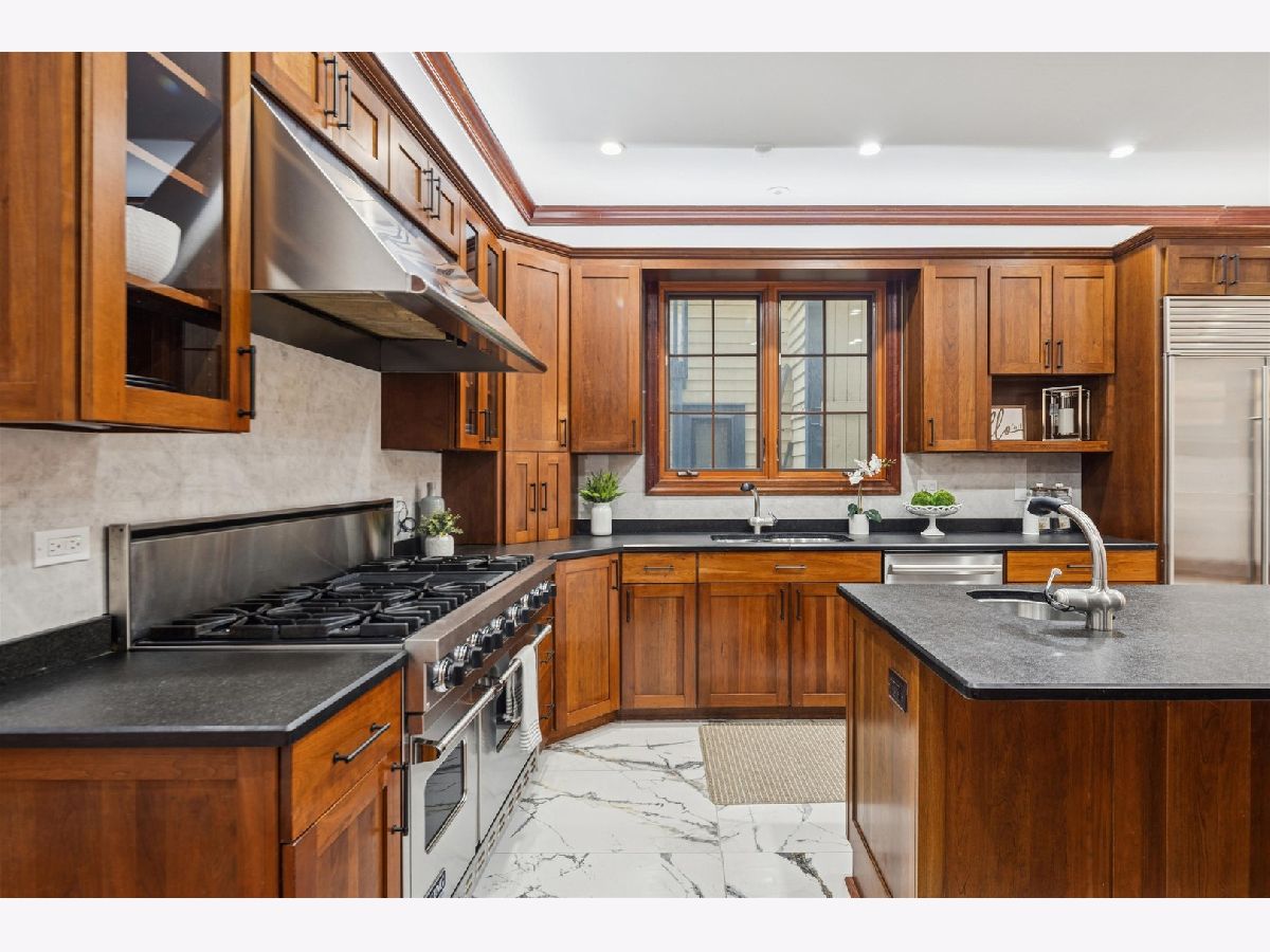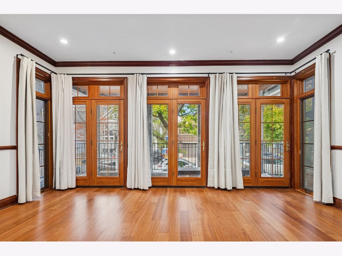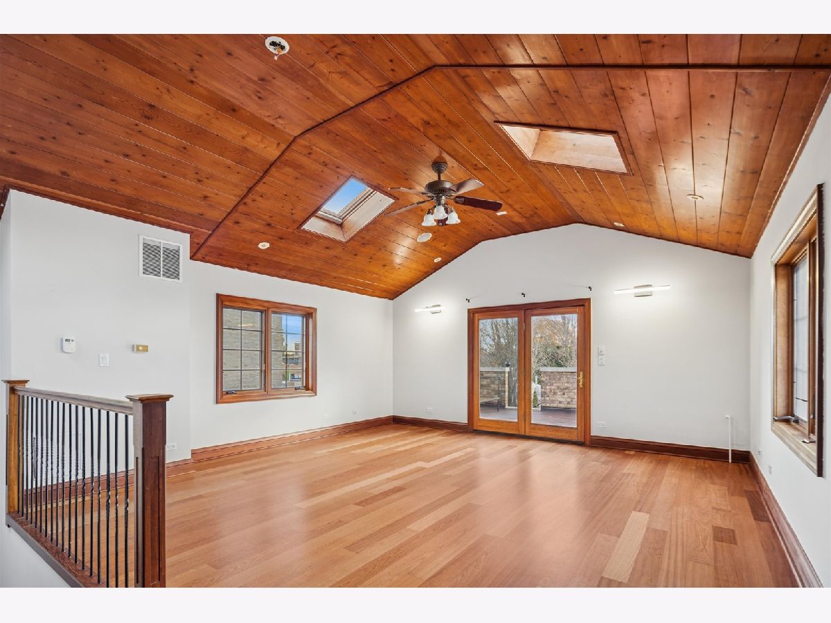 Welcome to this freshly updated stunning single-family home! Located in the prime Roscoe Village /Lakeview/Southport Corridor area. This solid brick and limestone residence features custom craftsmanship, abundant natural light, and an exceptional open floor plan designed for modern living and entertaining. Step inside to radiant heated floors, 9ft+ ceilings and solid American Cherry hardwood throughout, creating a warm and inviting atmosphere. The bright and spacious living room flows into the chef's kitchen and open concept dining area, anchored by a limestone fireplace and oversized French doors leading to a large private patio. This amazing kitchen is equipped with a Viking range, SubZero refrigerator and freezer, Dacor warming drawer, Black Pearl granite leathered countertops, solid mahogany cabinetry, and a generous pantry.The second floor offers a luxurious primary suite with dramatic 12' cathedral ceilings, skylights, a private balcony, and a spa-style bath featuring dual vanities, jet tub, and separate shower. Two additional well-sized bedrooms and a full bath complete this level. The third floor provides a flexible multi-use space-ideal for an office, family room, exercise room, guest suite, or playroom-featuring skylights, high-end wood ceilings, and its own balcony with city views.The fully finished lower level includes a large recreation/media room, gym or play area, fourth bedroom, slate-tiled hallway, full bath, and a cedar sauna. Ample storage is available throughout the home. Outdoor living includes a welcoming front porch, three balconies, a brick paver patio, and a winding exterior staircase connecting each level-offering numerous options for enjoying your own private urban retreat. A rare find is the finished living area above the 2-car garage, complete with wet bar and full bathroom, providing excellent flexibility for guests, an office, studio, or extended-stay accommodations. Home is completely wired for Internet, Media, Speakers, & Alarm System. Just minutes from the Paulina Brown Line, top-rated neighborhood schools, and the shopping, dining, and amenities of Southport Corridor and Roscoe Village, this home offers exceptional space, quality finishes, and outstanding walkability in one of Chicago's most desirable North Side locations.