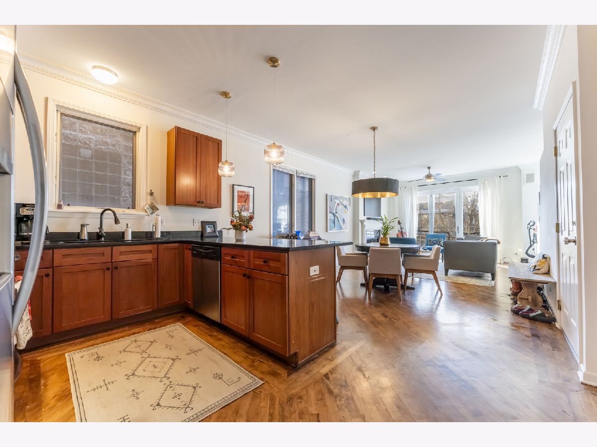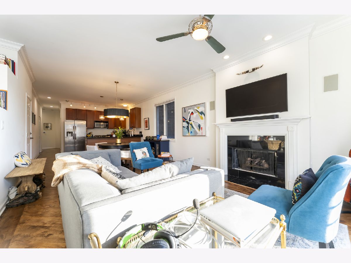 The location of this 2BD/2BA condo in Bucktown is absolutely phenomenal. Just steps from the Western Blue Line and direct access to the 606 Trail, it's situated in the heart of one of Chicago's most walkable and desirable neighborhoods. The unit features an open-concept living and dining area with refinished hardwood floors and a newer installed gas fireplace. Kitchen includes granite countertops and stainless steel appliances. Primary bedroom offers an en-suite bathroom with jacuzzi tub, separate shower, and double vanity. The second bathroom was fully renovated in 2024. Additional features include in unit laundry, a front Juliet balcony, private back deck, and built-in sound wiring. The HVAC system was totally replaced in 2022. One garage parking spot is included in the price.