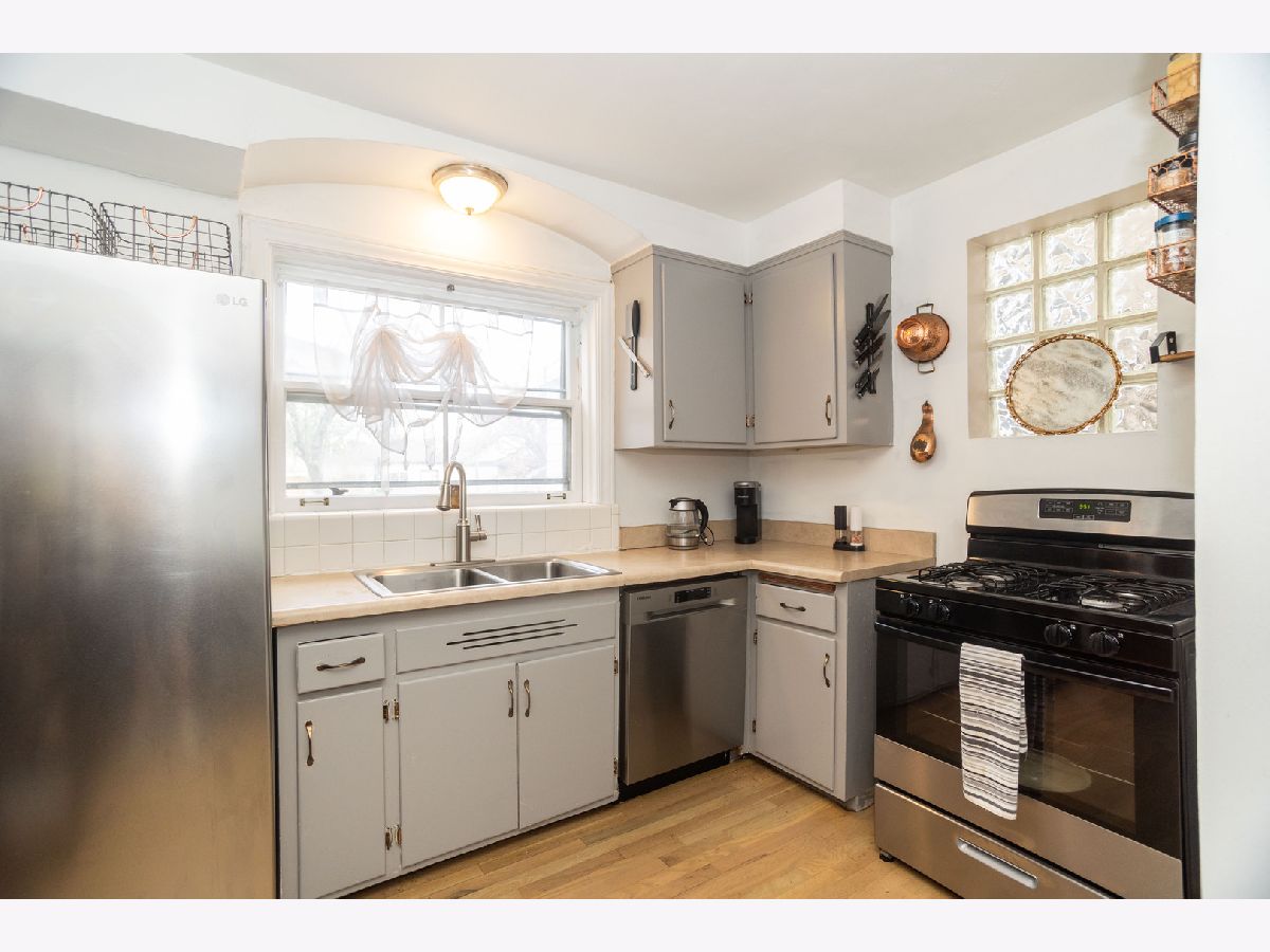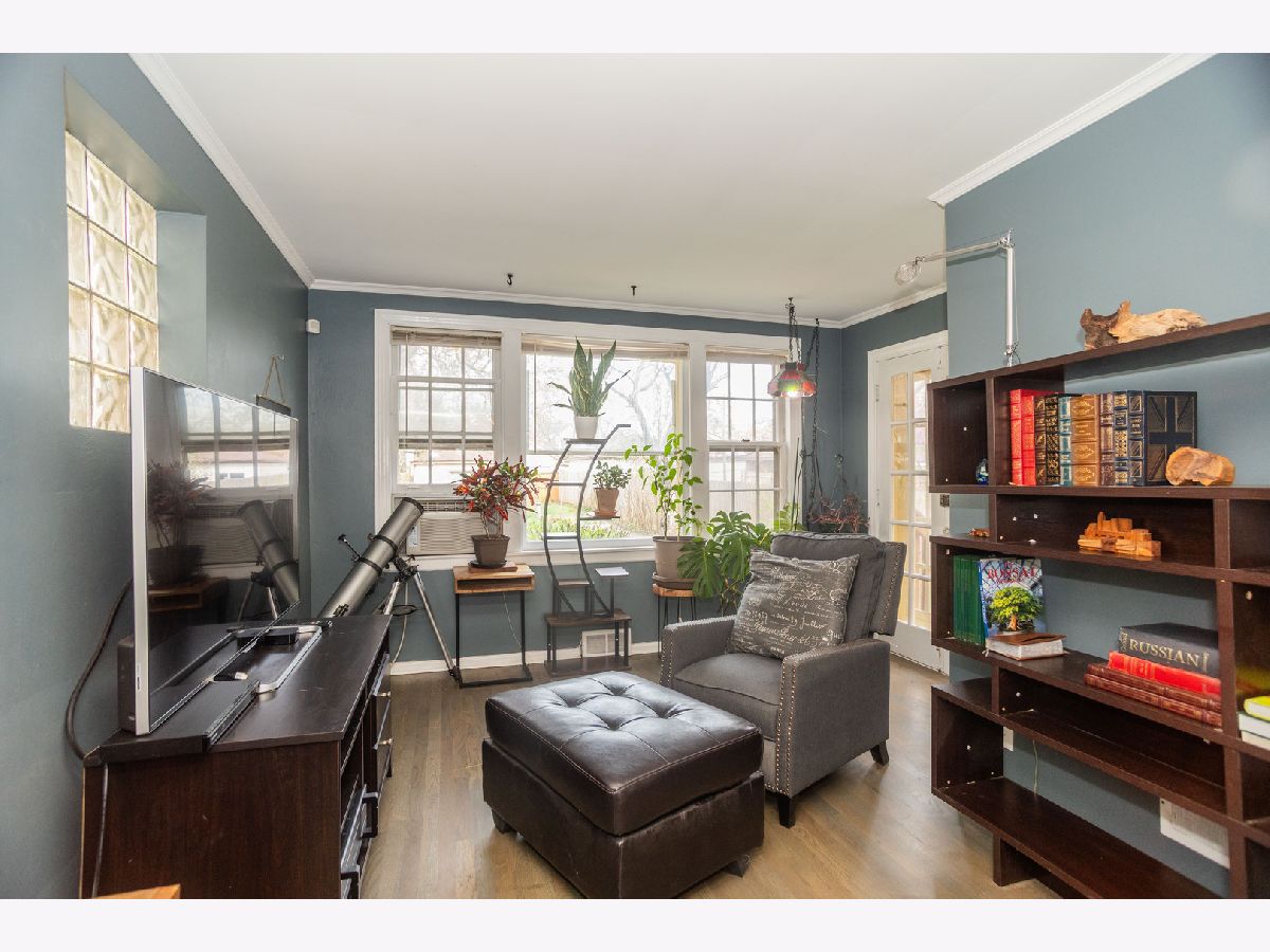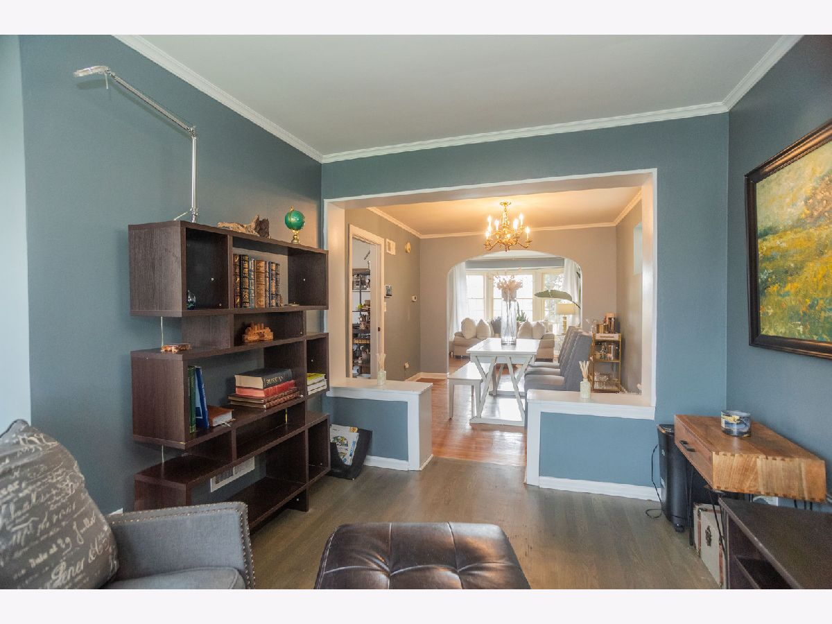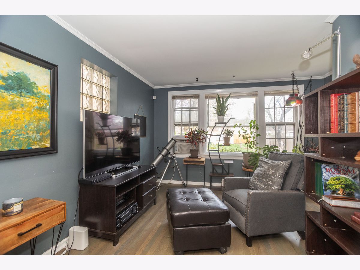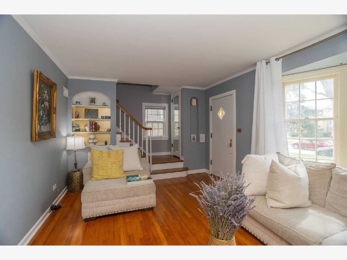 This Brick Georgian sits on a huge park like (30x 177) lot in the heart of the beautiful Galewood neighborhood. It features 2 bedrooms and full updated bathroom, hardwood floors on the 2nd level. The main floor has open layout comprised of the living room, formal dining room and family room. The living room has a west view bay window just perfect for your plants or even a pet bed and an original arched built in bookshelf and hardwood floors completes this room. Formal dining has hardwood floors and natural light from glass block windows yet provides privacy. The bonus room has east windows and can be used as a family room, open office or plant haven and just tucked off the side is a convenient 1/2 bath which is a nice surprise for a Georgian! The bright east facing kitchen with all appliances included. The unfinished basement an open canvas for the new owner to finish as desired. The yard has a cherry and magnolia trees, daffodils, 2 kinds of roses one is a David Austen, irises, forsythias, peonies, dogwoods and yet there plenty of room to expand the garden. One car garage. Approx dates: Roof & tuckpointing 2011, refrig 2018, Kitchen & family room floors 2020, Bath remodel 2023, hot water tank & AC unit primary bed 2024. Home is being sold as-is.