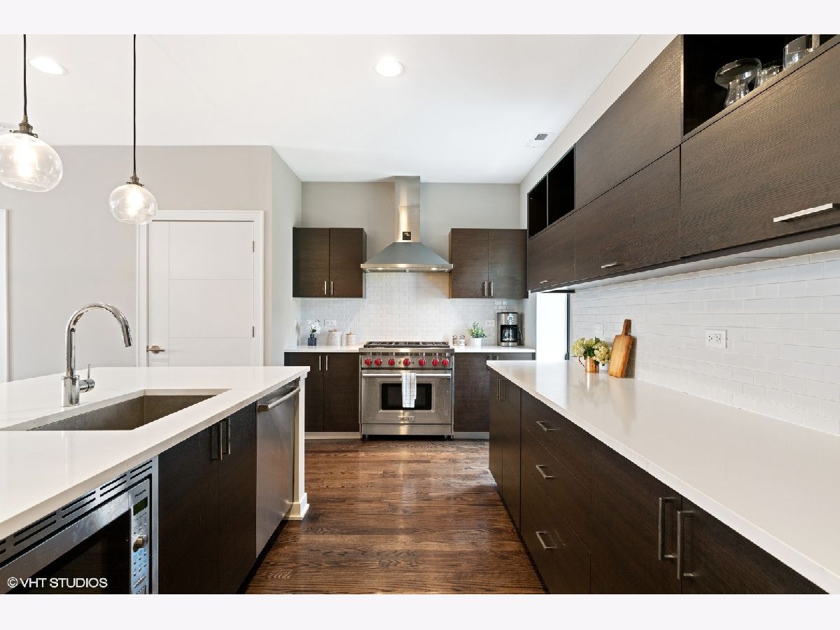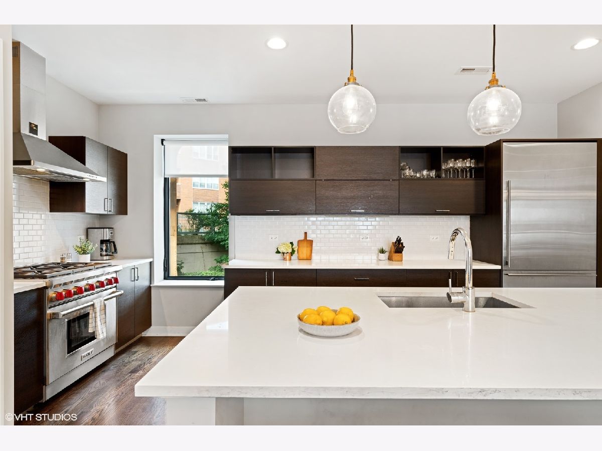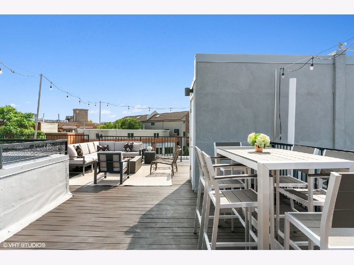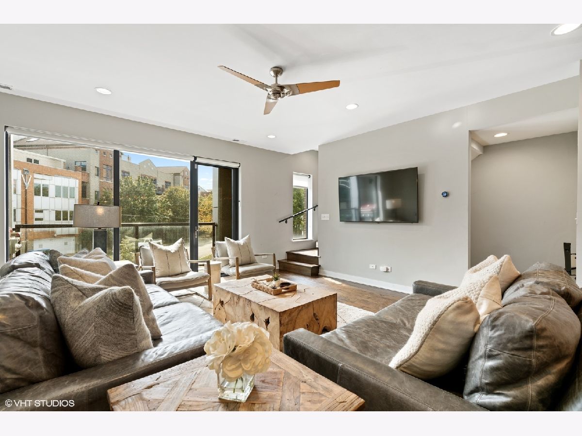 High end upgraded townhome in Bucktown at the "Row"! 3 level townhome with 2 car attached garage with electric carport and THREE great private outdoor spaces. All 3 bedrooms have en-suite baths, and upgraded powder room on the second level with new lighting and wallpaper. Large open kitchen with big island, and high-end stainless steel Wolf and Sub-zero appliances. Space for a large dining table, large living room with a balcony off the living room perfect for grilling. Floor to ceiling windows with electric window shades in the living room and main bedroom. Beautiful, dark, hardwood floors throughout. Big private rooftop with seating, natural gas hookup, lights, and water and fire pit. First floor has a full bedroom, full bath, large closet and entryway with extra storage closet. All closets have been customized for optimal space. Gated front yard perfect for furry friends with water. Mere feet from the 606, close to two El stops, and conveniently located at the border of Bucktown and Wicker Park. Currently tenant occupied through the end of the month. HOA includes internet, snow removal. Floor plan under additional information. No specials, professionally managed, short-term rentals are not allowed (6-month minimum lease term required).