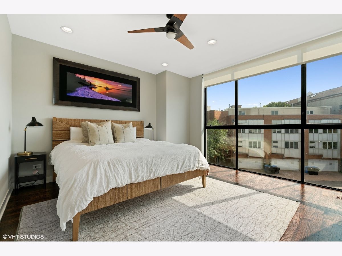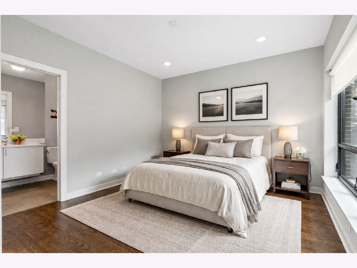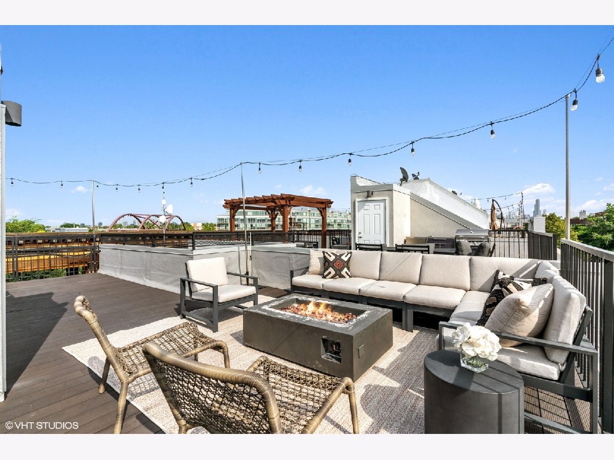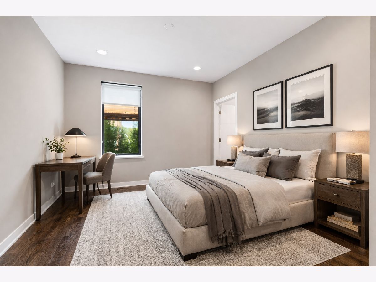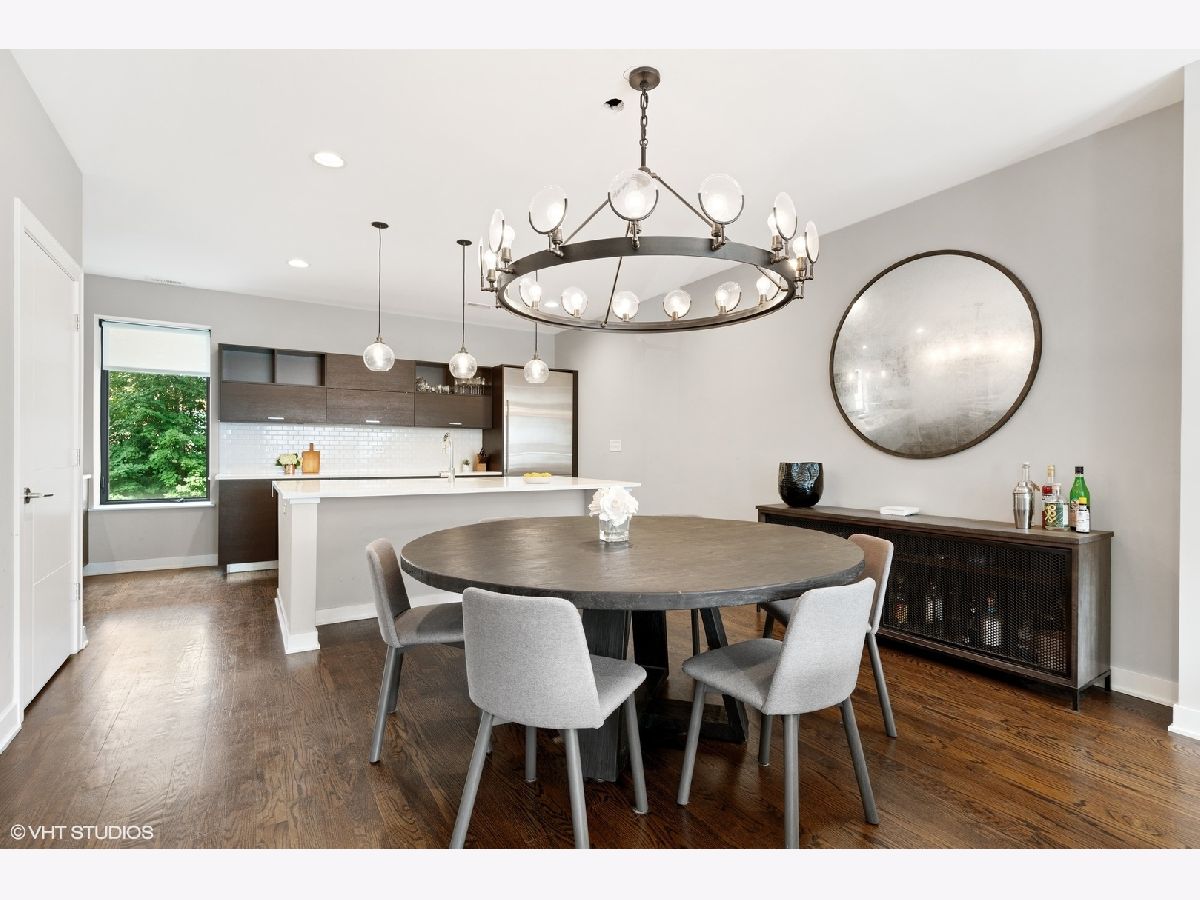 High end upgraded townhome in Bucktown at the "Row"! 3 level townhome with 2 car attached garage with electric carport and THREE great private outdoor spaces. All 3 bedrooms have en-suite baths, and upgraded powder room on the second level with new lighting and wallpaper. Large open kitchen with big island, and high-end stainless steel Wolf and Sub-zero appliances. Space for a large dining table, large living room with a balcony off the living room perfect for grilling. Floor to ceiling windows with electric window shades in the living room and main bedroom. Beautiful, dark, hardwood floors throughout. Big private rooftop with seating, natural gas hookup, lights, and water and fire pit. First floor has a full bedroom, full bath, large closet and entryway with extra storage closet. All closets have been customized for optimal space. Gated front yard perfect for furry friends with water. Mere feet from the 606, close to two El stops, and conveniently located at the border of Bucktown and Wicker Park. Currently tenant occupied through the end of the month. HOA includes internet, snow removal. Floor plan under additional information. No specials, professionally managed, short-term rentals are not allowed (6-month minimum lease term required).