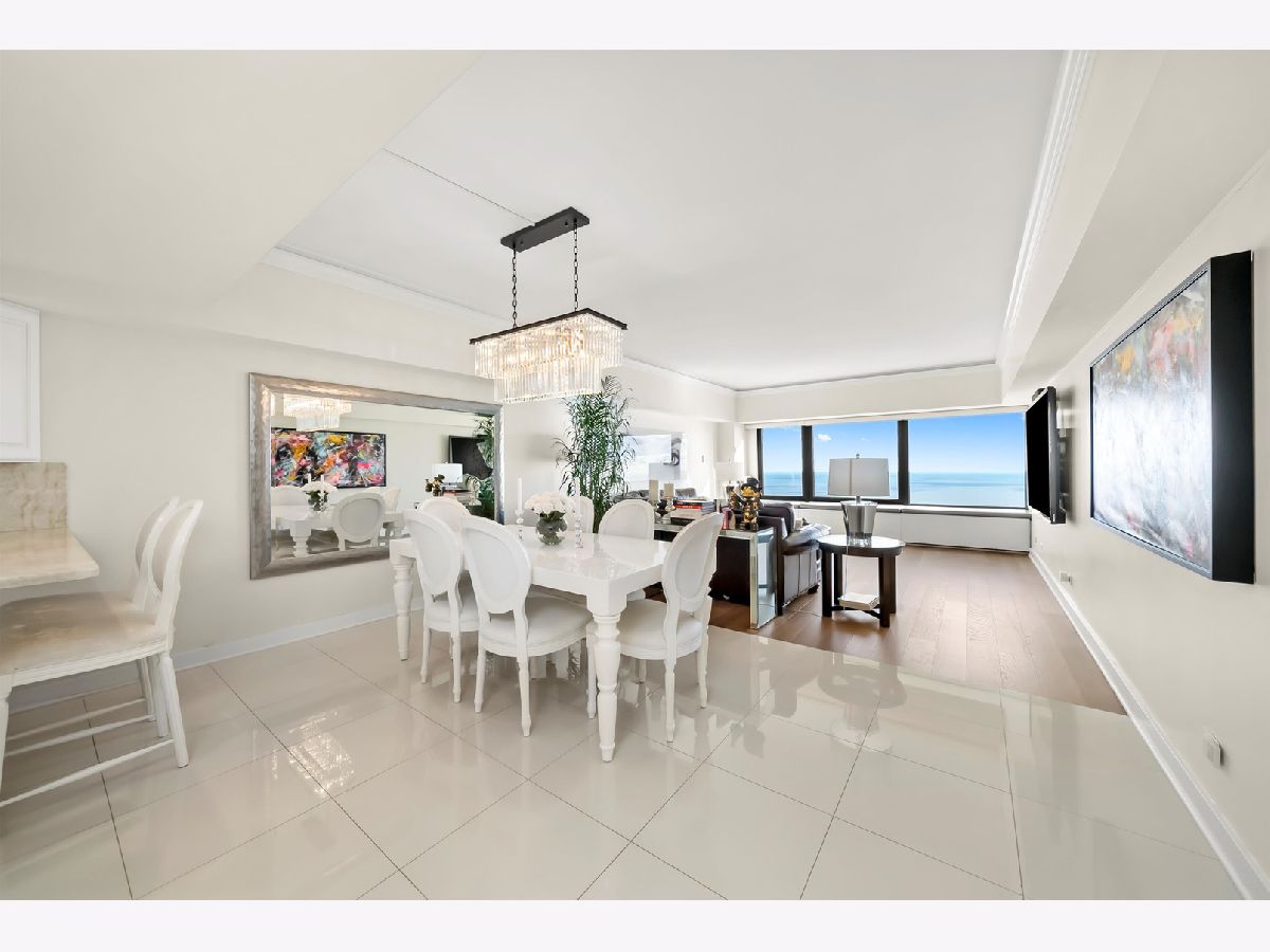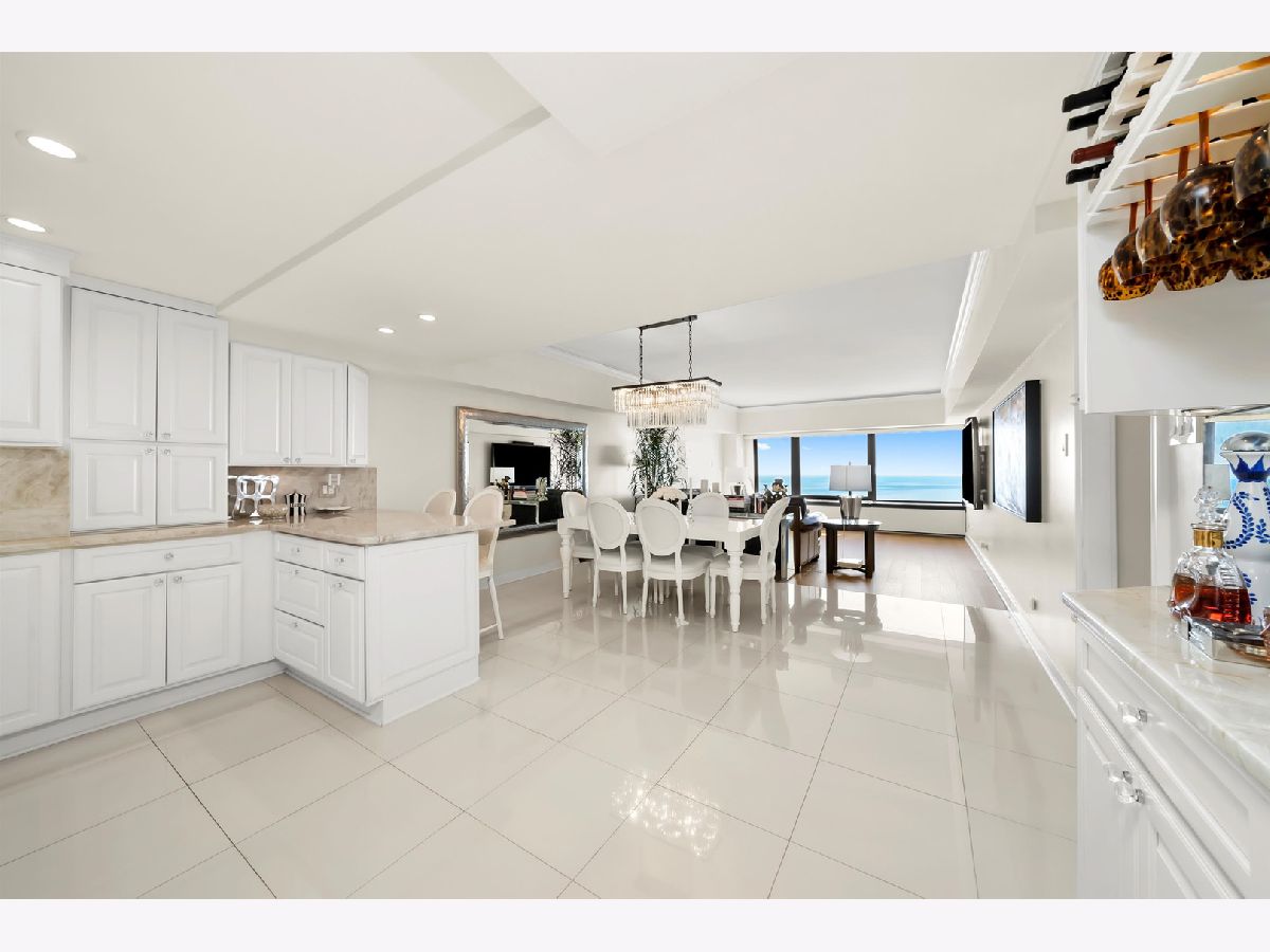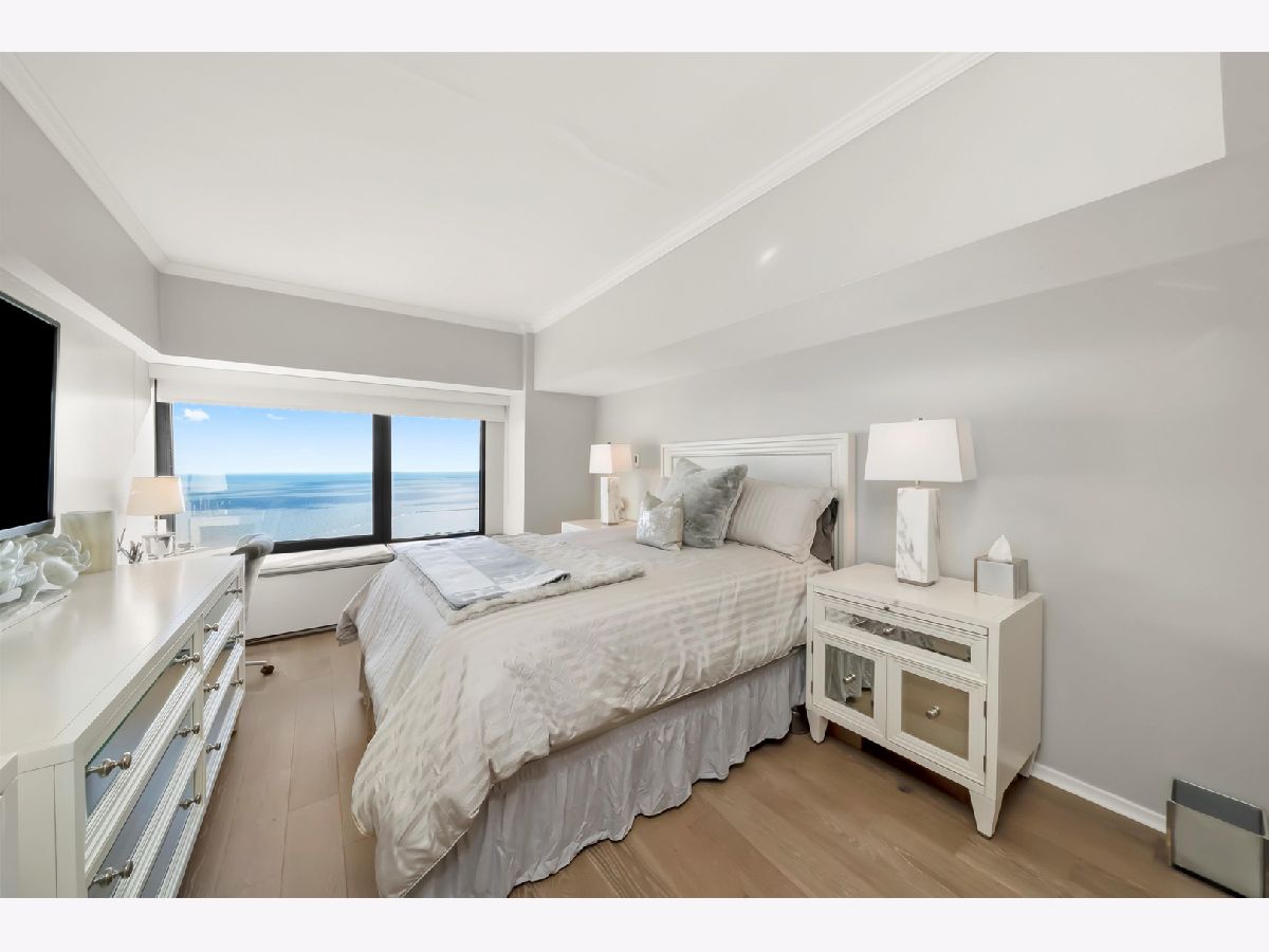 Experience dazzling, unobstructed views of Lake Michigan and Lake Shore Drive from this completely remodeled 2-bedroom, 2-bathroom residence in the ICONIC John Hancock Building, with water views from every room! This stunning home features an exquisite open kitchen with top-of-the-line appliances, including a Liebherr refrigerator, brilliant white custom cabinetry, and a sleek breakfast bar. A dry bar with glass-front and under-counter cabinets adds both elegance and functionality. The main living areas showcase white porcelain flooring, complementing the beautifully appointed dining and living spaces. Both bathrooms are luxuriously designed for comfort and pampering, while the custom organized closets, including a spacious walk-in, provide excellent storage. Residents of the Hancock enjoy world-class amenities, including a stunning indoor pool and a renovated fitness center on the 44th floor with breathtaking city views, 24-hour door staff, onsite management and maintenance. full-service grocery store, USPS office, and receiving room, Starbucks, The Cheesecake Factory, Benihana, & more! Leased parking available. Perfectly located just steps from the lakefront, Oak Street Beach, and the Magnificent Mile, this residence offers easy access to Chicago's finest shopping, dining, and cultural attractions. Newly remodeled with designer finishes and premium appliances, this home offers the best of luxury living with panoramic lake and city views - truly a property to treasure for years to come. Take a 3D Tour - click the 3D button and walk around!