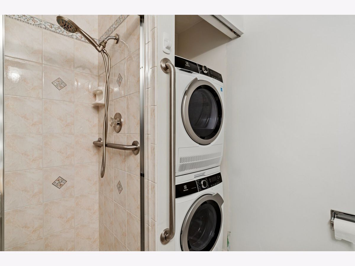 Welcome to this bright and beautifully maintained 2-bedroom, 2-bath condo in the highly sought-after Cambridge on the Lake community. This inviting home features gorgeous vinyl plank flooring throughout and a spacious, light-filled living and dining area, perfect for everyday living and entertaining. The versatile second bedroom offers doors that open to the living room, making it ideal as a library/den or home office, while still easily converting to a private second bedroom. The cook's kitchen includes stainless steel appliances, gas stove, pantry cabinet, and an additional side cabinet that provides extra counter space and storage, along with a convenient eating area. The dining room flows seamlessly into the expansive main living space, offering flexible options for hosting and entertaining. The generously sized primary suite features a private ensuite bath and a dressing area with mirrored closets. The hall bathroom offers a walk-in shower with grab bars and includes in-unit laundry with a new 2025 Electrolux stackable washer and dryer, along with a new toilet. Additional highlights include new lighting fixtures, indoor storage unit #45 (located at the end of the hall, marked "storage"), and a heated indoor garage parking space #45 conveniently located off the entrance lobby. On the 1st floor is a stylish gathering room for meetings, parties & games overlooking the water. Enjoy resort-style living with beautifully maintained grounds, scenic walking paths around the lake, a park and an expansive clubhouse featuring an indoor pool, exercise room, large party room accommodating up to 100 guests, full-size kitchen, two pool tables, and more. Heat, gas, and water are included in the assessment. Ideally located near shopping, dining, transportation, schools, and expressways, this home offers comfort, convenience, and effortless living.