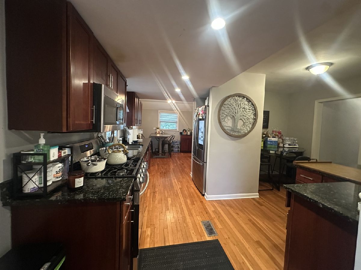 Welcome to this beautifully maintained, spacious 4-bedroom, 2 full bathroom home, perfectly positioned on one of Homewood's most sought-after blocks just steps from downtown, Metra, parks, daycare, and top-rated schools. This home offers a seamless blend of timeless character and modern updates. The inviting living room features a wood-burning fireplace, while the kitchen is appointed with granite countertops and stainless steel appliances. The spacious primary bedroom includes a walk-in closet, offering both comfort and functionality. The fully finished basement with blacked-out ceiling adds exceptional living space, featuring LVT flooring, a large family room, a dedicated workout room with a barn door and updated lighting, a built-in bar, and ample storage. The upgraded laundry room includes cabinetry, countertops, a utility tub, and an updated staircase. Enjoy outdoor living with a newer deck featuring an electronic awning. The fully vinyl fenced backyard, all set on a little over a quarter acre of land, is designed for both relaxation and entertaining, complete with a custom stone patio with built-in wall seating, mature landscaping with privacy trees, rose and hydrangea bushes, and dual access points. Updates include: Newer siding, furnace, HVAC, washer/dryer; roof (2020); deck (2020); sump pump drainage system (2020) with water-powered backup (2020); Samsung refrigerator (2021); deck awning (2022); asphalt driveway (2022); in-range microwave (2023); basement remodeled (2025); landscaping (2025); fence (2025); stove (2025). Property being sold As-Is. Seller prefers conventional financing. Home warranty will be provided.