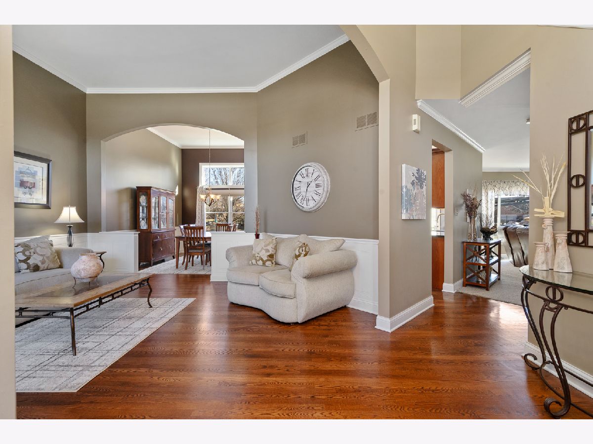 MULTIPLE OFFERS RECEIVED. HIGHEST & BEST REQUESTED BY 9AM MONDAY, JANUARY 19TH. Prepare to be captivated by this stunning and spacious Wrightwood model nestled in the highly sought-after Radcliffe Place. Beautifully updated and richly appointed, this exceptional residence offers timeless elegance, thoughtful upgrades, and resort-style amenities throughout. A sun-filled formal living room sets a refined tone, showcasing exquisite wainscoting and crown molding. The home offers five generously sized bedrooms and 31/2 luxurious baths, with the first floor updated in 2018 and the second level renovated in 2020. Enhancements include Marvin Infinity windows (2018) and new interior doors (2020). Entertain effortlessly in the formal dining room, accented by classic millwork, or gather in the spectacular chef's kitchen, featuring custom backsplash, recessed lighting, beverage refrigerator. Staggered custom beechwood cabinetry with crown molding, quartz countertops, newer stainless steel appliances, and a breakfast bar complete this stunning culinary space. The adjoining family room with gas log fireplace provides warmth and comfort for everyday living. The main level offers incredible flexibility, including a fifth bedroom, a laundry room with utility sink, and access to the three-car attached garage, complete with gas heater and epoxy flooring. A dramatic split staircase leads to the upper level, where extensive upgrades continue throughout. Retreat to the luxurious master suite, featuring a cozy fireplace, two walk-in closets, and a spa-inspired bath with double granite vanity, soaking tub, and oversized shower with rain shower head. A second full bath with granite vanity serves additional bedrooms. The full, finished basement is an entertainer's dream, offering a custom wet bar with two beverage refrigerators and dishwasher, billiards area, expansive recreation room, full bath, office or gym, and abundant storage. Step outside to your private, park-like backyard oasis, beautifully fenced and professionally landscaped with an irrigation system. Enjoy summers by the 51/2-foot in-ground swimming pool with automatic cover, or entertain in the outdoor kitchen beneath a pergola, complete with beverage fridge, bar, and built-in grill. All of this is located within the highly desirable Andrew High School District, making this home the perfect blend of luxury, comfort, and location.