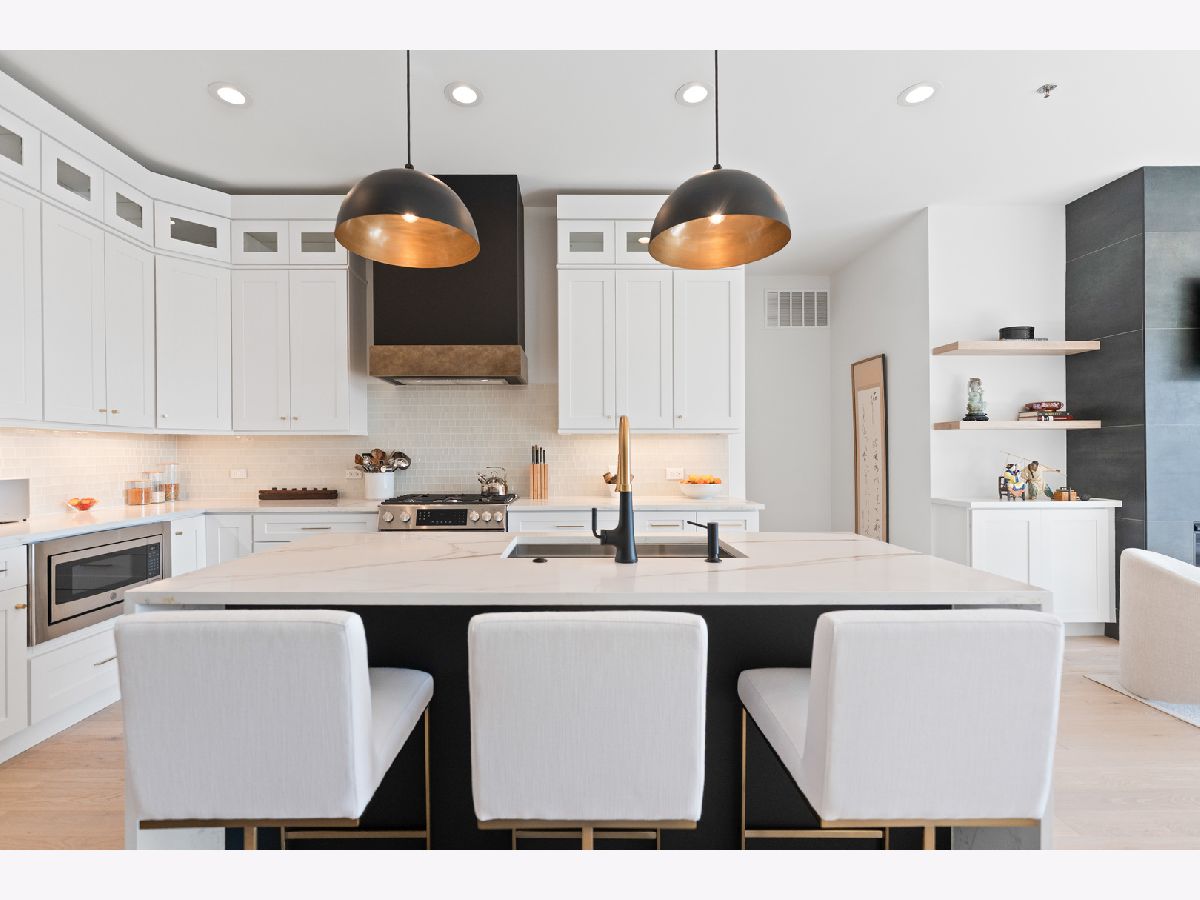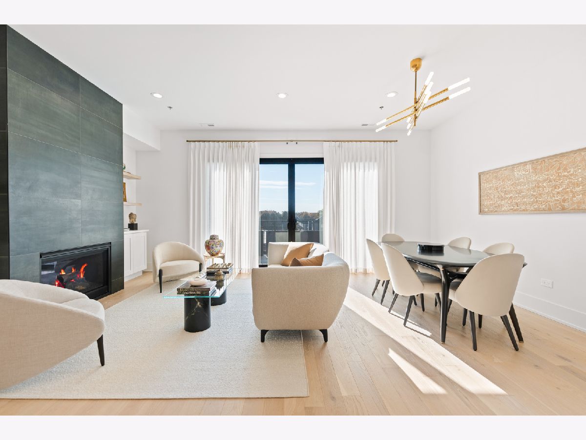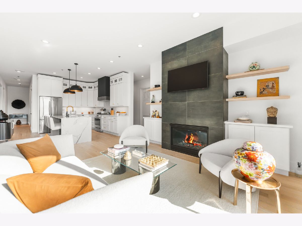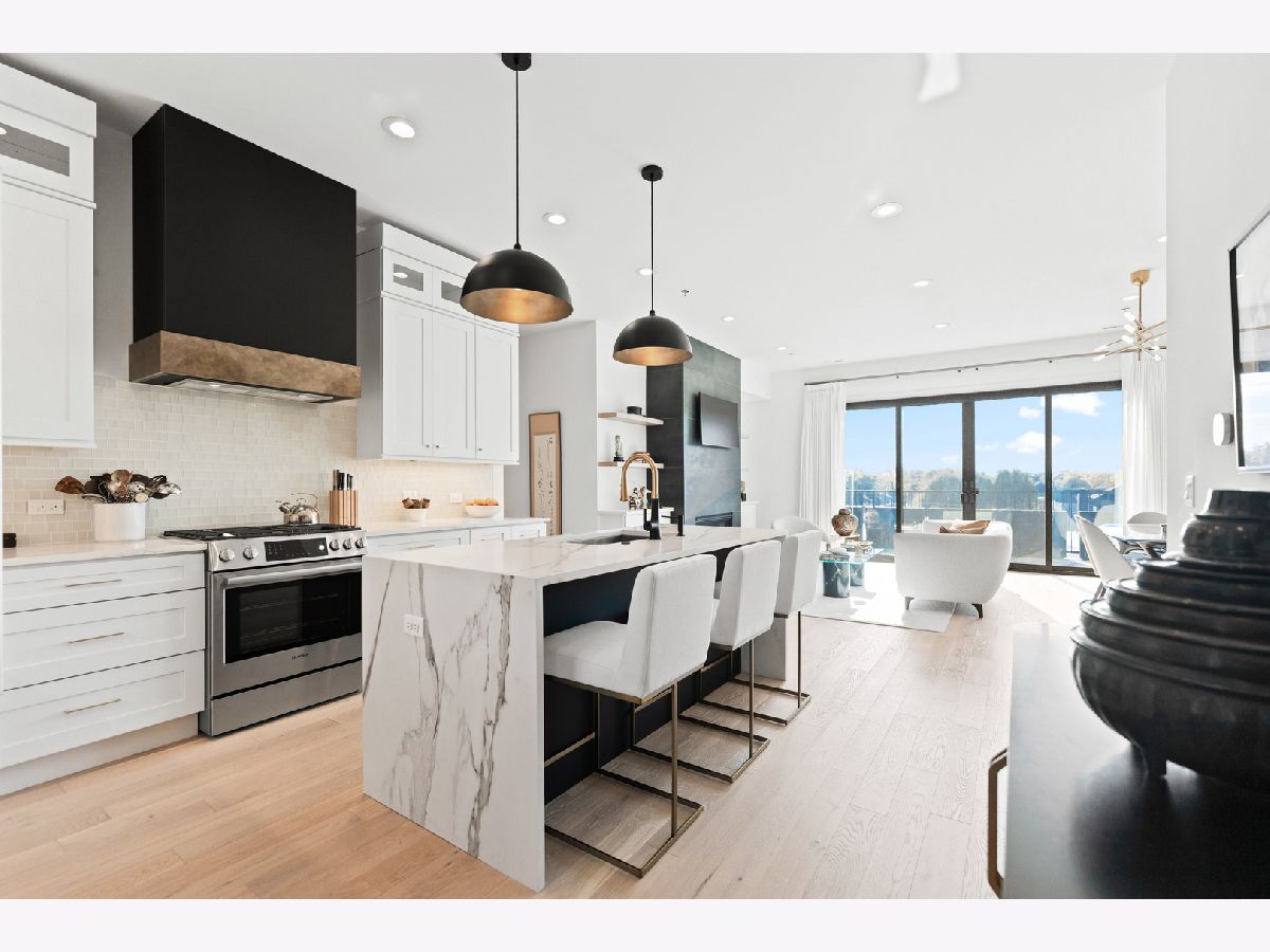 This gorgeous 3 bed, 2 bath Andersonville home offers the rare combination of new construction quality and meticulous owner improvements that elevate every detail. Built just over a year ago, the home has been maintained in pristine condition and thoughtfully customized with designer lighting from Visual Comfort and others, curated finishes, and timeless style throughout. The open-concept living and dining area features French white oak floors, 10-foot ceilings, a fireplace with custom built-ins, and a striking light fixture above the dining space. Floor-to-ceiling pleated drapery opens to a private balcony that fills the room with natural light. The chef's kitchen showcases Calacatta quartz waterfall countertops, a custom tile backsplash, premium appliances, and a dramatic range hood with brass accents. The spacious primary suite includes an oversized walk-in closet with custom built-ins and a statement chandelier, along with a serene bath featuring heated floors, a stone steam shower with bench, a private water closet, and a double vanity. Down the hallway are two additional bedrooms, each offering generous closet space and access to a beautifully designed full bath with custom tile, modern fixtures, and a double vanity. Additional highlights include a large laundry room, an oversized storage room, a separate kitchen pantry, and a coat closet. Heated attached garage parking and an additional storage cage complete the home. All in a boutique elevator building perfectly positioned on a quiet tree-lined street in a prime Andersonville location just steps from the new Metra station, Clark Street's vibrant shops and restaurants, the lakefront, and more!