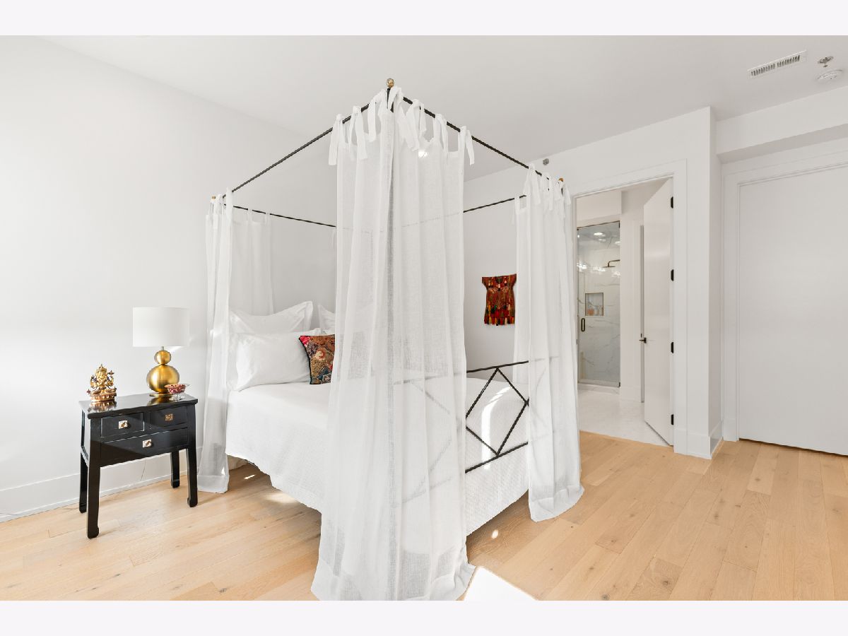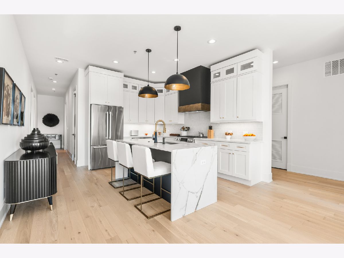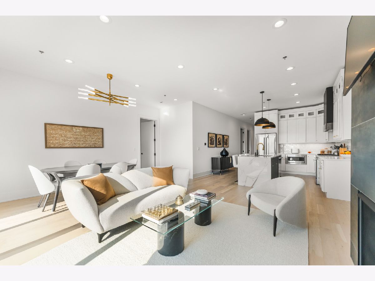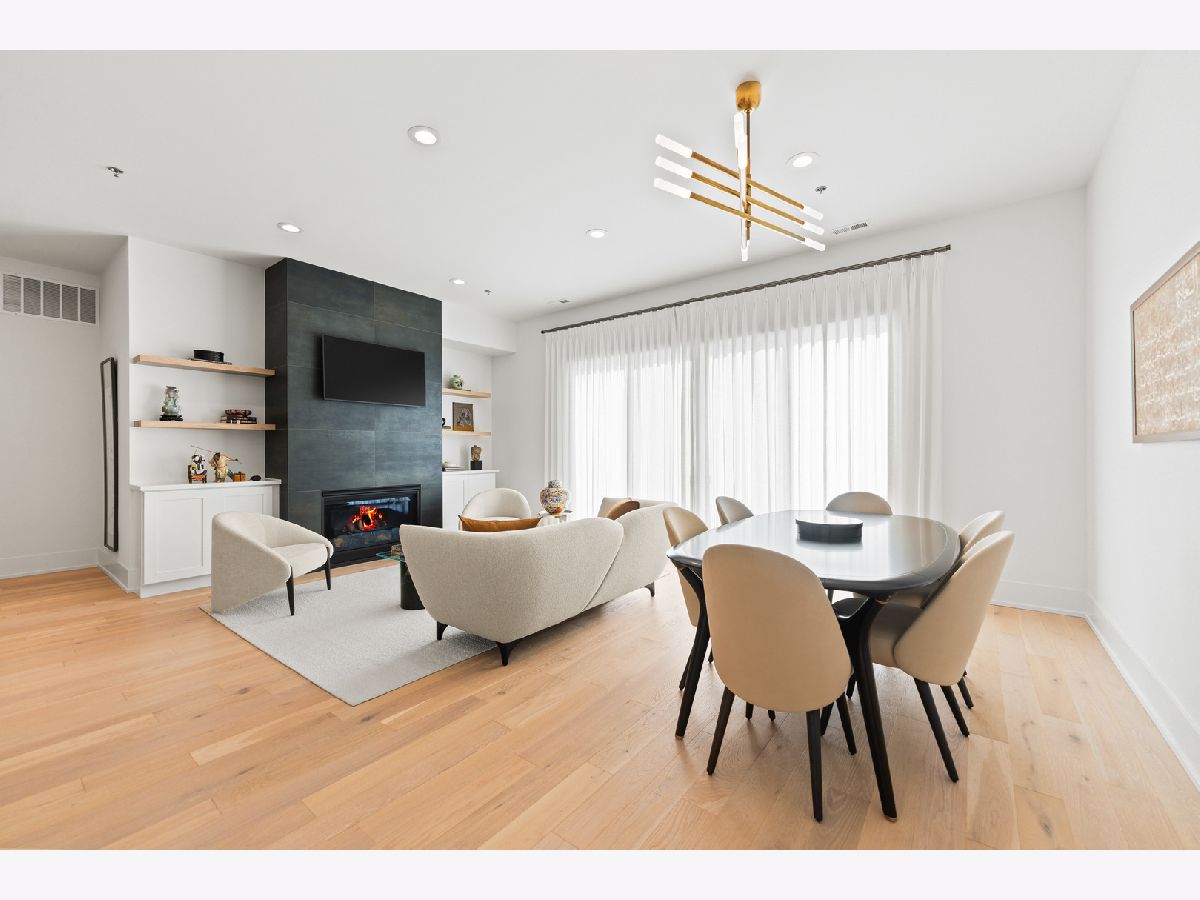 This gorgeous 3 bed, 2 bath Andersonville home offers the rare combination of new construction quality and meticulous owner improvements that elevate every detail. Built just over a year ago, the home has been maintained in pristine condition and thoughtfully customized with designer lighting from Visual Comfort and others, curated finishes, and timeless style throughout. The open-concept living and dining area features French white oak floors, 10-foot ceilings, a fireplace with custom built-ins, and a striking light fixture above the dining space. Floor-to-ceiling pleated drapery opens to a private balcony that fills the room with natural light. The chef's kitchen showcases Calacatta quartz waterfall countertops, a custom tile backsplash, premium appliances, and a dramatic range hood with brass accents. The spacious primary suite includes an oversized walk-in closet with custom built-ins and a statement chandelier, along with a serene bath featuring heated floors, a stone steam shower with bench, a private water closet, and a double vanity. Down the hallway are two additional bedrooms, each offering generous closet space and access to a beautifully designed full bath with custom tile, modern fixtures, and a double vanity. Additional highlights include a large laundry room, an oversized storage room, a separate kitchen pantry, and a coat closet. Heated attached garage parking and an additional storage cage complete the home. All in a boutique elevator building perfectly positioned on a quiet tree-lined street in a prime Andersonville location just steps from the new Metra station, Clark Street's vibrant shops and restaurants, the lakefront, and more!