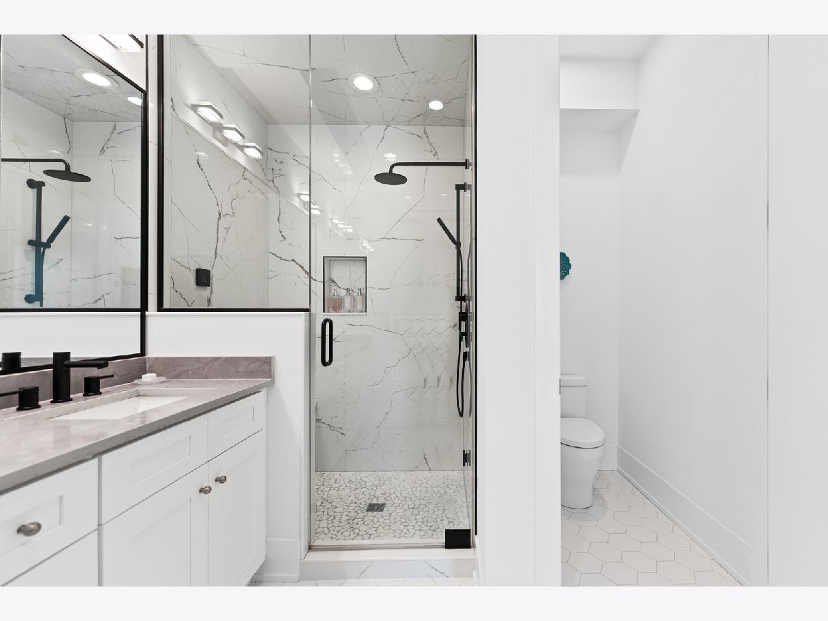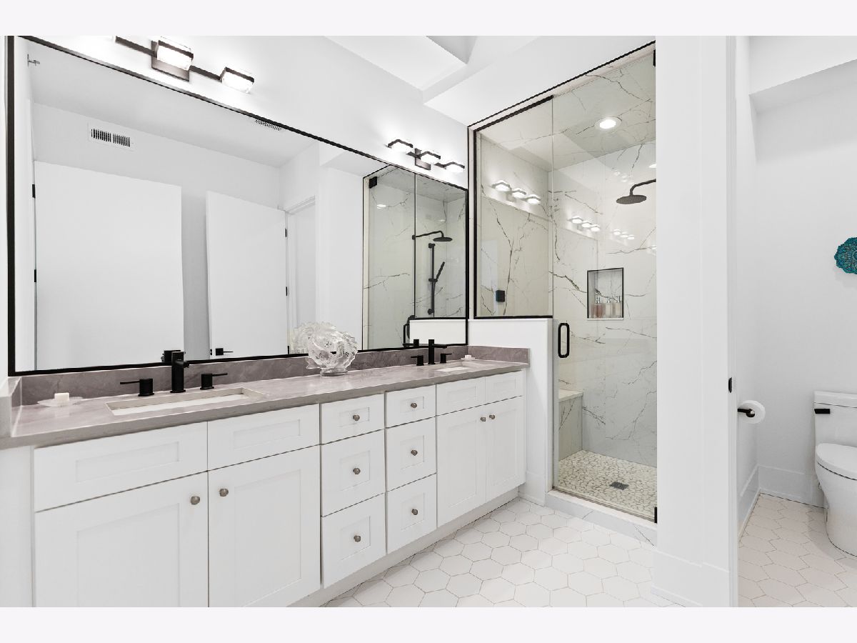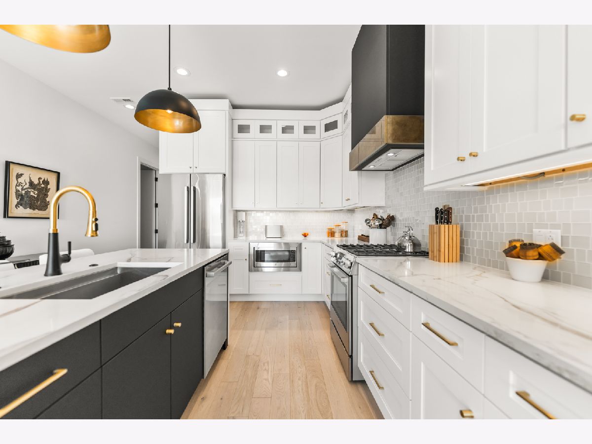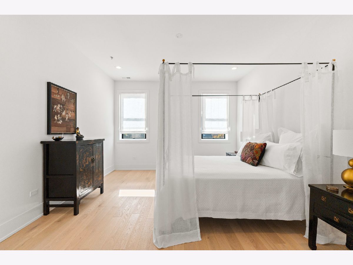 This gorgeous 3 bed, 2 bath Andersonville home offers the rare combination of new construction quality and meticulous owner improvements that elevate every detail. Built just over a year ago, the home has been maintained in pristine condition and thoughtfully customized with designer lighting from Visual Comfort and others, curated finishes, and timeless style throughout. The open-concept living and dining area features French white oak floors, 10-foot ceilings, a fireplace with custom built-ins, and a striking light fixture above the dining space. Floor-to-ceiling pleated drapery opens to a private balcony that fills the room with natural light. The chef's kitchen showcases Calacatta quartz waterfall countertops, a custom tile backsplash, premium appliances, and a dramatic range hood with brass accents. The spacious primary suite includes an oversized walk-in closet with custom built-ins and a statement chandelier, along with a serene bath featuring heated floors, a stone steam shower with bench, a private water closet, and a double vanity. Down the hallway are two additional bedrooms, each offering generous closet space and access to a beautifully designed full bath with custom tile, modern fixtures, and a double vanity. Additional highlights include a large laundry room, an oversized storage room, a separate kitchen pantry, and a coat closet. Heated attached garage parking and an additional storage cage complete the home. All in a boutique elevator building perfectly positioned on a quiet tree-lined street in a prime Andersonville location just steps from the new Metra station, Clark Street's vibrant shops and restaurants, the lakefront, and more!