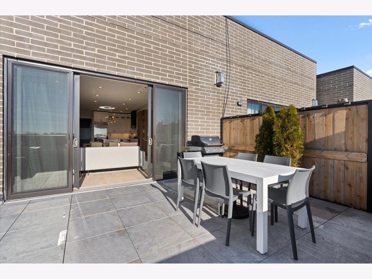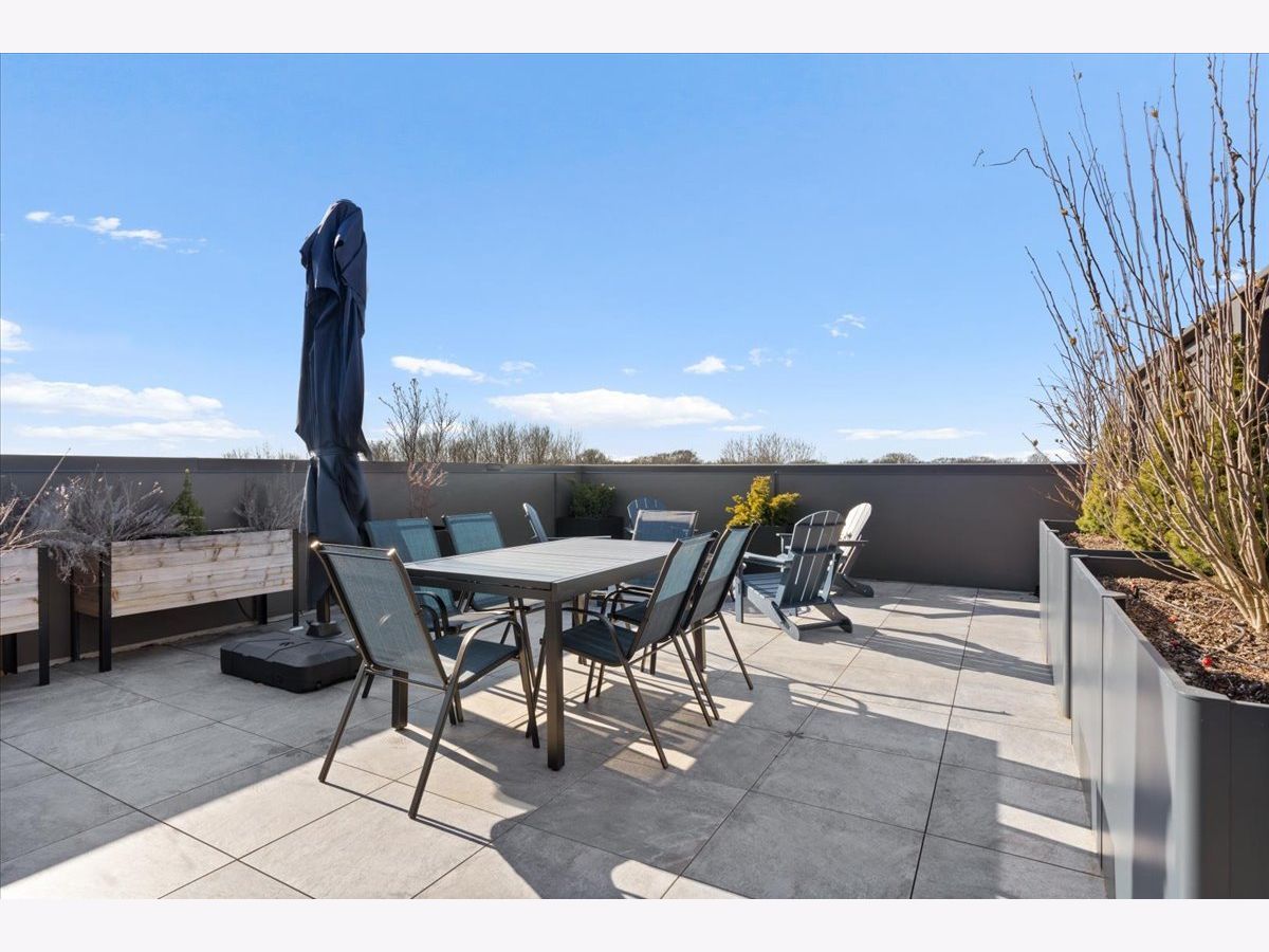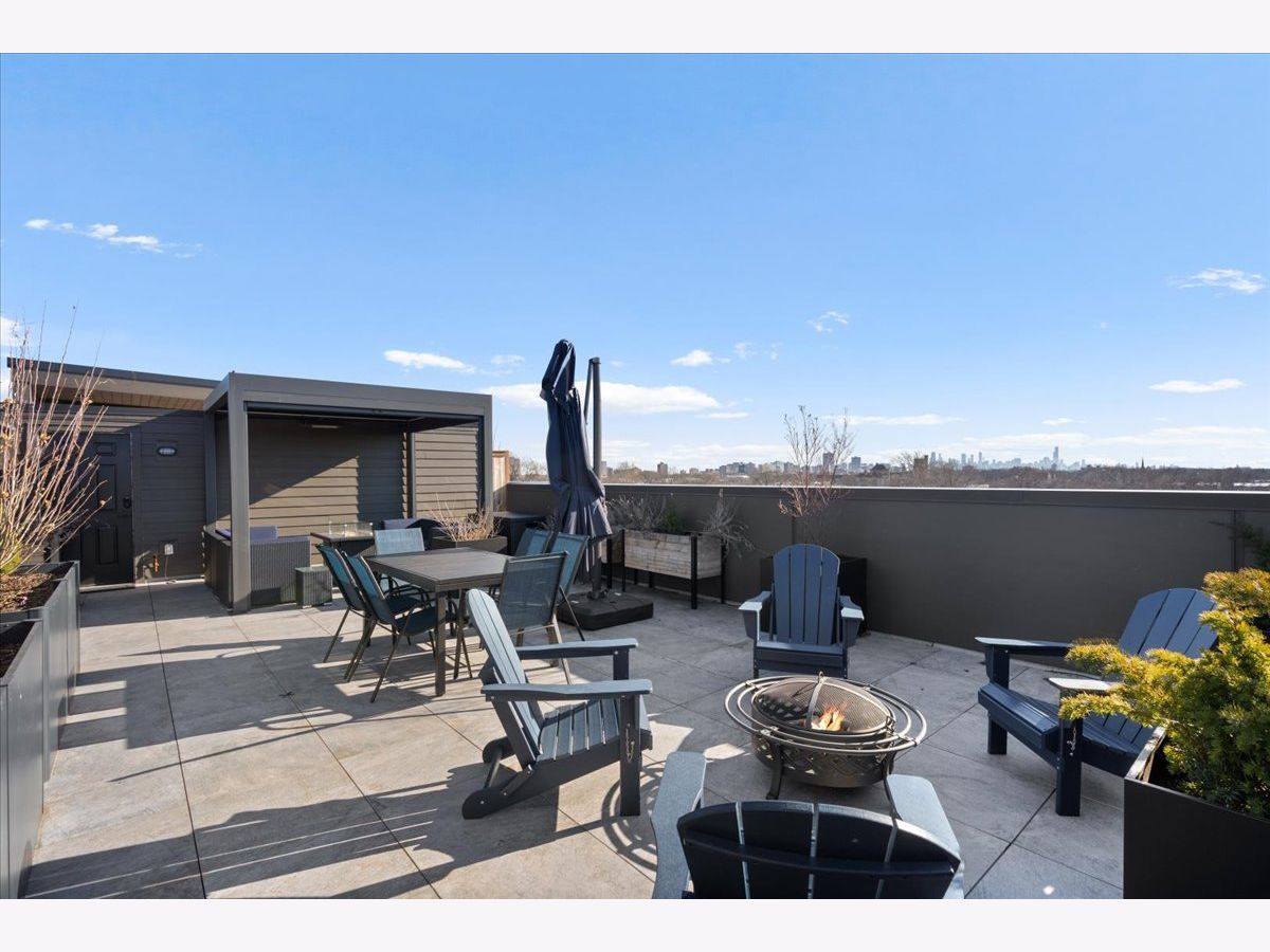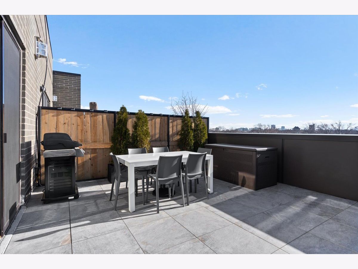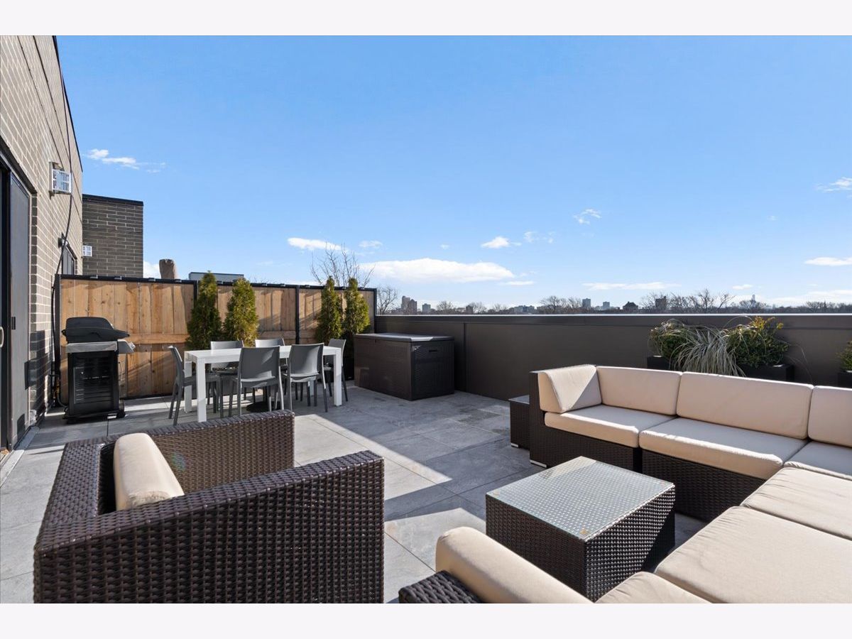 Exceptional, fully customized penthouse in the heart of Andersonville offering 3 bedrooms, 2 baths, and two private outdoor spaces. Set in a newer boutique elevator building on a quiet, tree-lined street just steps from Clark Street's vibrant shops and dining, this south-facing home seamlessly blends new-construction quality with meticulous owner upgrades throughout. Enhancements include designer lighting, upgraded doors, custom closets, elegant built-ins, and high-end fixtures. The expansive open-concept living, dining, and kitchen area features 10' ceilings, wide-plank French white oak floors, a fireplace, custom built-ins, and floor-to-ceiling drapery. The living room opens directly to a 16' x 26' private terrace, ideal for grilling, alfresco dining, and entertaining. The chef's kitchen showcases Calacatta quartz countertops, professional-grade appliances including a SubZero fridge and Wolf range, a beautiful tile backsplash, a full-height wine refrigerator, and a waterfall island with dine-up seating. The serene primary suite offers custom finishes, a spacious walk-in closet, and a spa-inspired bath with heated floors, steam shower, dual vanity, and private water closet. Two additional bedrooms share a beautifully finished full bath, with flexibility to use one as a home office or den. But there's more: Your very own private 20' x 35' roof deck featuring a pergola, privacy fencing, planters, mature trees, and sweeping skyline views. Additional features include an in-unit laundry room with extra storage, heated garage parking, and a dedicated storage closet. A truly exceptional Andersonville penthouse just steps from the Metra station and the lakefront.