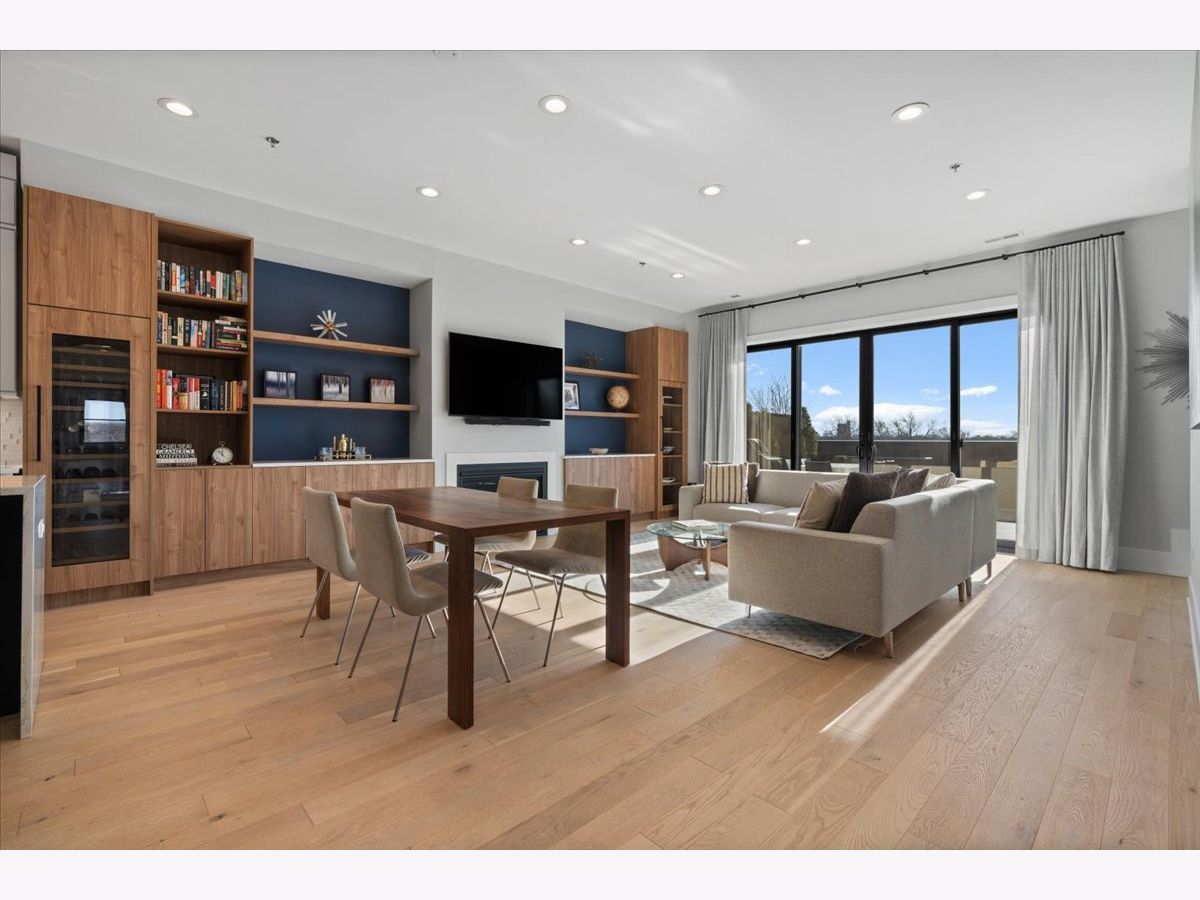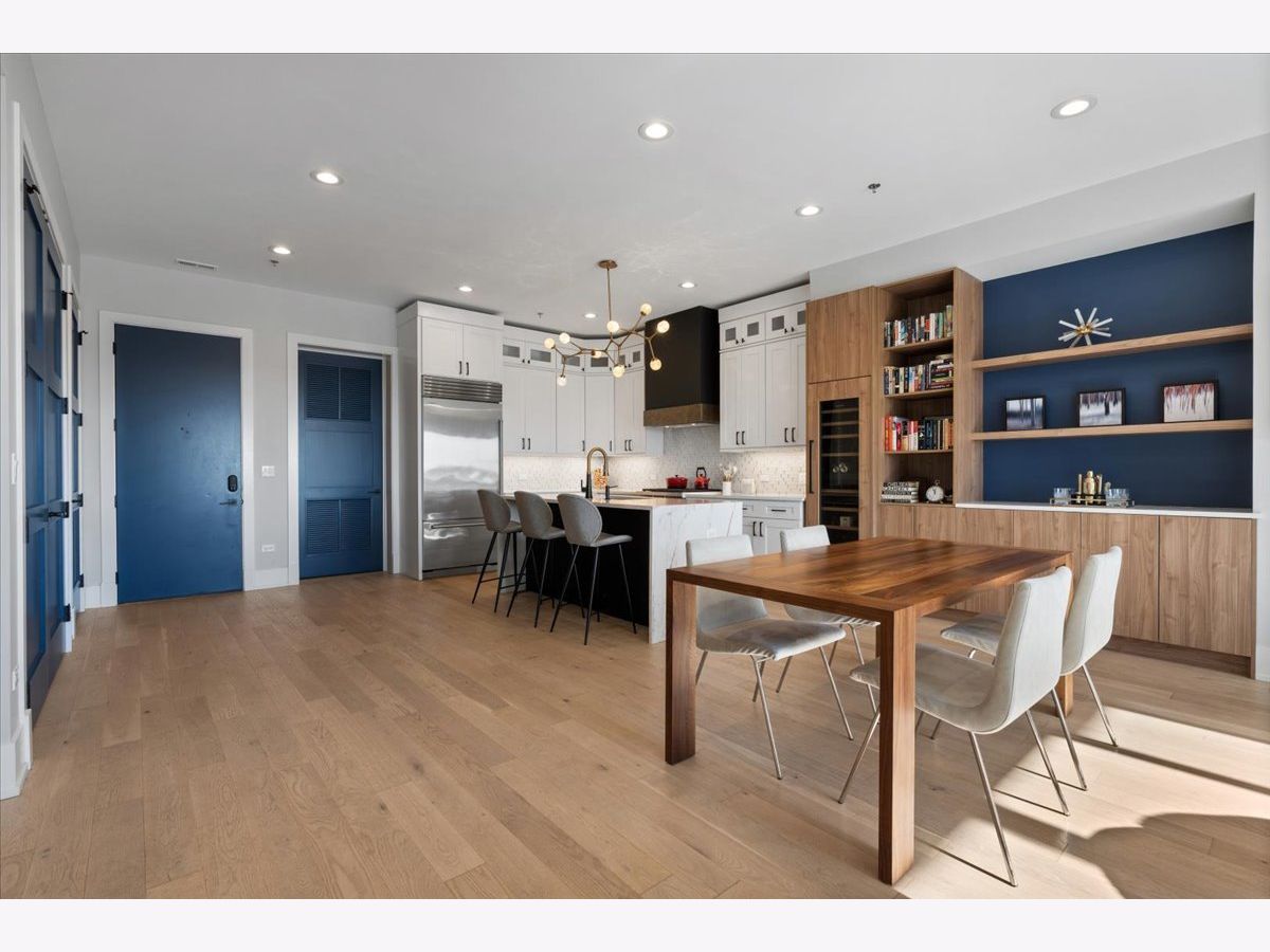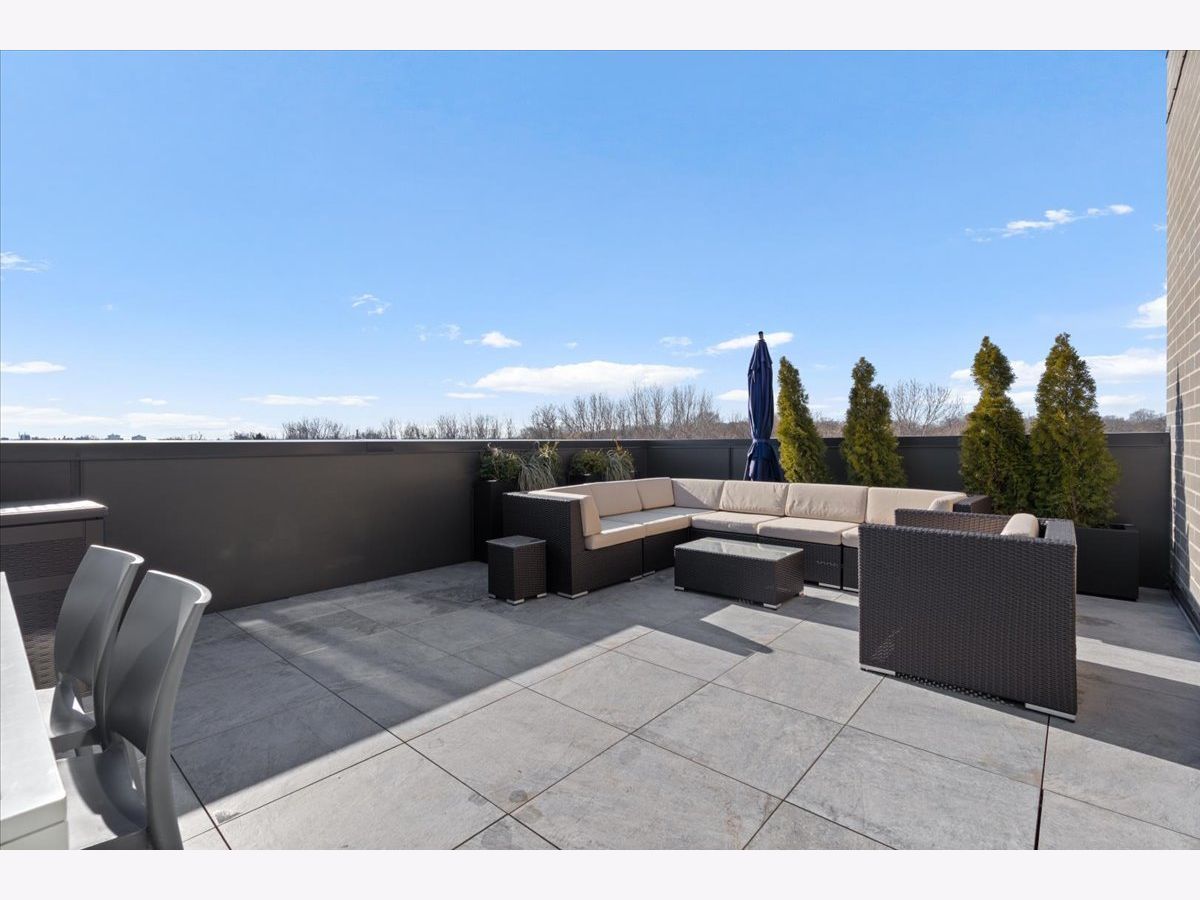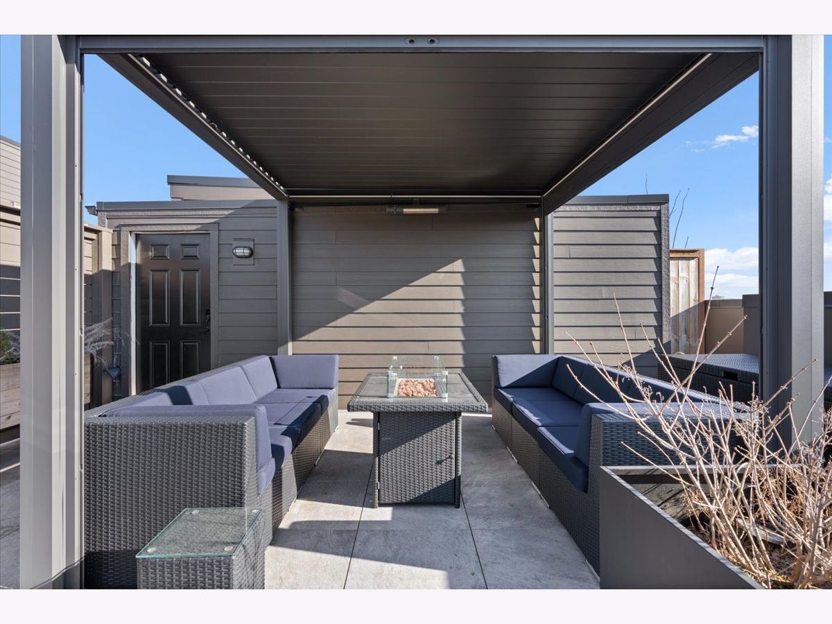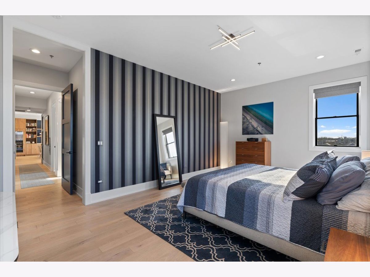 Exceptional, fully customized penthouse in the heart of Andersonville offering 3 bedrooms, 2 baths, and two private outdoor spaces. Set in a newer boutique elevator building on a quiet, tree-lined street just steps from Clark Street's vibrant shops and dining, this south-facing home seamlessly blends new-construction quality with meticulous owner upgrades throughout. Enhancements include designer lighting, upgraded doors, custom closets, elegant built-ins, and high-end fixtures. The expansive open-concept living, dining, and kitchen area features 10' ceilings, wide-plank French white oak floors, a fireplace, custom built-ins, and floor-to-ceiling drapery. The living room opens directly to a 16' x 26' private terrace, ideal for grilling, alfresco dining, and entertaining. The chef's kitchen showcases Calacatta quartz countertops, professional-grade appliances including a SubZero fridge and Wolf range, a beautiful tile backsplash, a full-height wine refrigerator, and a waterfall island with dine-up seating. The serene primary suite offers custom finishes, a spacious walk-in closet, and a spa-inspired bath with heated floors, steam shower, dual vanity, and private water closet. Two additional bedrooms share a beautifully finished full bath, with flexibility to use one as a home office or den. But there's more: Your very own private 20' x 35' roof deck featuring a pergola, privacy fencing, planters, mature trees, and sweeping skyline views. Additional features include an in-unit laundry room with extra storage, heated garage parking, and a dedicated storage closet. A truly exceptional Andersonville penthouse just steps from the Metra station and the lakefront.