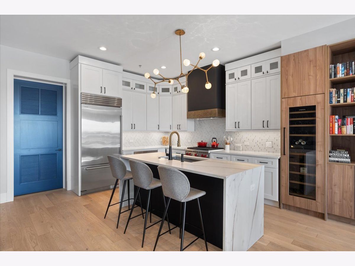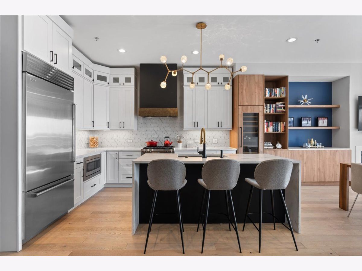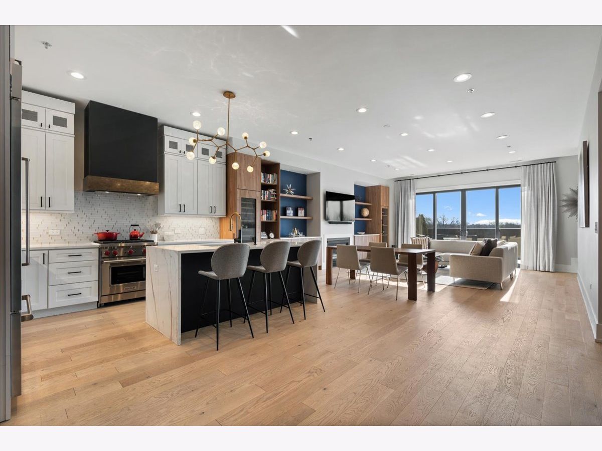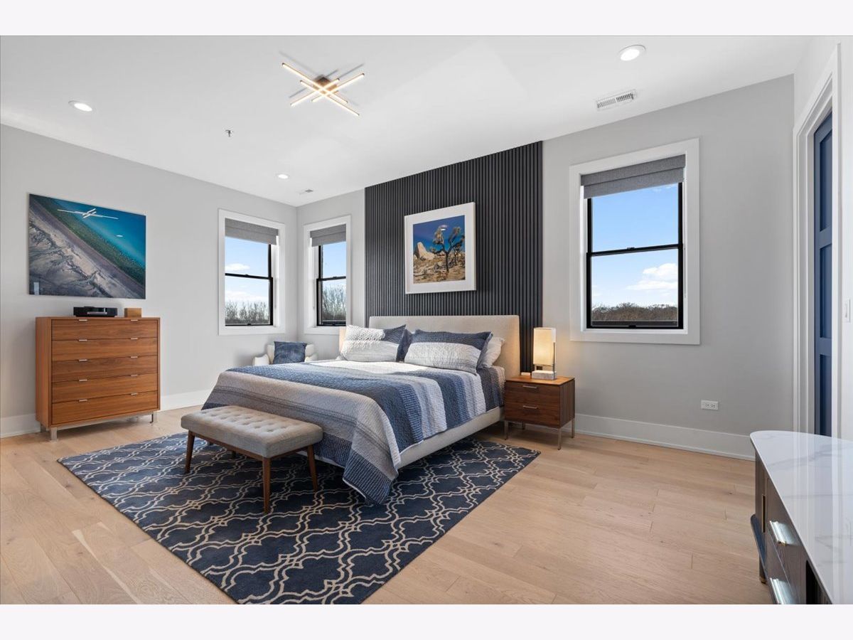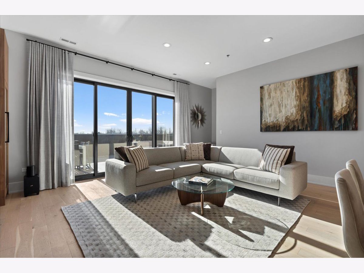 Exceptional, fully customized penthouse in the heart of Andersonville offering 3 bedrooms, 2 baths, and two private outdoor spaces. Set in a newer boutique elevator building on a quiet, tree-lined street just steps from Clark Street's vibrant shops and dining, this south-facing home seamlessly blends new-construction quality with meticulous owner upgrades throughout. Enhancements include designer lighting, upgraded doors, custom closets, elegant built-ins, and high-end fixtures. The expansive open-concept living, dining, and kitchen area features 10' ceilings, wide-plank French white oak floors, a fireplace, custom built-ins, and floor-to-ceiling drapery. The living room opens directly to a 16' x 26' private terrace, ideal for grilling, alfresco dining, and entertaining. The chef's kitchen showcases Calacatta quartz countertops, professional-grade appliances including a SubZero fridge and Wolf range, a beautiful tile backsplash, a full-height wine refrigerator, and a waterfall island with dine-up seating. The serene primary suite offers custom finishes, a spacious walk-in closet, and a spa-inspired bath with heated floors, steam shower, dual vanity, and private water closet. Two additional bedrooms share a beautifully finished full bath, with flexibility to use one as a home office or den. But there's more: Your very own private 20' x 35' roof deck featuring a pergola, privacy fencing, planters, mature trees, and sweeping skyline views. Additional features include an in-unit laundry room with extra storage, heated garage parking, and a dedicated storage closet. A truly exceptional Andersonville penthouse just steps from the Metra station and the lakefront.