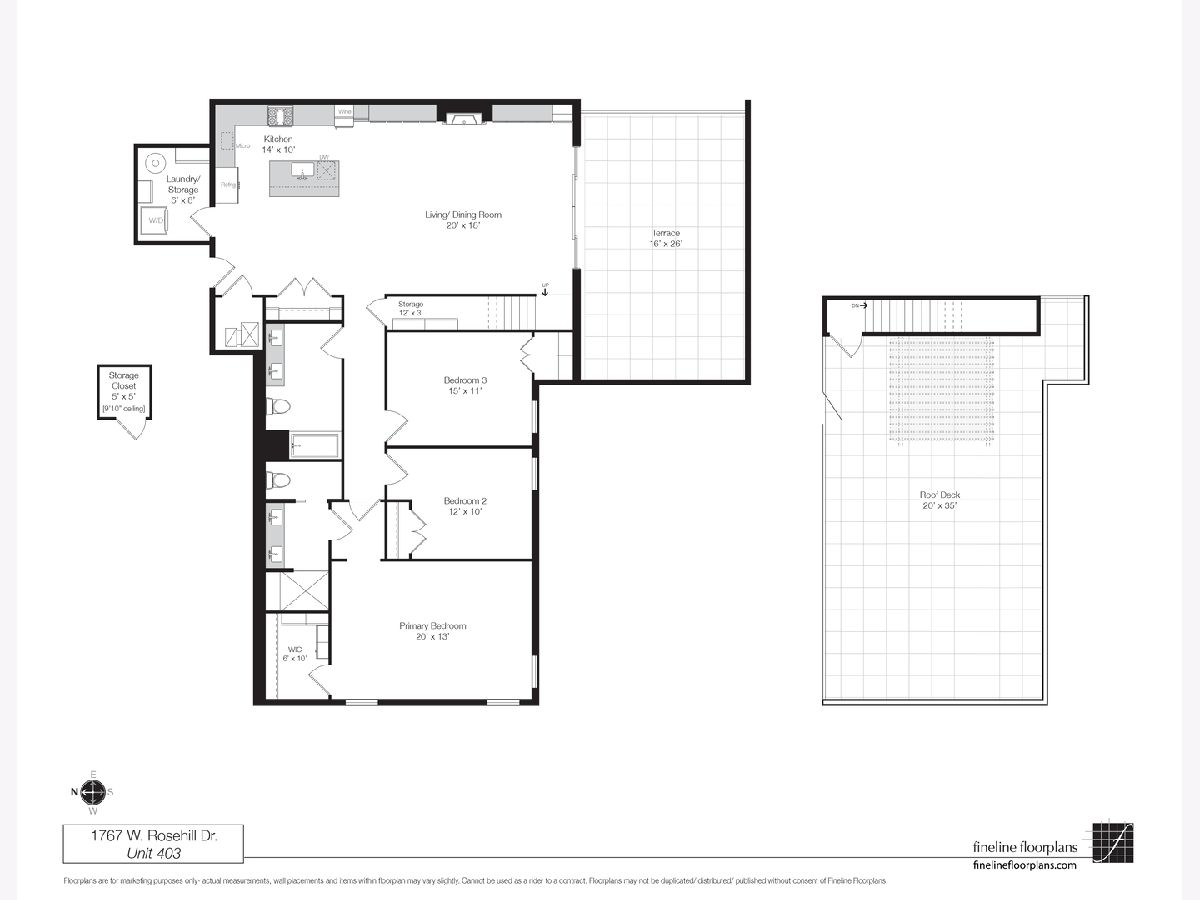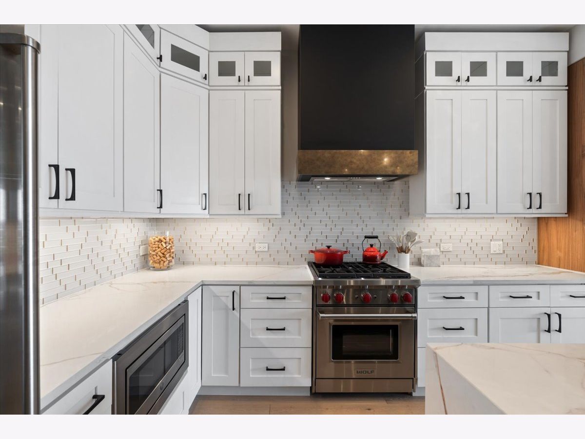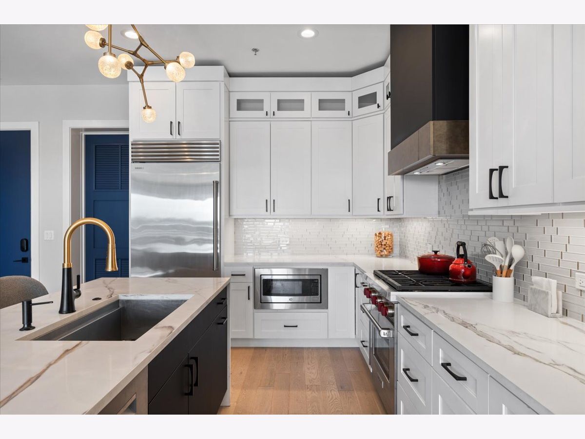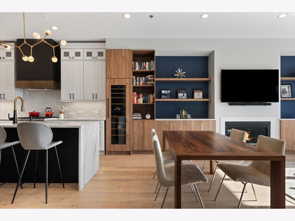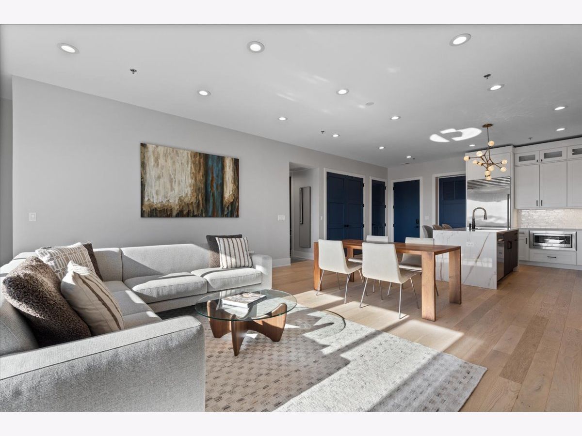 Exceptional, fully customized penthouse in the heart of Andersonville offering 3 bedrooms, 2 baths, and two private outdoor spaces. Set in a newer boutique elevator building on a quiet, tree-lined street just steps from Clark Street's vibrant shops and dining, this south-facing home seamlessly blends new-construction quality with meticulous owner upgrades throughout. Enhancements include designer lighting, upgraded doors, custom closets, elegant built-ins, and high-end fixtures. The expansive open-concept living, dining, and kitchen area features 10' ceilings, wide-plank French white oak floors, a fireplace, custom built-ins, and floor-to-ceiling drapery. The living room opens directly to a 16' x 26' private terrace, ideal for grilling, alfresco dining, and entertaining. The chef's kitchen showcases Calacatta quartz countertops, professional-grade appliances including a SubZero fridge and Wolf range, a beautiful tile backsplash, a full-height wine refrigerator, and a waterfall island with dine-up seating. The serene primary suite offers custom finishes, a spacious walk-in closet, and a spa-inspired bath with heated floors, steam shower, dual vanity, and private water closet. Two additional bedrooms share a beautifully finished full bath, with flexibility to use one as a home office or den. But there's more: Your very own private 20' x 35' roof deck featuring a pergola, privacy fencing, planters, mature trees, and sweeping skyline views. Additional features include an in-unit laundry room with extra storage, heated garage parking, and a dedicated storage closet. A truly exceptional Andersonville penthouse just steps from the Metra station and the lakefront.