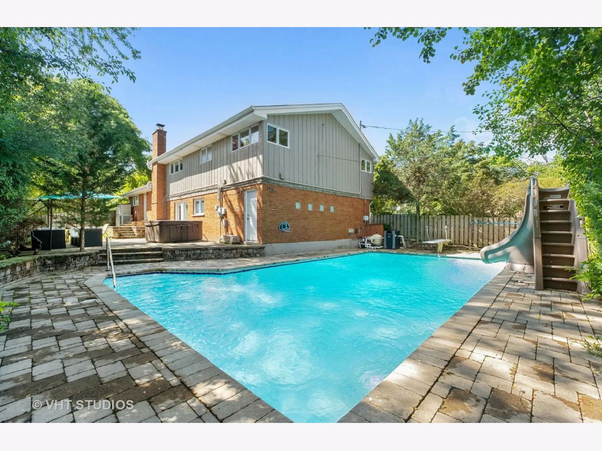 Fall in love with this bright, spacious and freshly painted 4 bedroom + office, 2.5 bath home. A two story foyer welcomes you and leads into a cozy private office with fireplace. Walk up a few steps into a large open family room and dining room with tons of natural light. The sunny white kitchen with skylight and double ovens is ready for hosting holidays. Upstairs you will find a generous primary bedroom suite with newly remodeled stylish bath. Three addiitional bedrooms on the second level share another fully remodeled bath. Lower level rec room offers an abundance of storage space with newer vinyl tile flooring making it perfect for the whole family to enjoy. Step outside to your own private oasis with a gorgeous in ground pool with diving board and water slide for summer fun. Two car attached garage is super convienent as well as the half bathroom that leads directly to outdoor patio for pool parties. Many recent updates including NEW ROOF and gutters (2023), new water heater (2023), new HVAC (2021) and new fencing (2021). Full list of improvements available. Walking distance to Devonshire Park, schools, and Downtown Highland Park! Wonderful neighborhood offers easy access to train or highway and choice of Highland Park or Deerfield High Schools.