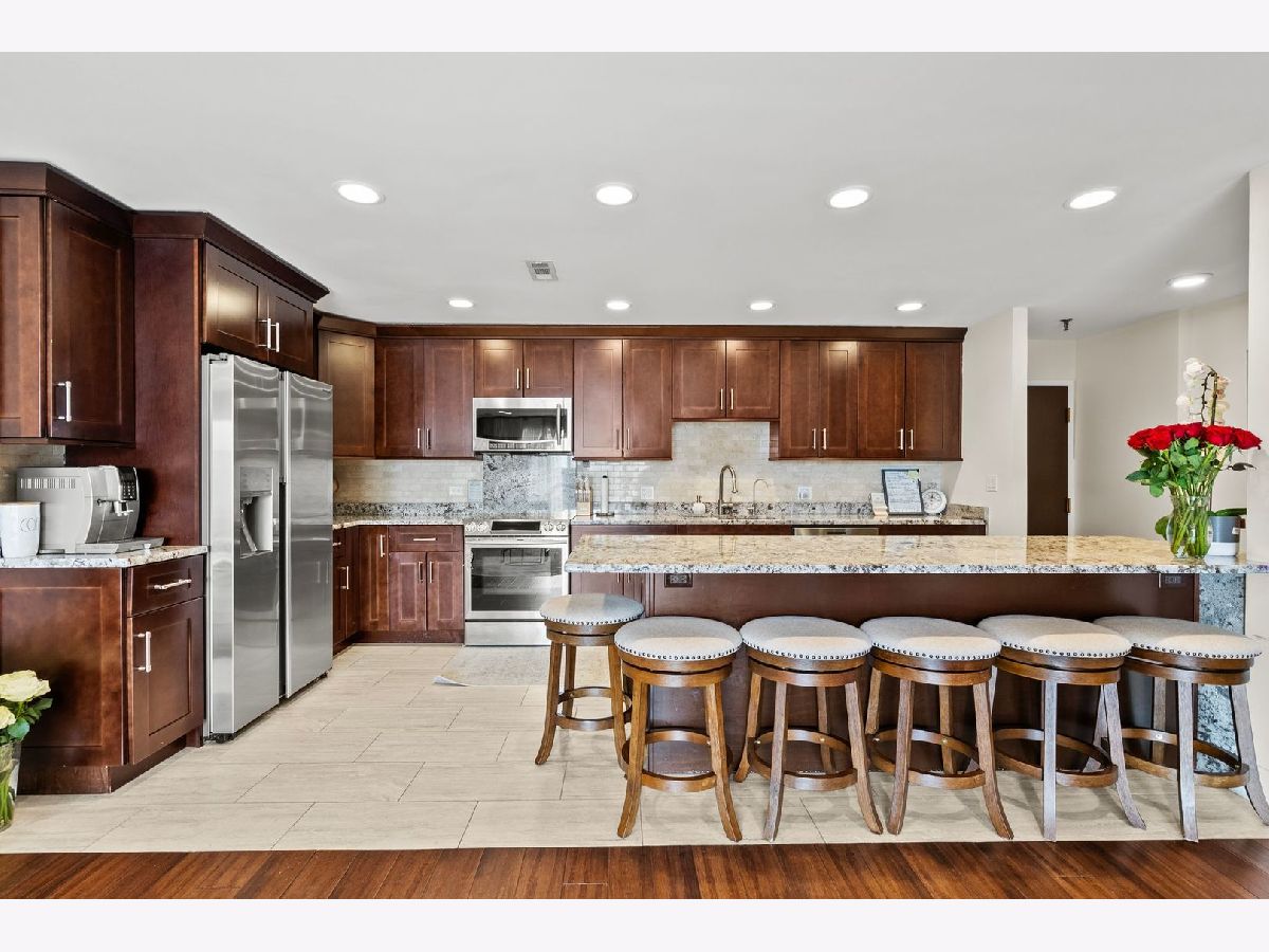 Completely renovated large, modern, bright and spacious. Elegant hardwood floors, granite counter tops, high quality kitchen cabinets, granite bathrooms and lots of can lights in the ceiling give a sense of comfort. Elevator, balcony, garage, central heat and air, swimming pool and close to public transport and shopping. You have to see this. You will be pleasantly surprised.