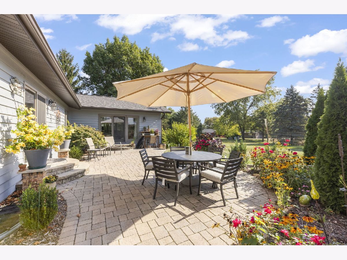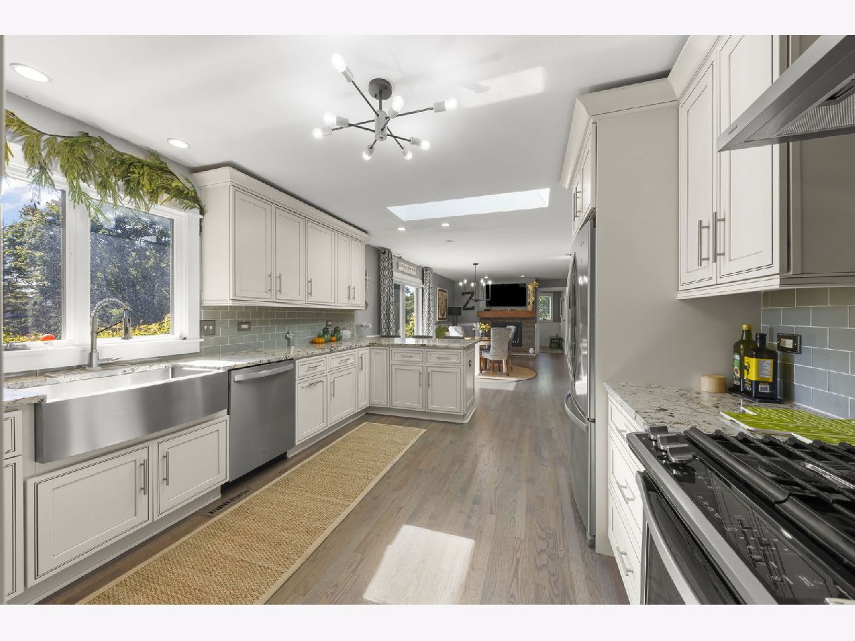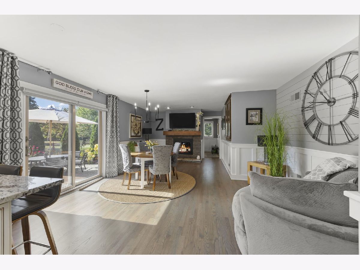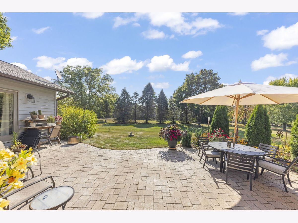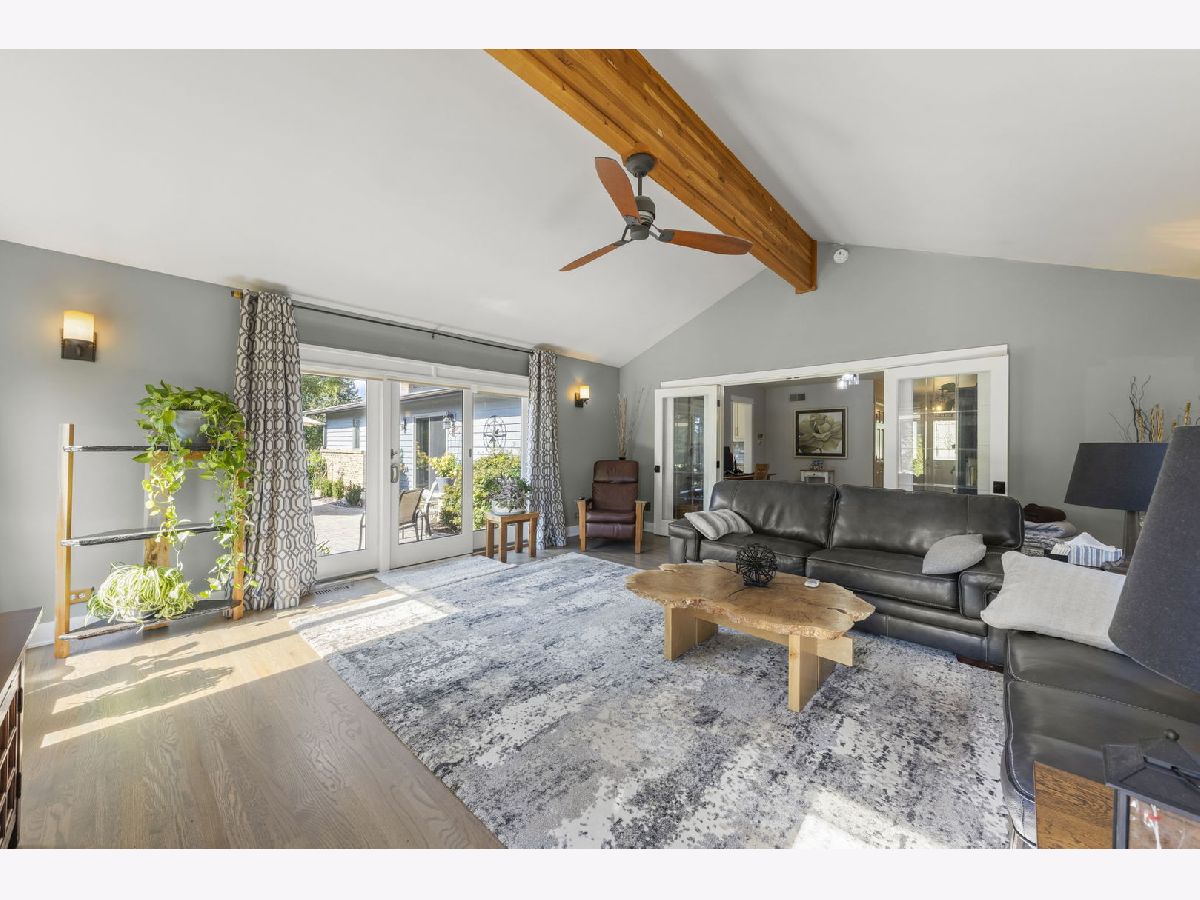 Welcome to this beautifully updated 3-bedroom, 3-bathroom all-brick ranch perfectly situated on a spacious, landscaped lot surrounded by mature trees and open green space. This meticulously maintained home blends timeless construction with stylish modern updates, offering an inviting layout ideal for both everyday living and entertaining. Step inside to discover warm hardwood floors, elegant trim work, and abundant natural light throughout. The open-concept design features a sophisticated living area with vaulted ceilings, exposed beam, and panoramic windows that frame peaceful backyard views. French doors open to a bright and versatile living room, while the formal dining room provides a perfect setting for gatherings. The gourmet kitchen is a showstopper-equipped with custom cabinetry, stainless steel appliances, granite countertops, a farmhouse sink, and a skylight that fills the room with sunshine. The adjoining family room features a modern gas fireplace and a comfortable, welcoming atmosphere. Each of the three full bathrooms has been tastefully remodeled with contemporary finishes, tile detailing, and updated fixtures. The private primary suite offers comfort and elegance, while the additional bedrooms provide flexibility for family or guests, Outdoors, enjoy the ultimate retreat-a stunning paver patio surrounded by vibrant landscaping, perennial gardens, and mature evergreens for privacy. Perfect for morning coffee, evening entertaining, or relaxing under the stars. The oversized 3-car garage provides ample space for vehicles, storage, and workshop potential. Additional highlights include a newer roof, energy-efficient windows, updated lighting, and a beautifully landscaped yard with plenty of room for recreation or gardening. Ideally located in a quiet, established neighborhood close to shopping, dining, and parks-this home offers the perfect blend of comfort, quality, and style.