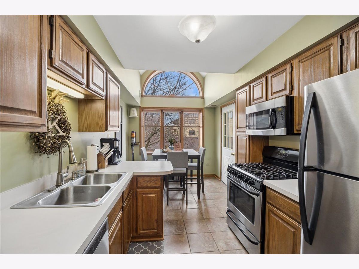 Rarely available! - Second floor condo located in Oak Village - 2 bedroom, 2 bath with vaulted ceilings and architectural details in living and dining area. Fantastic kitchen and breakfast area featuring a pitched ceiling with half circular arch window, stainless steel appliances and plenty of cabinetry! This unit is so spacious along with an attached one car garage and extra storage space off the private balcony. Extremely generous sized primary and ensuite bath featuring jacuzzi tub and walk-in closet. Prime location with easy walking distance to historic Oak Park Avenue. This condo has so much to offer - shopping, dining, entertainment, train station and more. Oak Village includes a wonderful pool and club house!! Come take a look, so worth it!