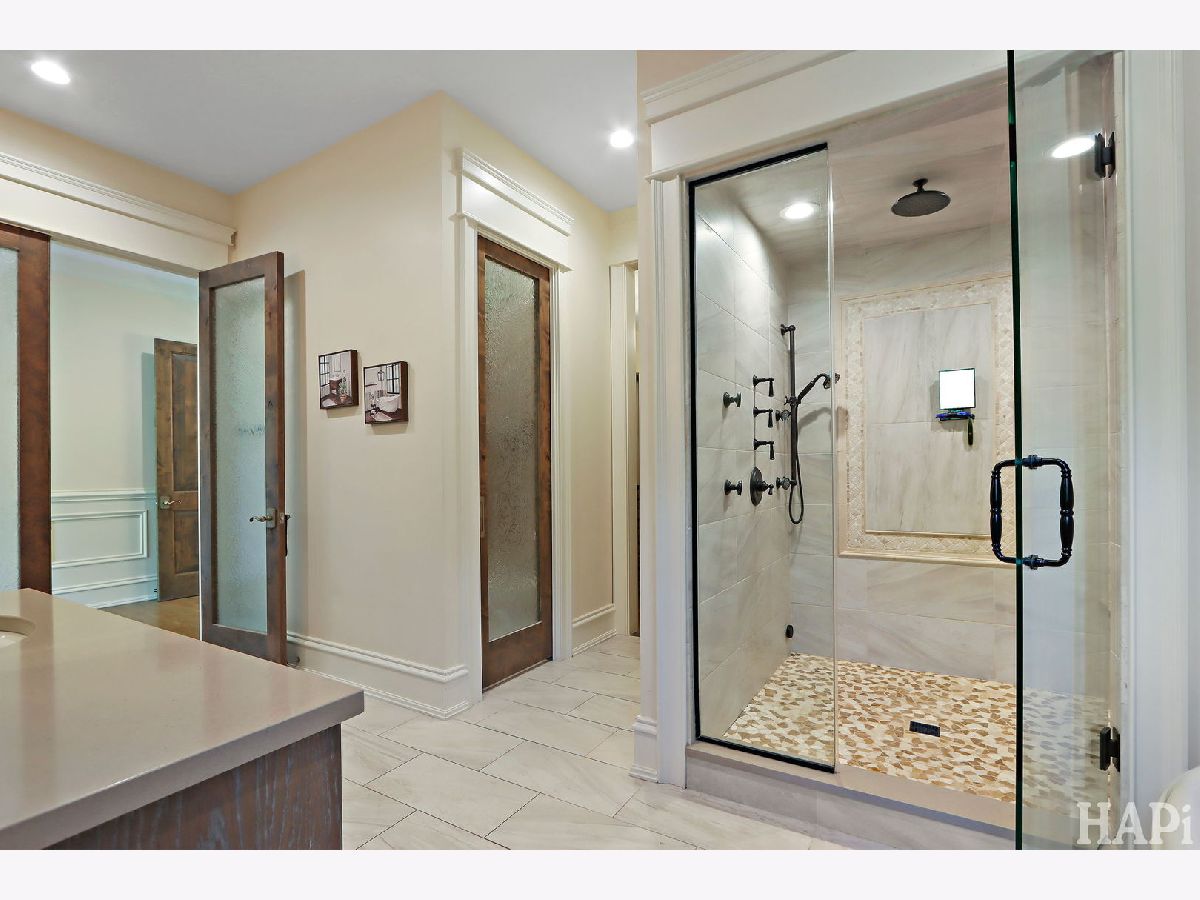 Tucked behind the gates of the Village Enclave of South Barrington, this custom estate offers unmatched elegance, privacy, and convenience -- all within the highly sought after District 220 school system. You'll discover unsurpassed elegance and excellence went into the building of this home on all three levels. This home flawlessly blends warmth, with modern sophistication, comfort and convenience for everyday living and entertaining. A stunning dual-sided marble gas fireplace welcomes you in the foyer to the soaring two-story great room, with floor-to-ceiling windows that flood the room with natural light. Exquisite attention to detail is apparent from the heated tile floors, hardwoods, striking chandeliers and wood accents. The gourmet kitchen, that flows effortlessly into the formal dining room, features Thermador appliances, quartz countertops, dual dishwashers, dual sinks, walk-in pantry, and custom cabinetry. The main floor wing houses a sumptuous primary suite with an electric fireplace, expansive walk-in closet and french doors that open to the gorgeous private outdoor patio for ultimate relaxation for morning coffee or after a long day. The luxurious spa-inspired bath is also a true retreat with soaking tub, large walk-in shower and dual vanities. Laundry room, powder room, and mudroom complete the main floor. The 4.5-car heated garage with epoxy floor is accessible through the mudroom and is equipped with EV charger. Moving up to the 2nd floor, you'll find the open area that provides breathtaking view of the great room, has a comfortable sitting area, plus a unique circular room that would make an ideal office space. Three upstairs generously sized bedrooms include one with an ensuite full bath and two others with a Jack-n-Jill full bath. All bedrooms have spacious walk-in closets. A massive bonus room has plenty of space for a wide variety of entertainment options, plus a half bath. A second laundry room and trex-deck balconies complete the 2nd floor. An amazing lower level is a home within the home, with entry stairs from the garage, a fifth bedroom, full bath, beautiful chef's kitchen with island a table space, 3rd laundry, theater room, sauna and exercise room with capacity for multiple fitness equipment/weights that rival any membership gym. Stairs from the lower level fitness center lead to the spacious stone paver patio and Trex deck, lush greenery, and landscape lighting that showcases this true oasis in the evening. Located at the end of a private cul-de-sac, you're just minutes from the Arboretum's shopping, dining, and entertainment, plus quick access to I-90 and O'Hare International Airport. Don't miss the opportunity to call this magnificent home yours!