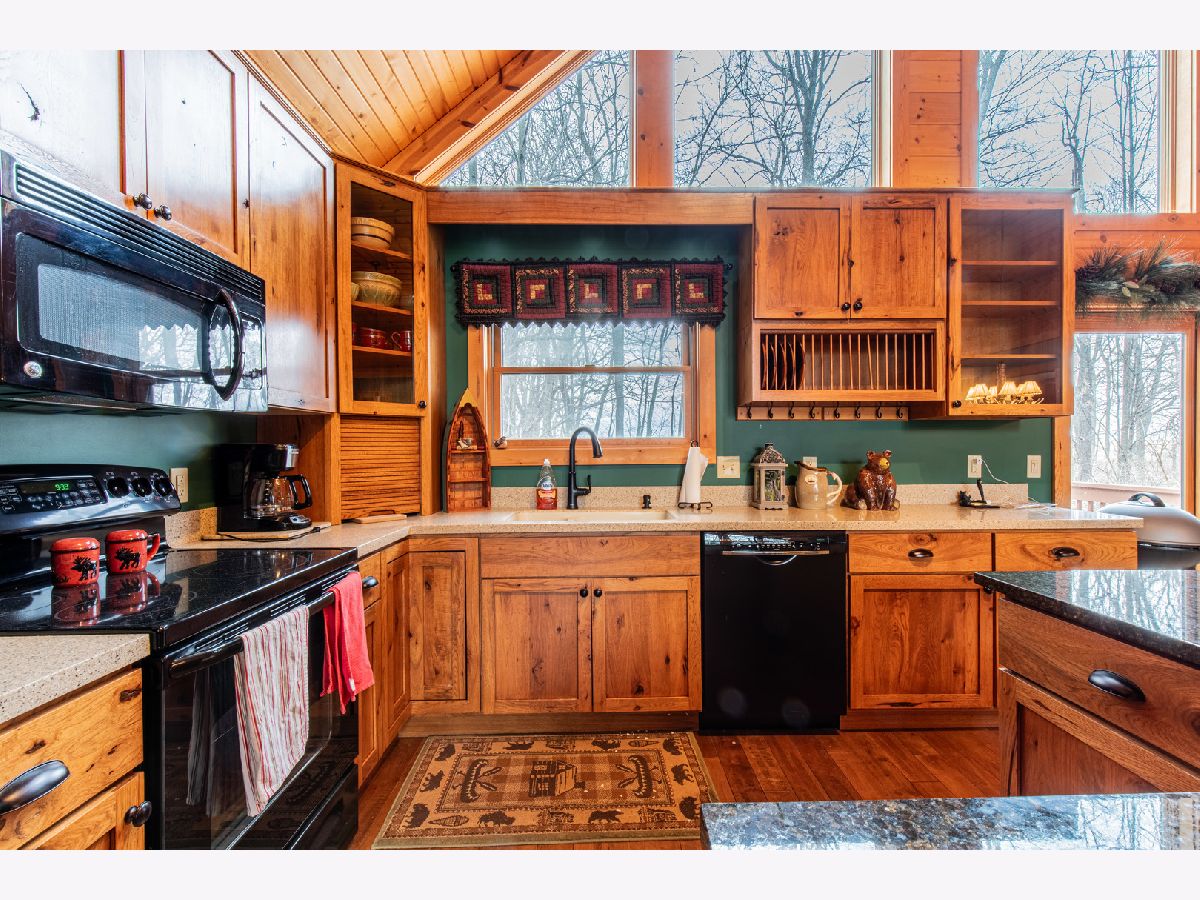 Tucked away in the woods on over 2/3 of an acre, this beautifully maintained 3-bedroom, 2 full bath cedar home offers the perfect blend of rustic charm and modern comfort. Built in 2010 and lovingly used only as a weekend retreat, the home feels almost brand new - meticulously cared for and move-in ready. Step inside to a thoughtfully designed split-bedroom floor plan that provides privacy and functionality. The heart of the home is the stunning great room, where a striking stone gas fireplace anchors the space and soaring windows frame breathtaking wooded views. Natural light pours in through oversized windows, creating the perfect setting for deer and bird watching while seamlessly bringing the outdoors in. The kitchen is both beautiful and practical, featuring granite countertops, abundant cabinetry, and a spacious island with seating - ideal for casual meals or entertaining family and friends. The private primary suite is a true retreat, complete with serene views and a luxurious en suite bath offering a large walk-in shower, whirlpool tub, and generous space to unwind. Downstairs, the poured concrete, unfinished basement provides exceptional potential. Whether you envision additional living space, a recreation room, home gym, or guest quarters, the possibilities are endless. Located on a quiet street with only one neighboring home beyond it, this property offers privacy, tranquility, and the peaceful lifestyle you've been dreaming of - all while being gently lived in and exceptionally well maintained. If you're looking for a move-in-ready cabin that combines modern amenities with natural beauty, this is the one.
