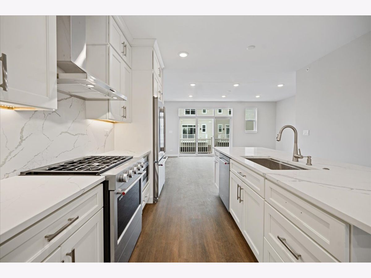 Welcome to LOT 4 at Insignia Glen 2, a modern tri-level townhome community in Des Plaines. Positioned furthest from the street and situated on a desirable corner lot within this 16-residence development, this beautifully designed home offers approximately 1,882 square feet of thoughtfully planned living space. Featuring 3 bedrooms and 3.5 bathrooms, each bedroom includes its own private ensuite bath, a rare and highly desirable layout in new construction. The main level welcomes you with a foyer and coat closet leading into an open-concept living space. The dining area flows seamlessly into a kitchen designed for modern living with pantry, while the spacious living room opens to a private balcony, perfect for relaxing or entertaining. A convenient powder room completes this level. The lower level offers a private third bedroom with ensuite bath, additional storage space, mechanical room, and direct access to the attached two-car garage. Upstairs, you'll find two generously sized bedrooms, each with walk-in closets and private ensuite baths. A centrally located laundry room with hookups adds everyday convenience. Insignia Glen 2 spans nearly one acre of professionally landscaped grounds with walking paths and open green space, offering peaceful surroundings with low monthly HOA fees. Pet-friendly community. Located near North Elementary, Chippewa Middle School, and Maine West High School, with convenient access to shopping, dining, parks, Metra, and major roadways. Home is currently under active construction. 1-Year Builder Warranty included. Modern design. Smart layout. Exceptional location.