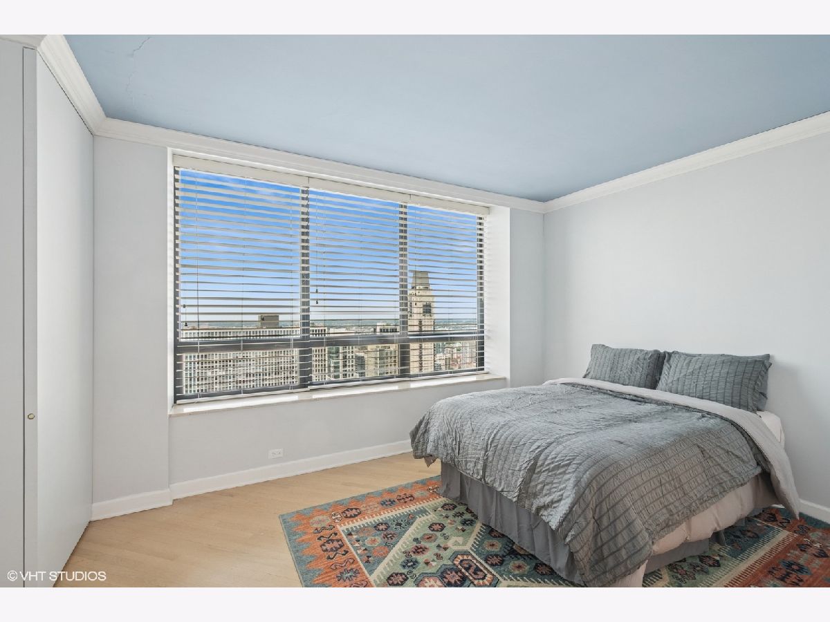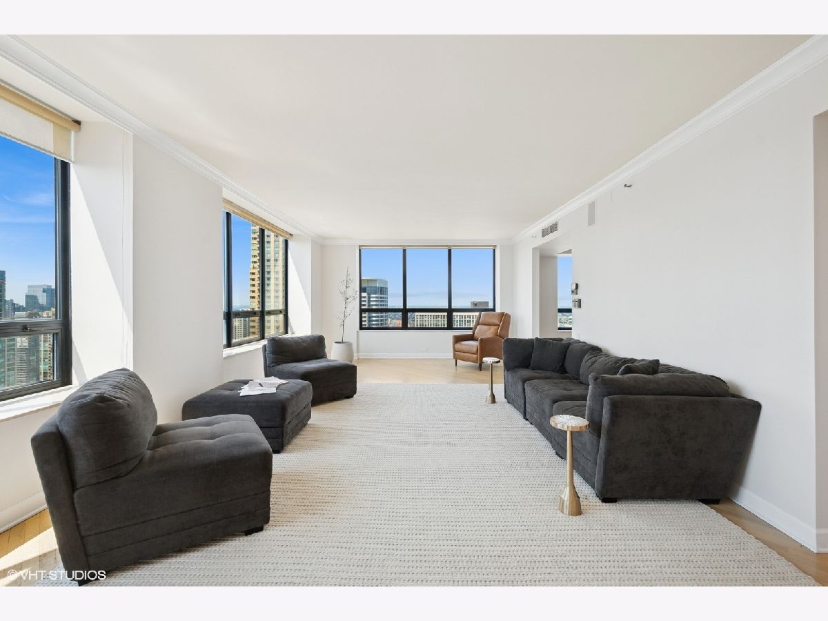Brand new, high end hard wood flooring and carpeting installed. Experience elevated living in this stunning 2,700+ sq. ft. residence perched high in the distinguished Water Tower Residences. This rare offering captures sweeping views of the city skyline, Lake Michigan, and Navy Pier from every angle, blending luxury with comfort in a way that never goes out of style. From the moment you enter the elegant foyer-perfect for showcasing artwork-you'll sense the thoughtful layout and refined atmosphere that define this home. The expansive living room, with its dramatic panoramic windows, is ideal for hosting or simply unwinding as the city sparkles below. The kitchen is both functional and inviting, featuring a walk-in pantry and open flow into the dining area-an ideal space to soak in mesmerizing sunsets while enjoying a meal. The generously sized primary suite includes dual walk-in closets and two separate bathrooms for the ultimate in privacy and convenience. A second en-suite bedroom, currently serving as a home office and media room, features a full wall of custom built-ins for style and practicality. Set atop the renowned Ritz-Carlton Hotel, residents enjoy white-glove services and luxury amenities: 24-hour door staff and concierge, in-room dining, spa access, indoor pool, fitness center, and optional membership to the exclusive Carlton Club with private dining. Direct indoor access to upscale shops and dining at Water Tower Place makes daily life effortlessly convenient. Valet and self-parking options are available for both residents and guests. With a premier location steps from the lakefront, Museum of Contemporary Art, seasonal farmers markets, and Chicago's best restaurants and cultural venues, this is an unmatched opportunity to create your dream home in the sky.