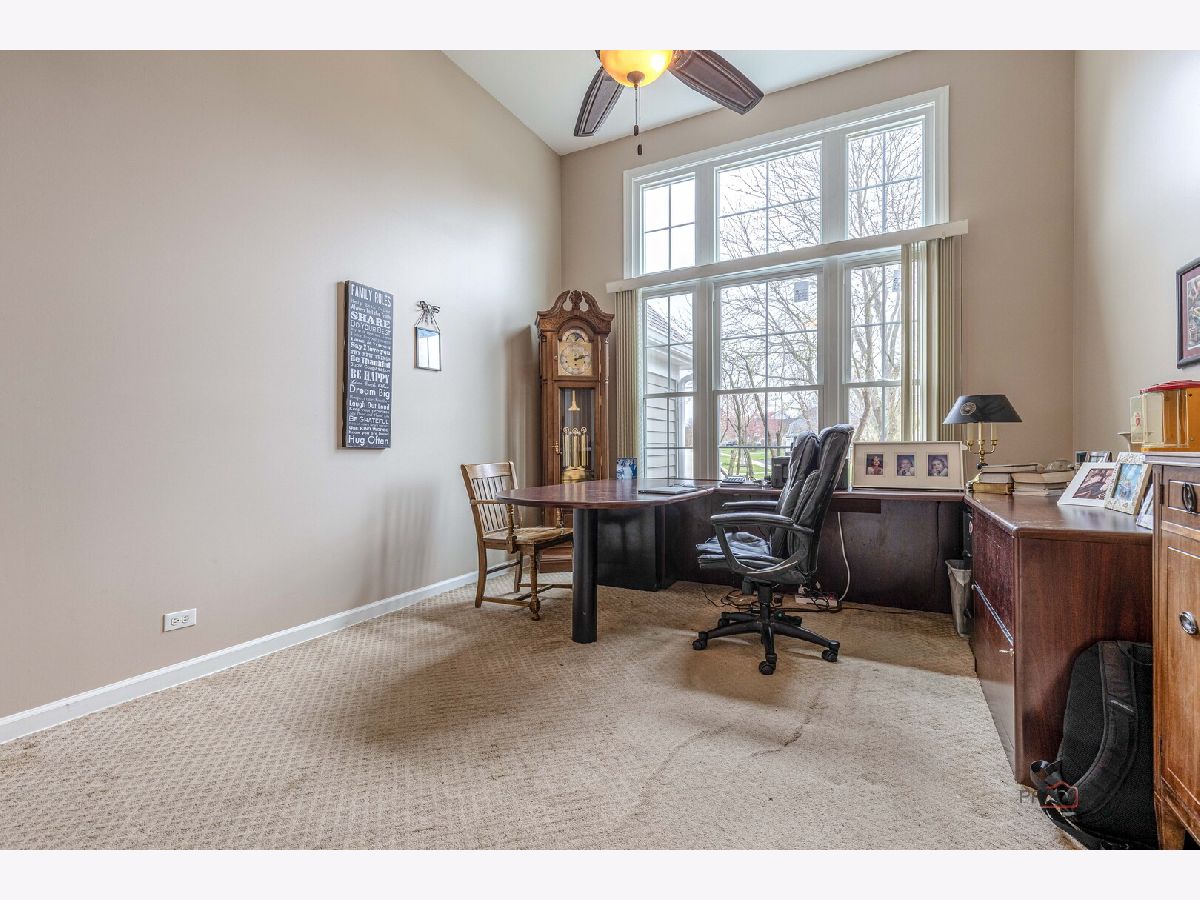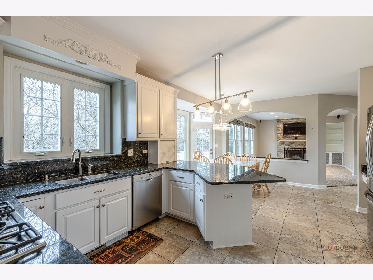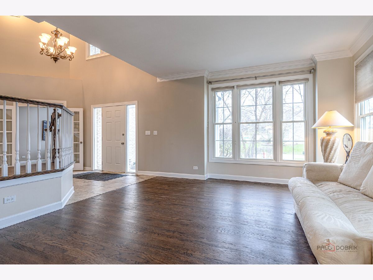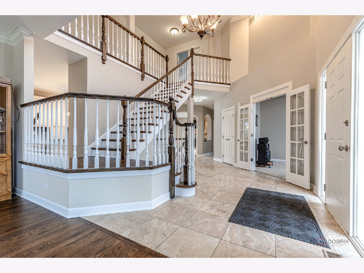 QUIET, TREE-LINED STREET IN TIMBER CREEK | WALK-OUT BASEMENT | 3-CAR GARAGE | 4 BEDROOMS. Brand new roof, updated bathrooms completed in 2023, freshly refinished hardwood floors, and new windows set the stage for this beautifully refreshed Timber Creek home, where thoughtful updates blend seamlessly with spacious, light-filled living. Imagine arriving home to this quiet, tree-lined setting and immediately feeling the sense of space and calm as you approach the welcoming front porch-an ideal spot for morning coffee or greeting guests. Inside, a dramatic two-story foyer with a sweeping staircase opens into living and dining spaces designed for both everyday comfort and effortless entertaining. The kitchen feels like the heart of the home, showcasing new cabinetry with 42" uppers and crown detail, granite countertops with a full-height backsplash, stainless steel appliances, and a peninsula with breakfast bar seating, while the adjoining breakfast area with deck access creates seamless indoor-outdoor flow and keeps you connected to the family room. Here, a floor-to-ceiling stone wood-burning fireplace with custom built-ins offers a warm, inviting focal point you'll naturally gather around. The main level also includes a half bath, laundry/mudroom, and a first-floor office with soaring ceilings that easily functions as a guest room. Upstairs, you can picture retreating to the spacious primary suite featuring vaulted ceilings, an intimate sitting area or home office space, a large walk-in closet, and a spa-like bath with dual vanities, soaking tub, and separate shower, while two additional bedrooms with generous closet space and a full bath with a three-sink vanity complete the second level. A third-floor bonus space adds even more flexibility for a fourth bedroom, media room, playroom, fitness area, or hangout space. The finished walk-out basement extends your living space with a large recreation room, second fireplace, wet bar, wine cellar with ventilation, full bath, and additional bedroom, with sliding doors opening directly to the patio for easy indoor-outdoor entertaining. Outside, the fully fenced backyard with both deck and patio spaces offers multiple areas to relax, dine, and enjoy the peaceful surroundings. Timber Creek residents enjoy neighborhood ponds, a nearby playground, and miles of walking and biking trails that connect to Independence Grove, creating a lifestyle that blends comfort, convenience, and outdoor living.