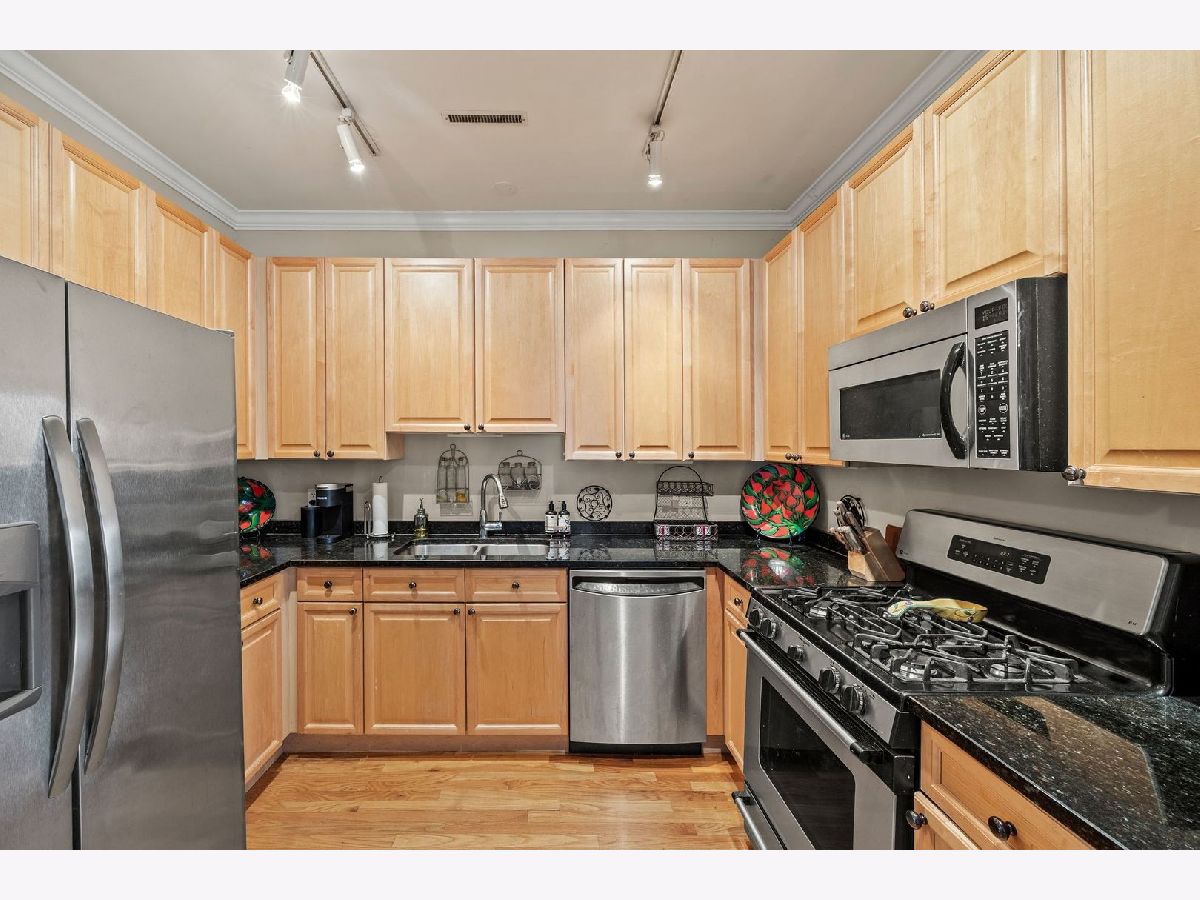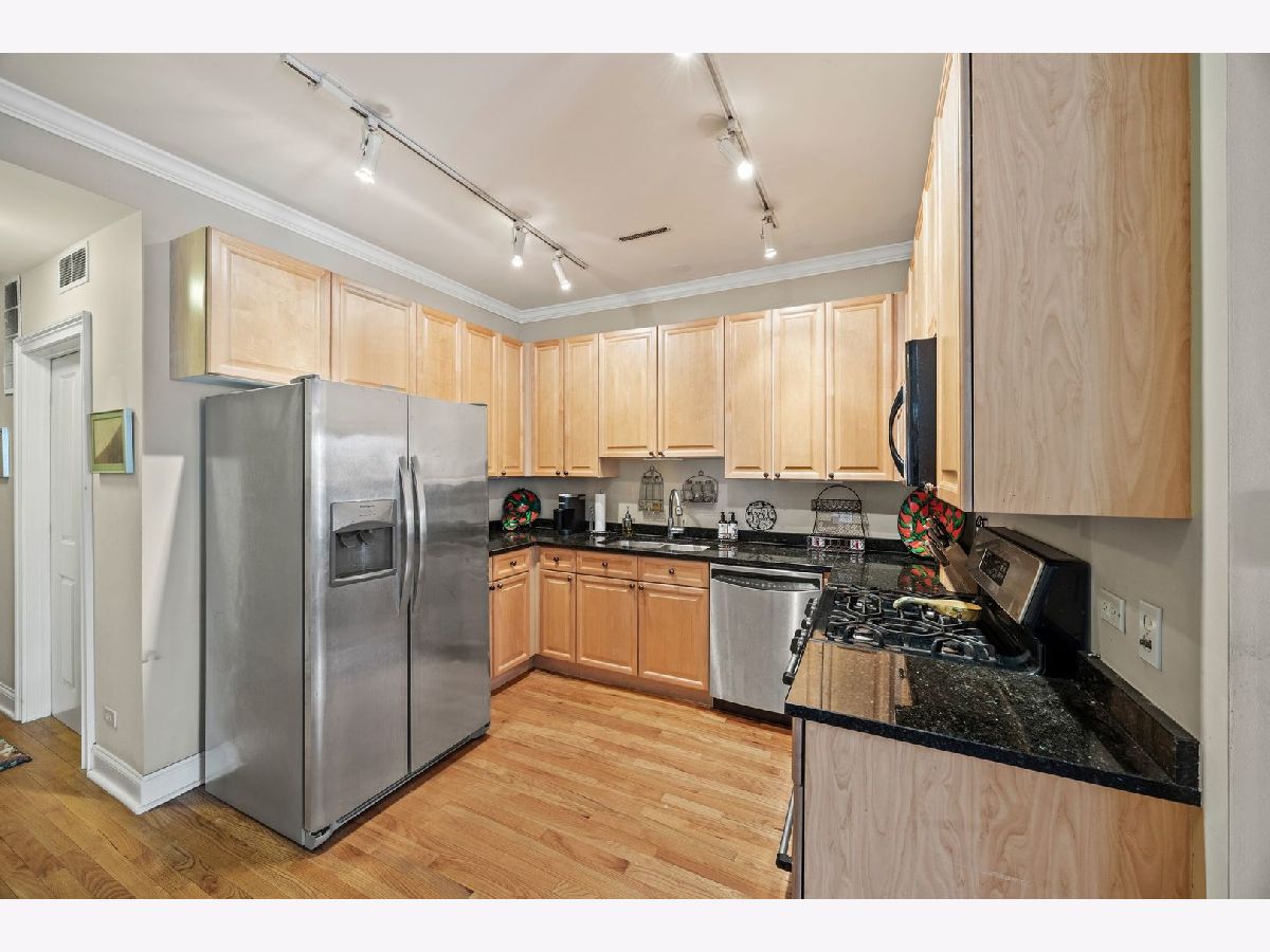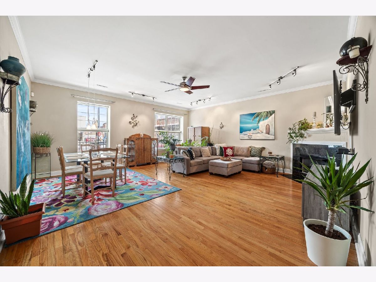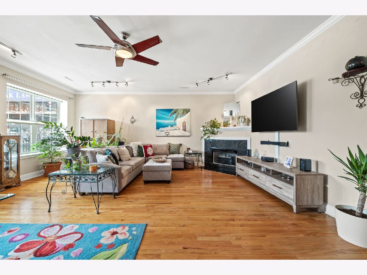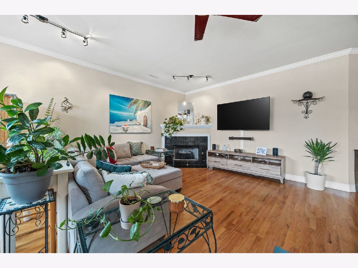 Bright, extra spacious, and quiet - this 2-bed, 2-bath condo features an open floor plan, hardwood floors throughout, a cozy fireplace in the living room with a work-from-home nook, a kitchen with granite countertops, full-height cabinets with plenty of storage space, and stainless steel appliances. The layout, while providing separation, feels very open and connected. Both bedrooms are roomy, with big east-facing windows that let in tons of natural light. The primary suite comes with a large walk-in closet and an en-suite bath that includes a dual vanity, soaking tub, and walk-in shower. Additional perks include in-unit laundry and secure gated parking right outside your door, all just steps from the vibrant shopping, dining, and transit options of Roscoe Village and Lakeview. See the Info Sheet for additional details.
