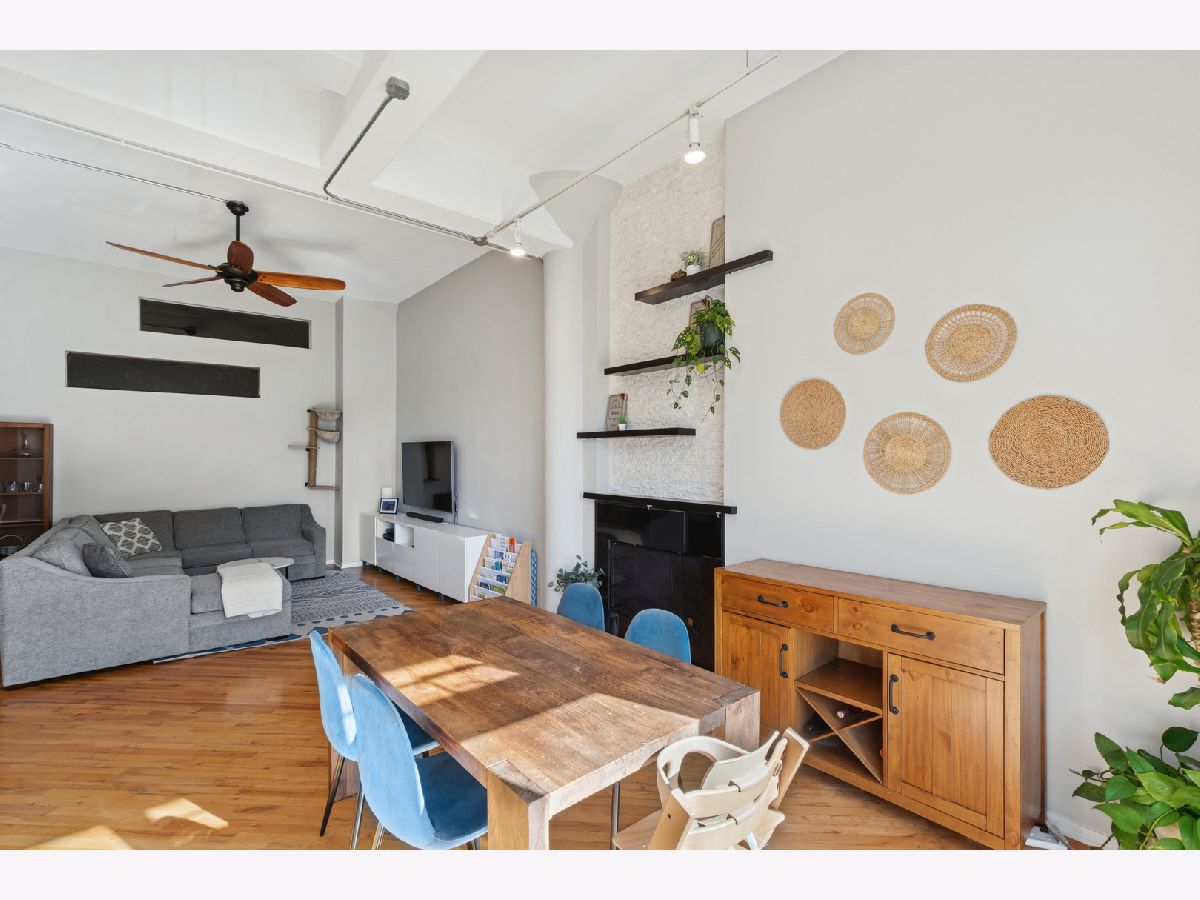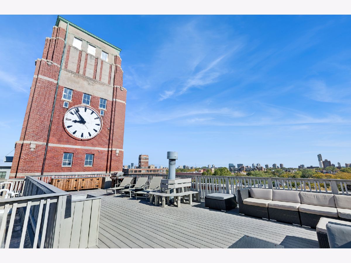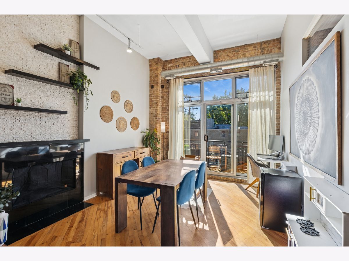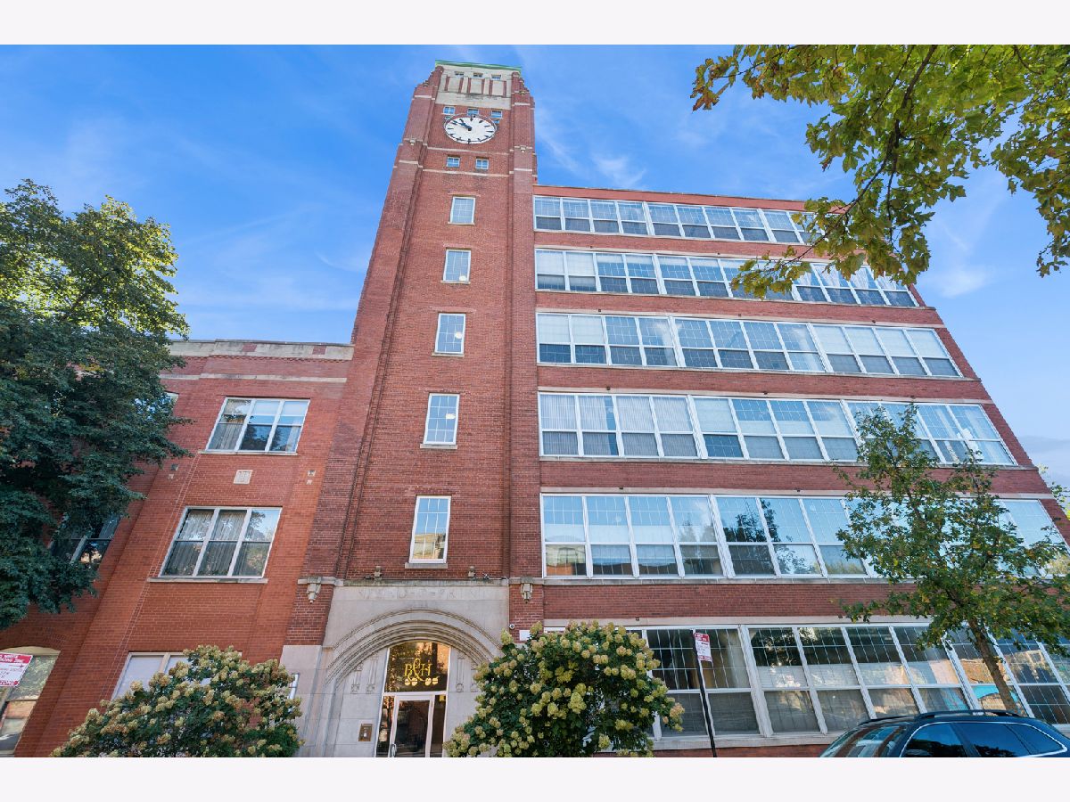 Loft living at its finest in this rarely available 2 bed/2 bath move-in ready unit in the iconic Bell and Howell lofts in the heart of North Center! Enter and find soaring 13 ft ceilings, exposed brick, and a private south-facing balcony. Spacious, light-filled open layout with flexible living and dining room spaces, hardwood floors throughout, gas fireplace, and an open concept kitchen with black granite counters, stainless steel appliances, abundant cabinetry + pantry, and a butcher block island with seating. The spacious primary bedroom has been fully enclosed with paneled windows allowing natural light to filter through. The large walk-in closet leads to a stunning 2024 renovation of the primary ensuite bathroom featuring new tub and matte black fixtures, new shower tiles & floor tiles, new mirrors, and a refreshed dual vanity with updated quartz countertop, double sinks and faucets. The in-unit washer/dryer is conveniently placed right outside the primary suite. The second bedroom is ideal for guests or a dedicated office, and is also fully enclosed with full height walls and paneled windows allowing for extra privacy. Additional updates include freshly painted walls and buffed hardwood floors (2020), new stove/oven (2024), in-unit washer/dryer (2020), A/C (2019), water heater and dishwasher (2016). A secure gated parking space conveniently located close to the building entrance is included in the price, and your guests will appreciate the on-site visitor parking. There is both a passenger and freight elevator for convenient moving, two bike rooms, and a renovated mailroom and lobby with secure entry. Reasonable assessments in a well-run building with cable, internet and parking all included in the assessment. Residents have access to an amazing common rooftop deck with a grill, lounge seating, sweeping skyline views, trex decking, common area bathroom, and the building's beloved clock tower. Located in the coveted Coonley School District, with the Brown Line, Metra, Trader Joe's, parks, restaurants, breweries, and all that North Center offers. This unit has a rare combination of historic loft character with modern comfort in a hard to beat location!